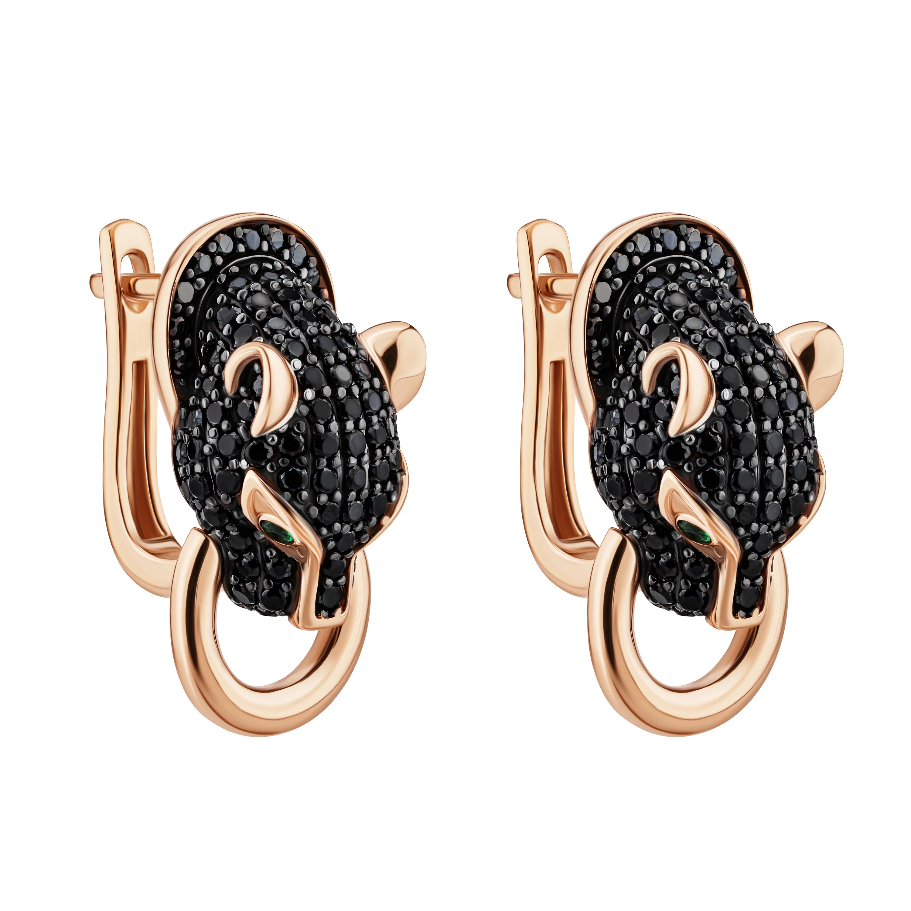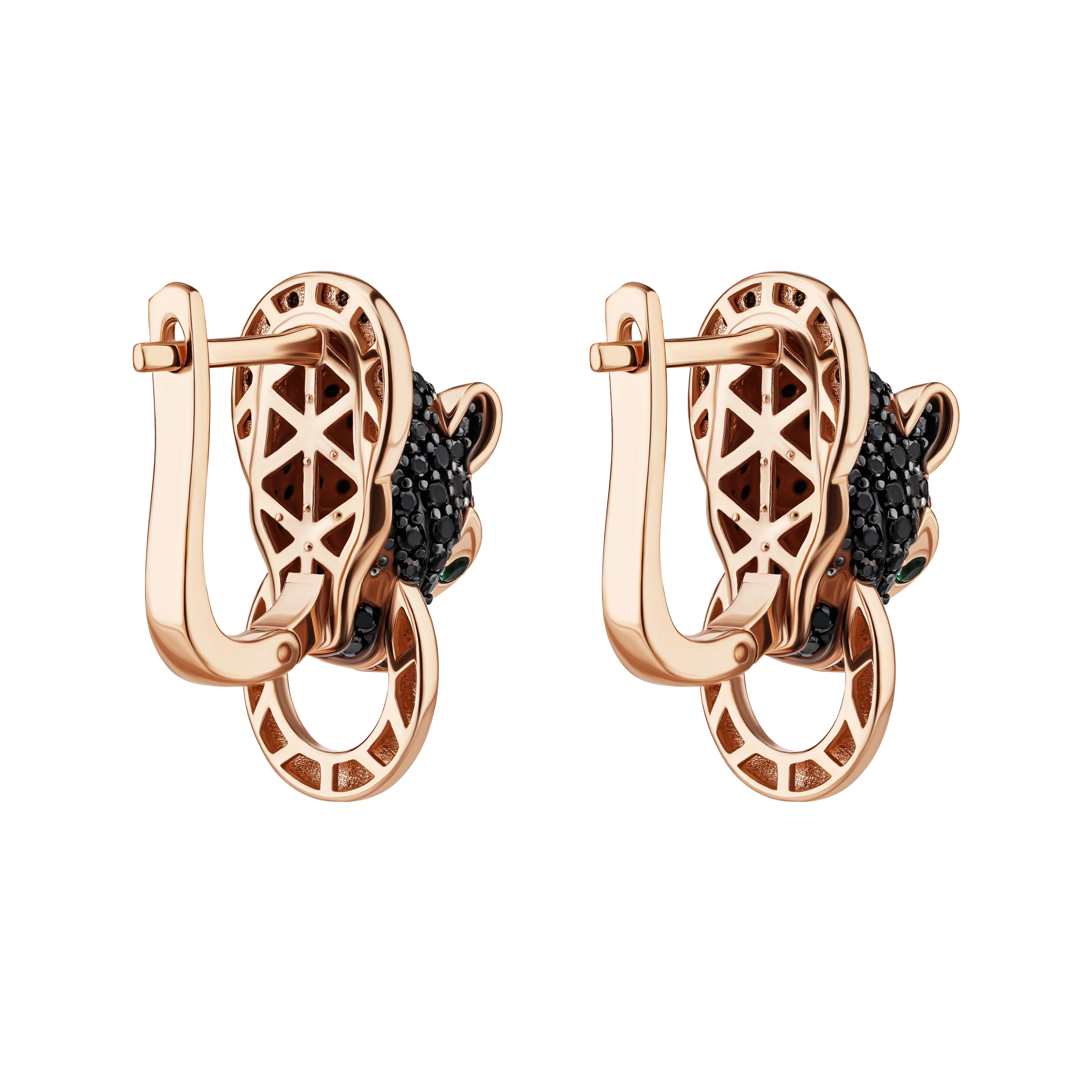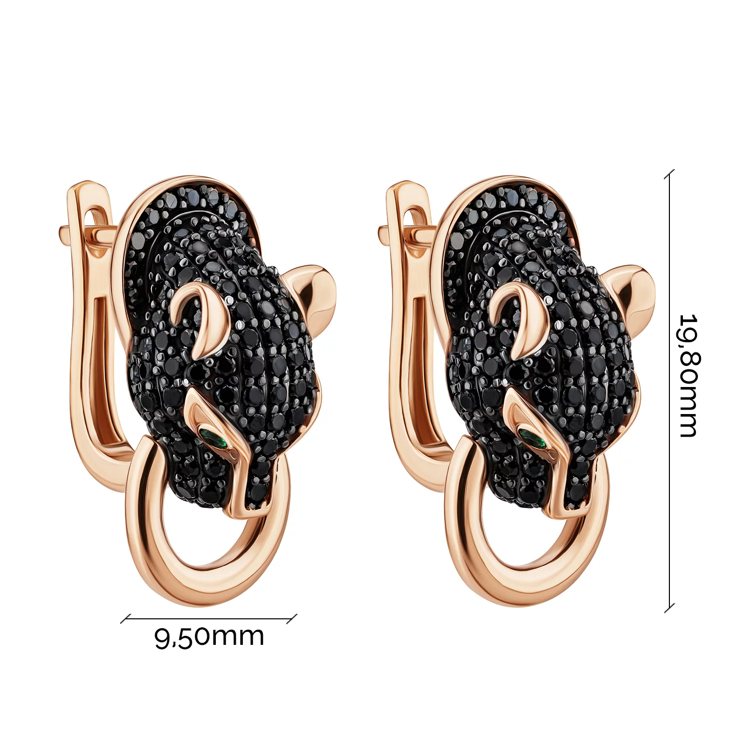 Сережки "Пантера" з червоного золота з фіанітами - 1542545