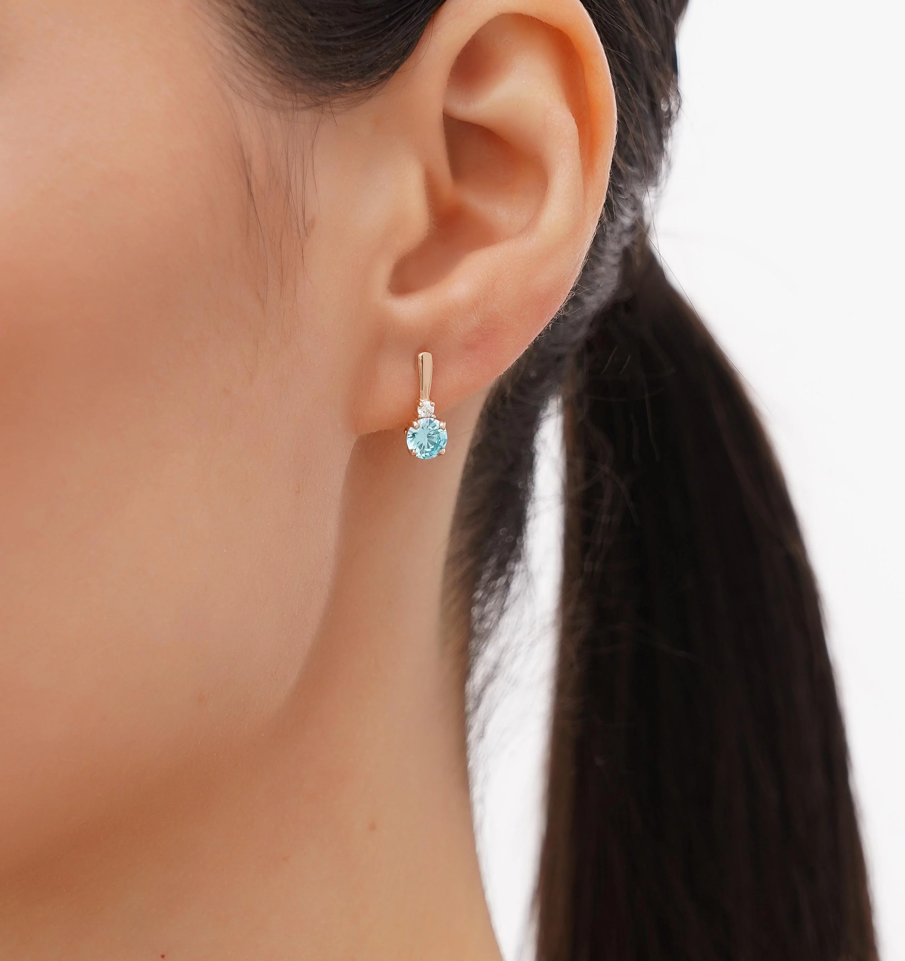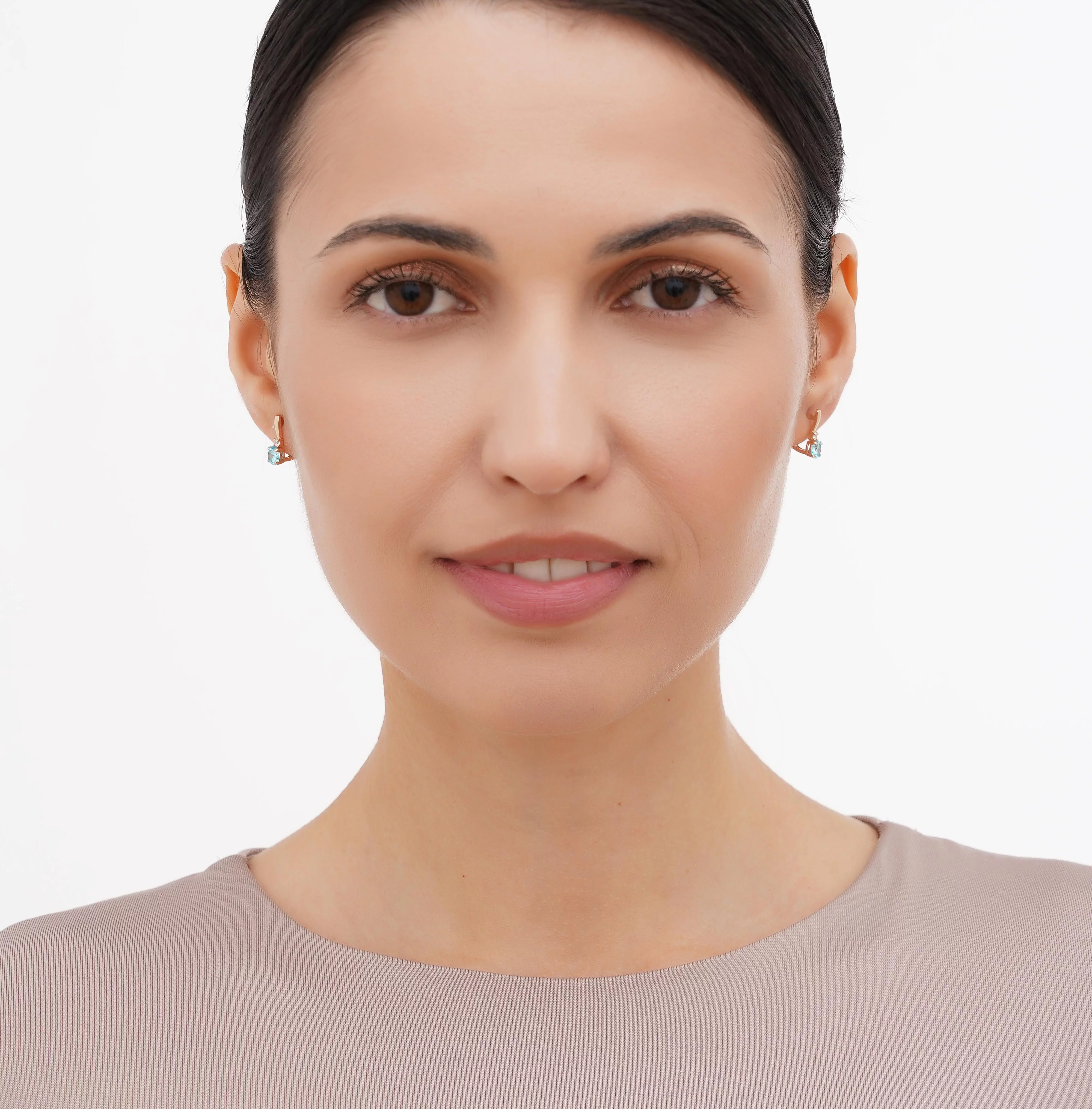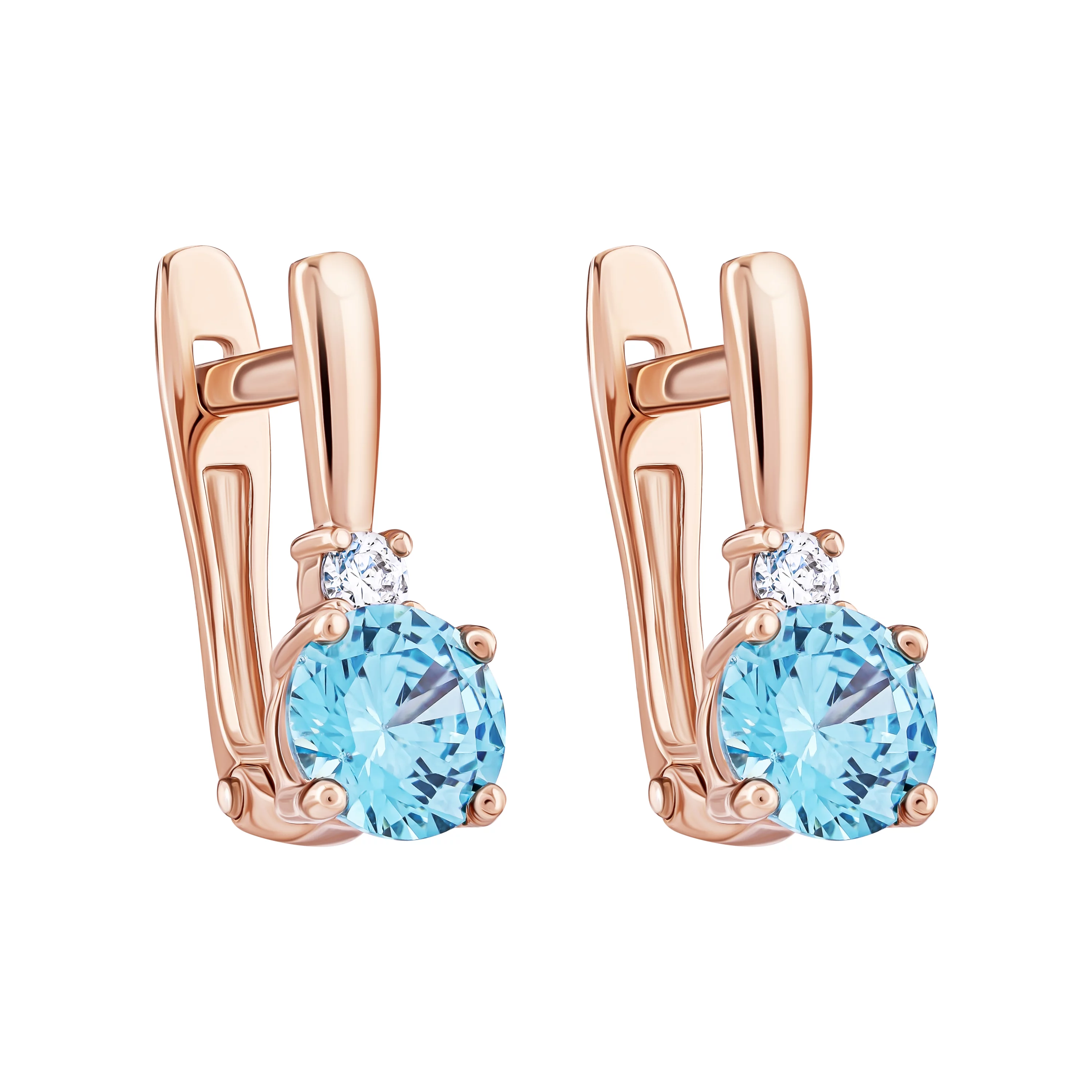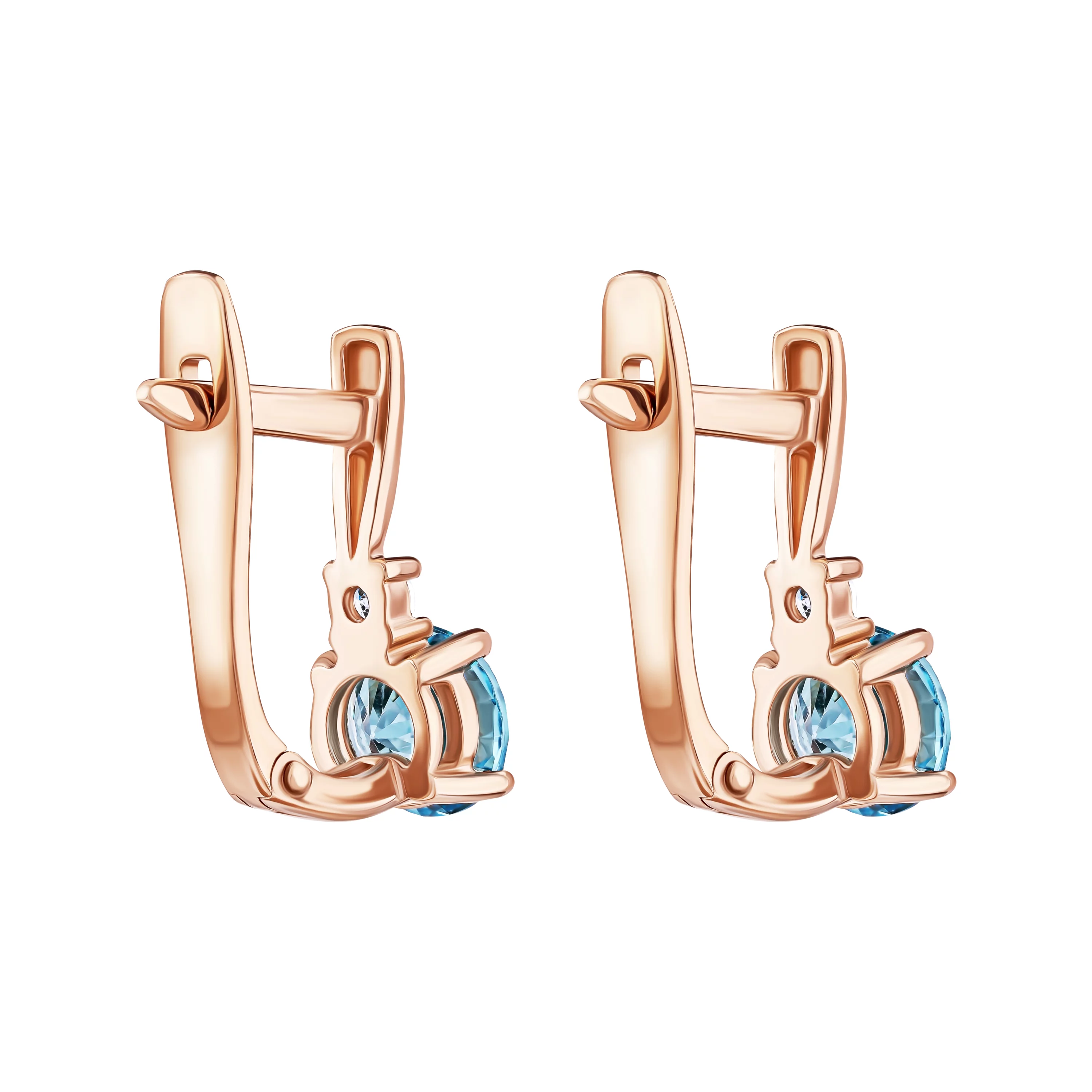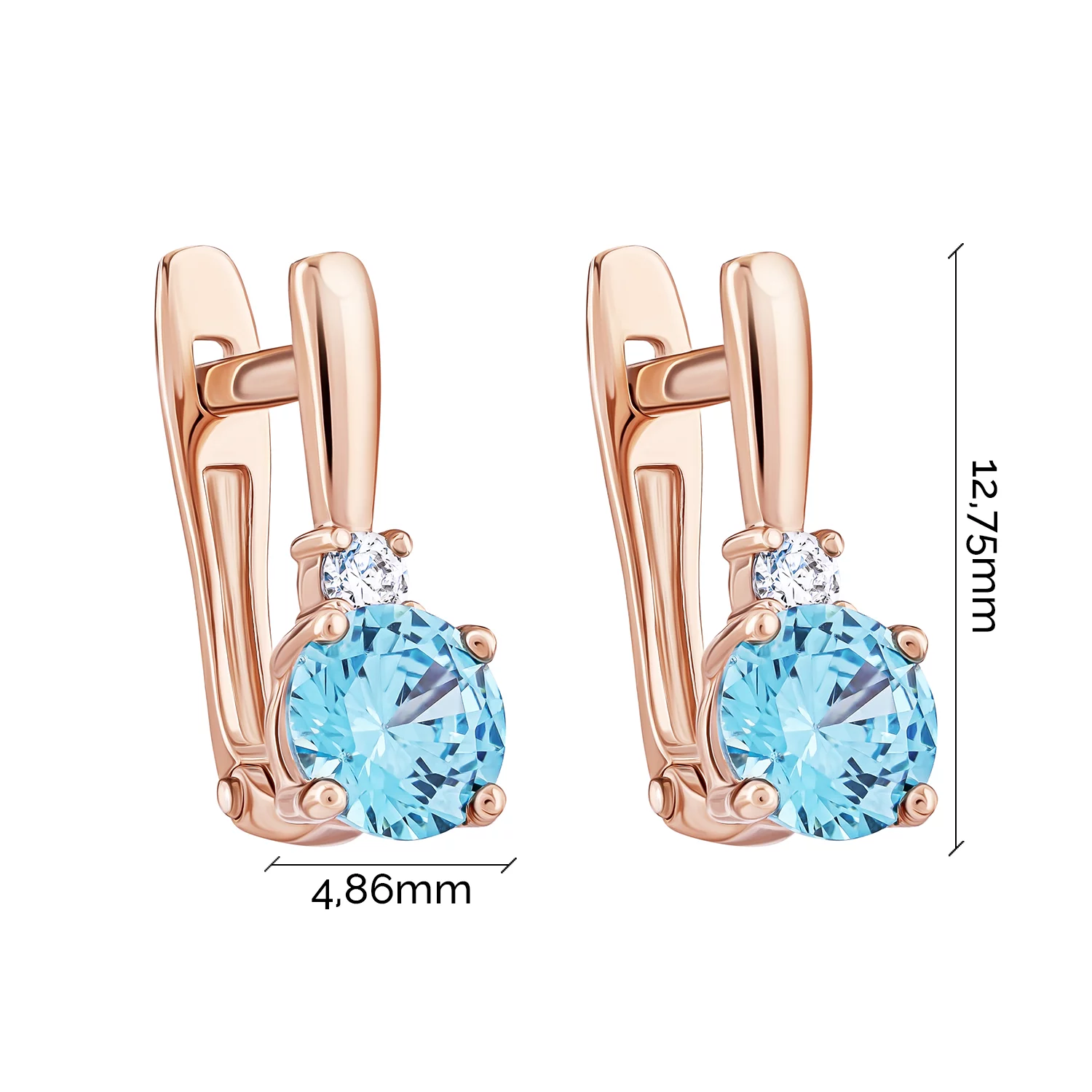 Сережки-гвоздики з топазом лондон і фіанітами з червоного золота - 1525469