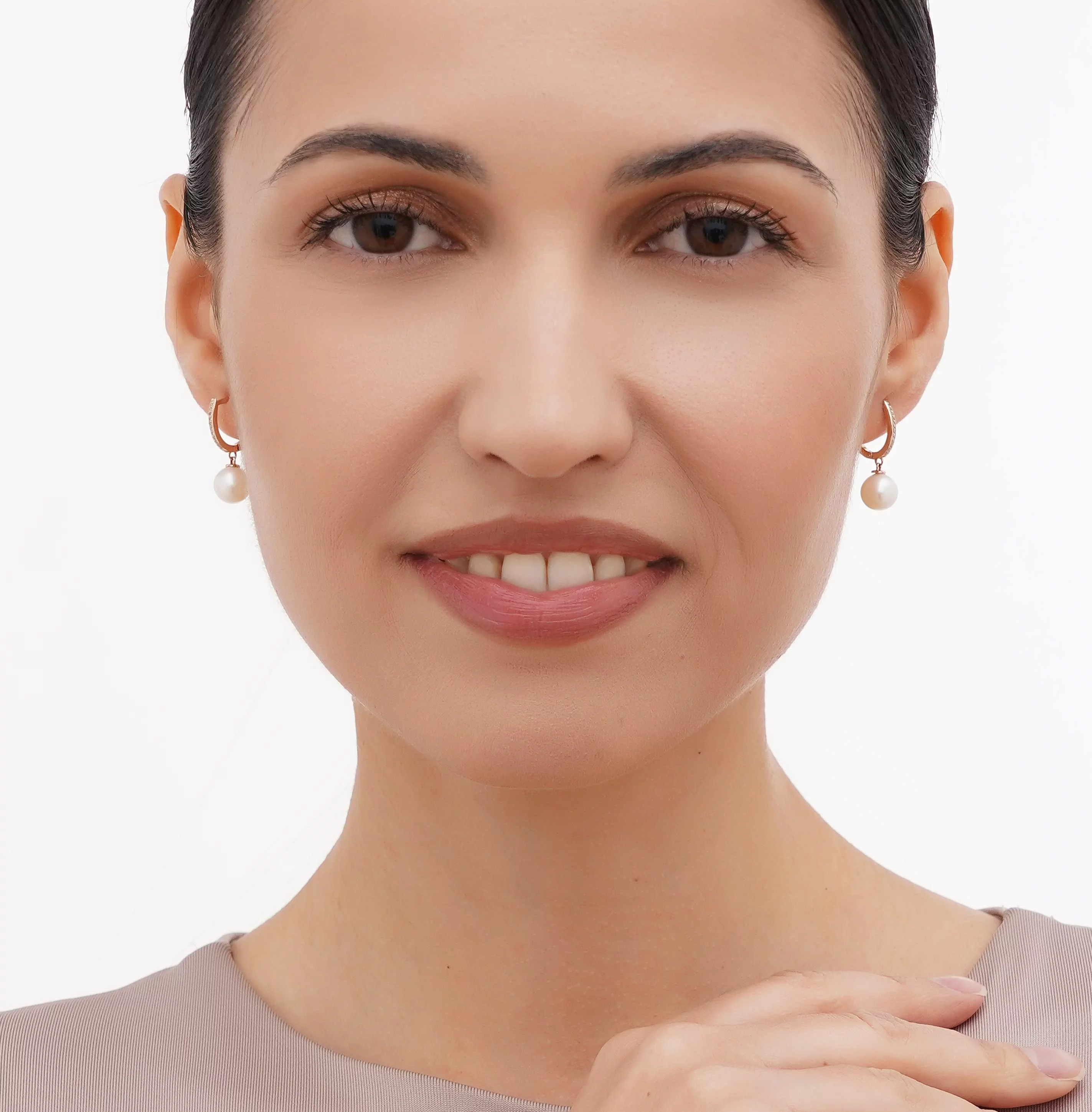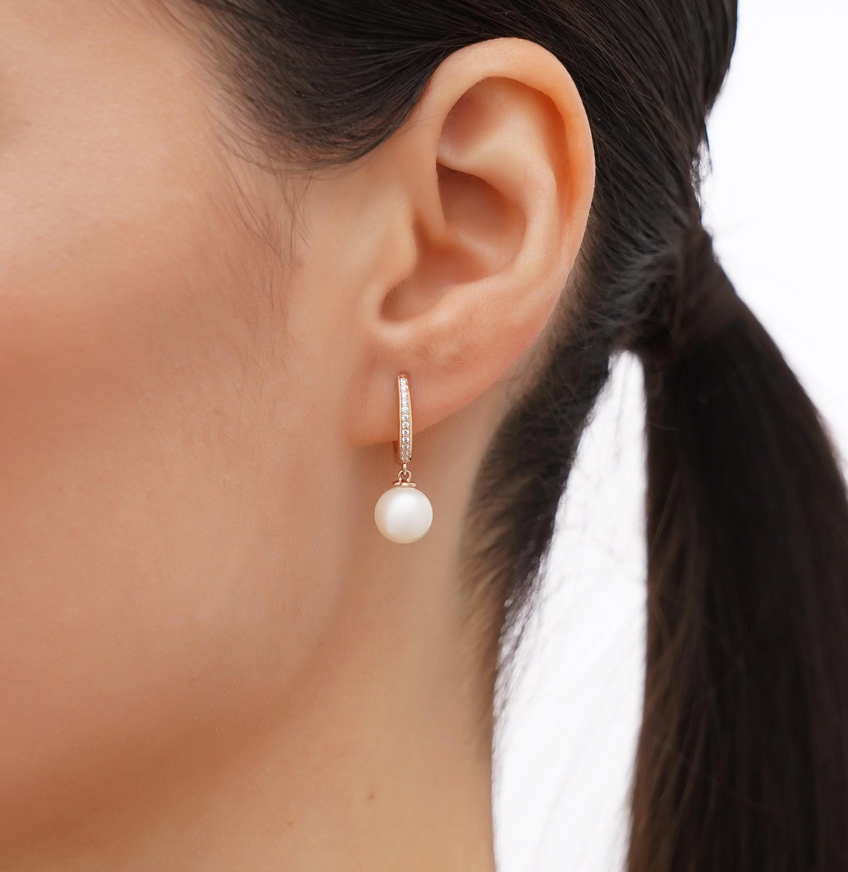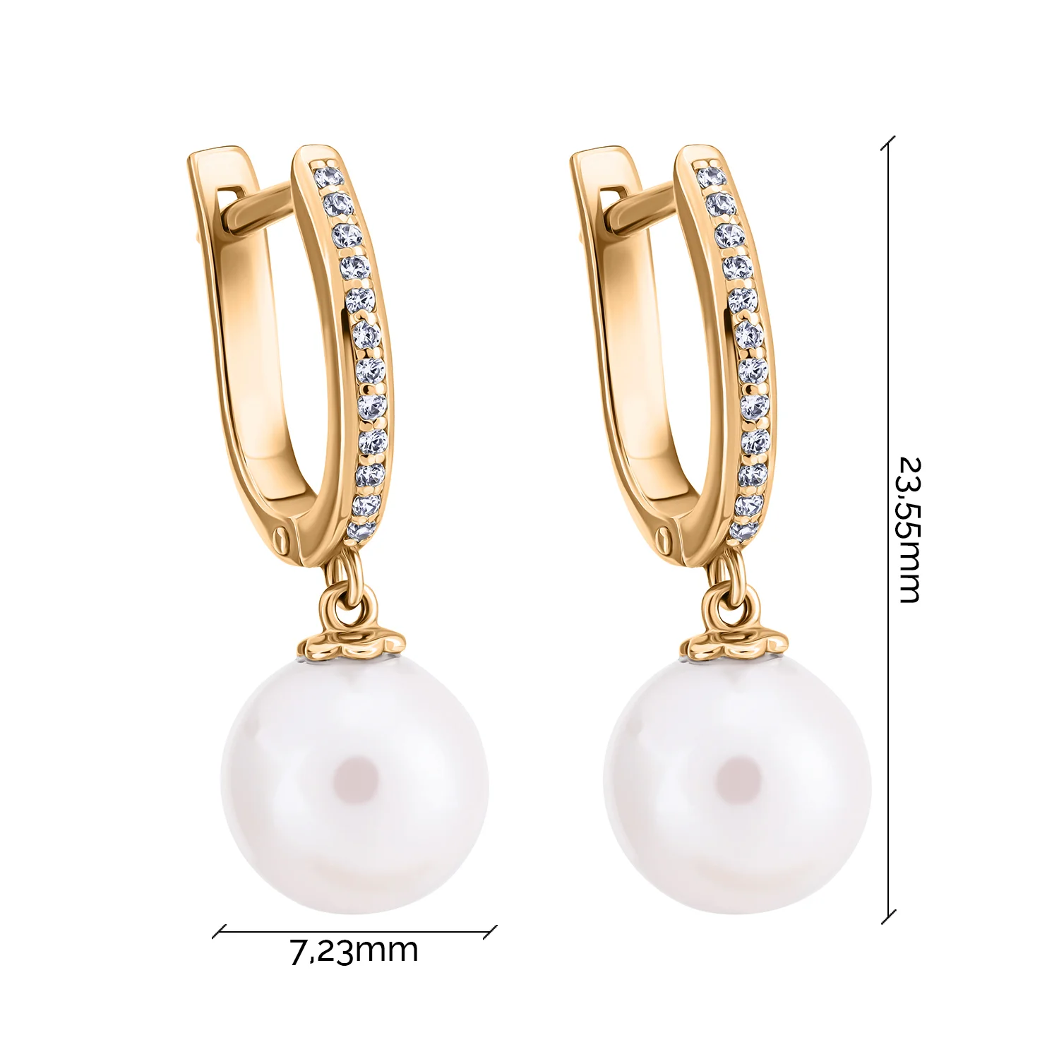 Стильні сережки з підвісами у білому золоті з перлинами та фіанітами - 1949826