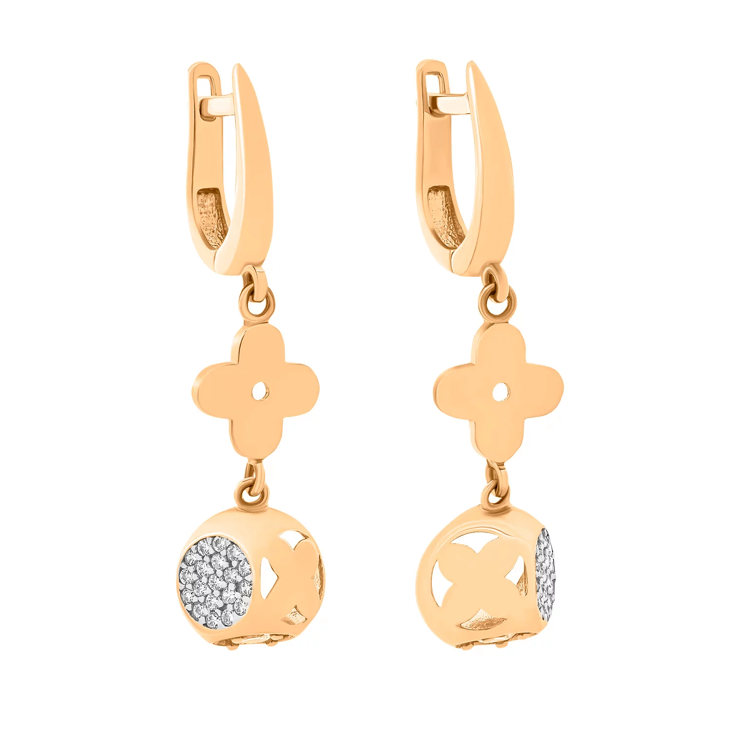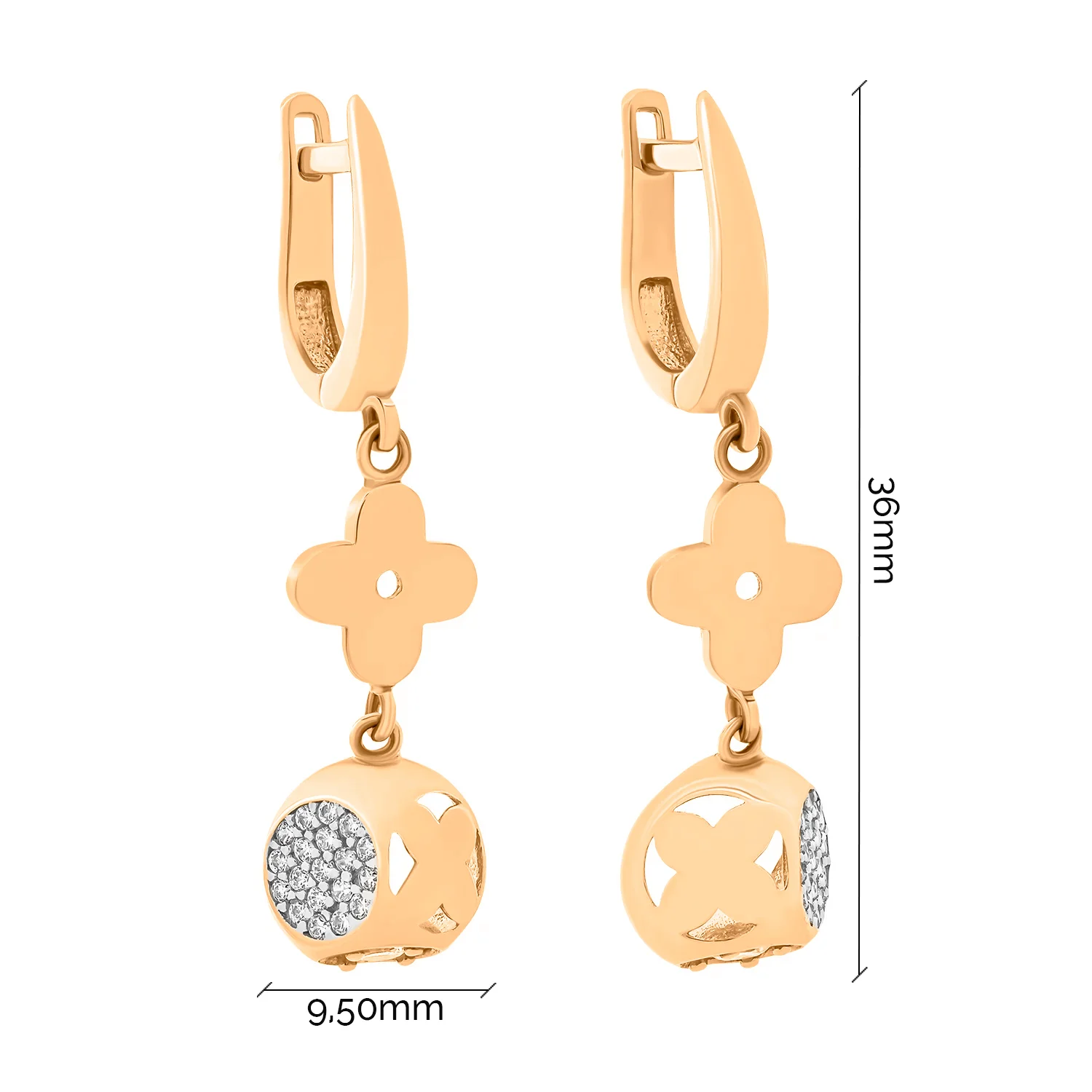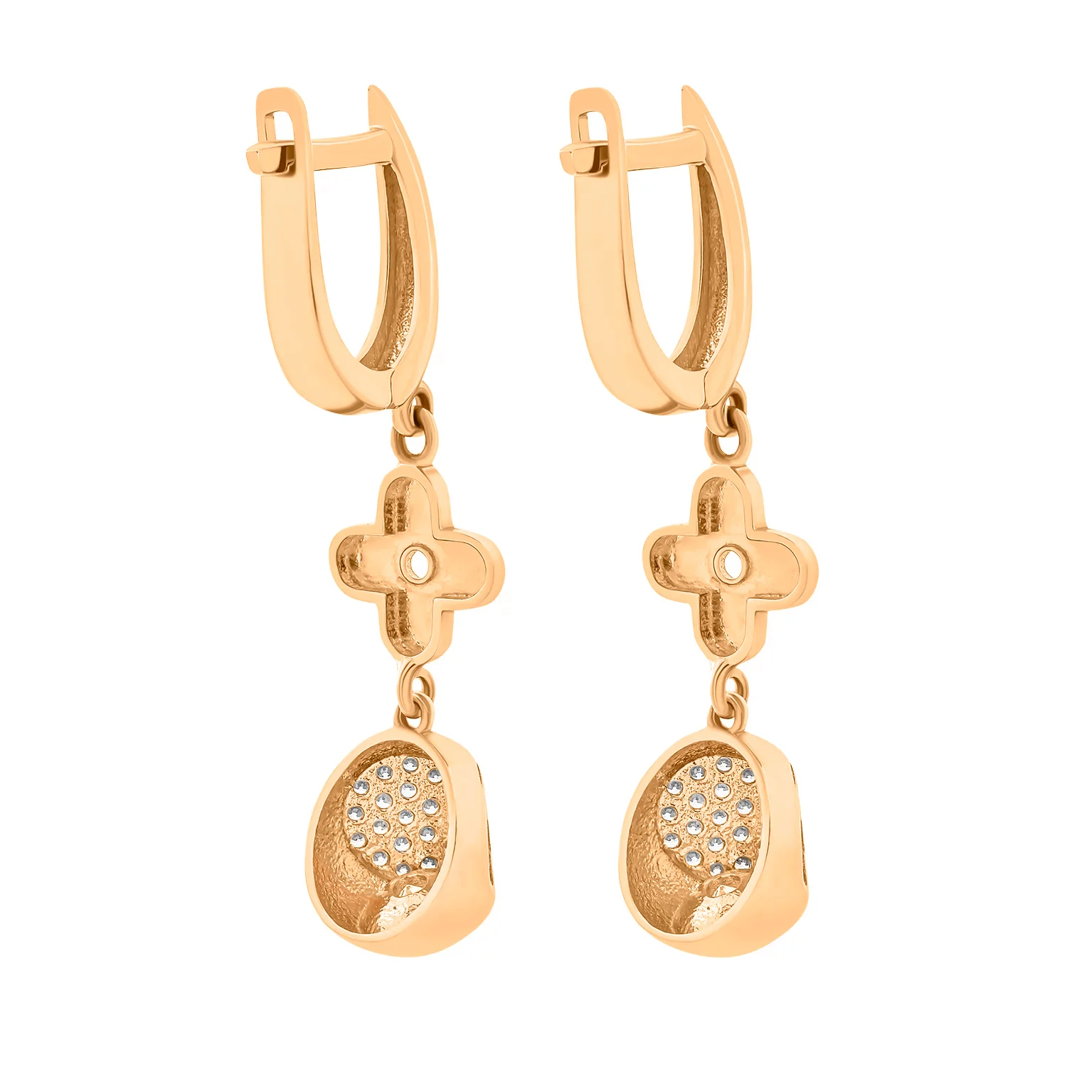 Сережки "Зірочка" з фіанітами в червоному золоті з підвісами - 1866957