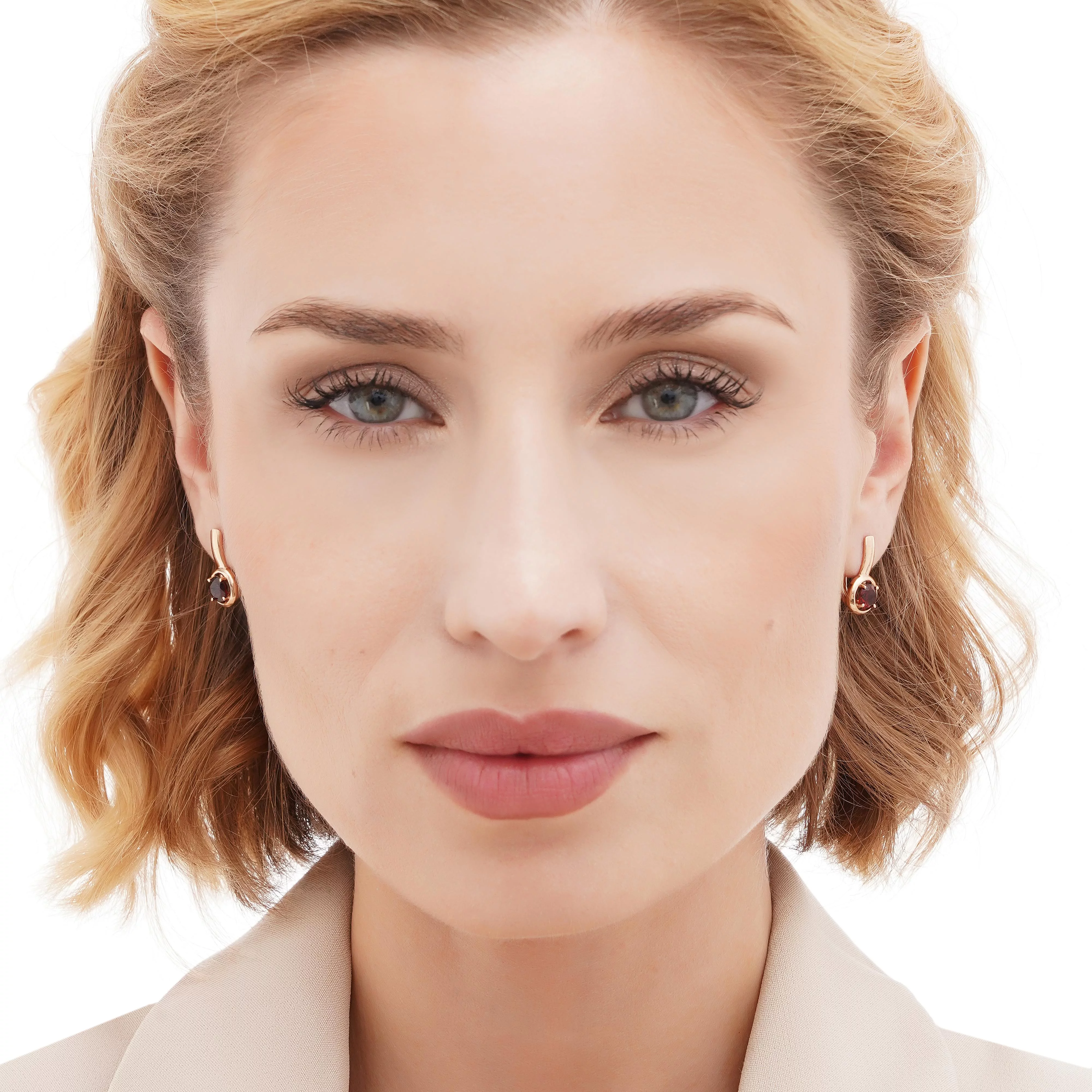 Сережки з червоного золота з підвісним топазом лондон та фіанітом - 1834025