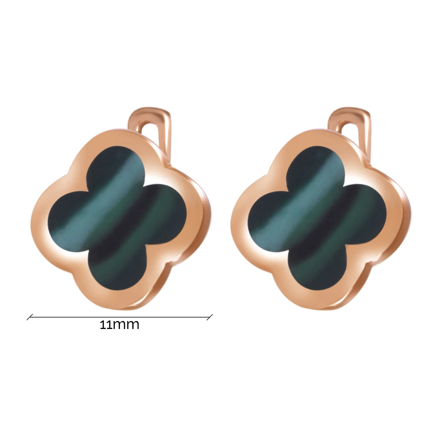 Сережки з червоного золота з підвіскою "Конюшина" з малахітом - 1747534