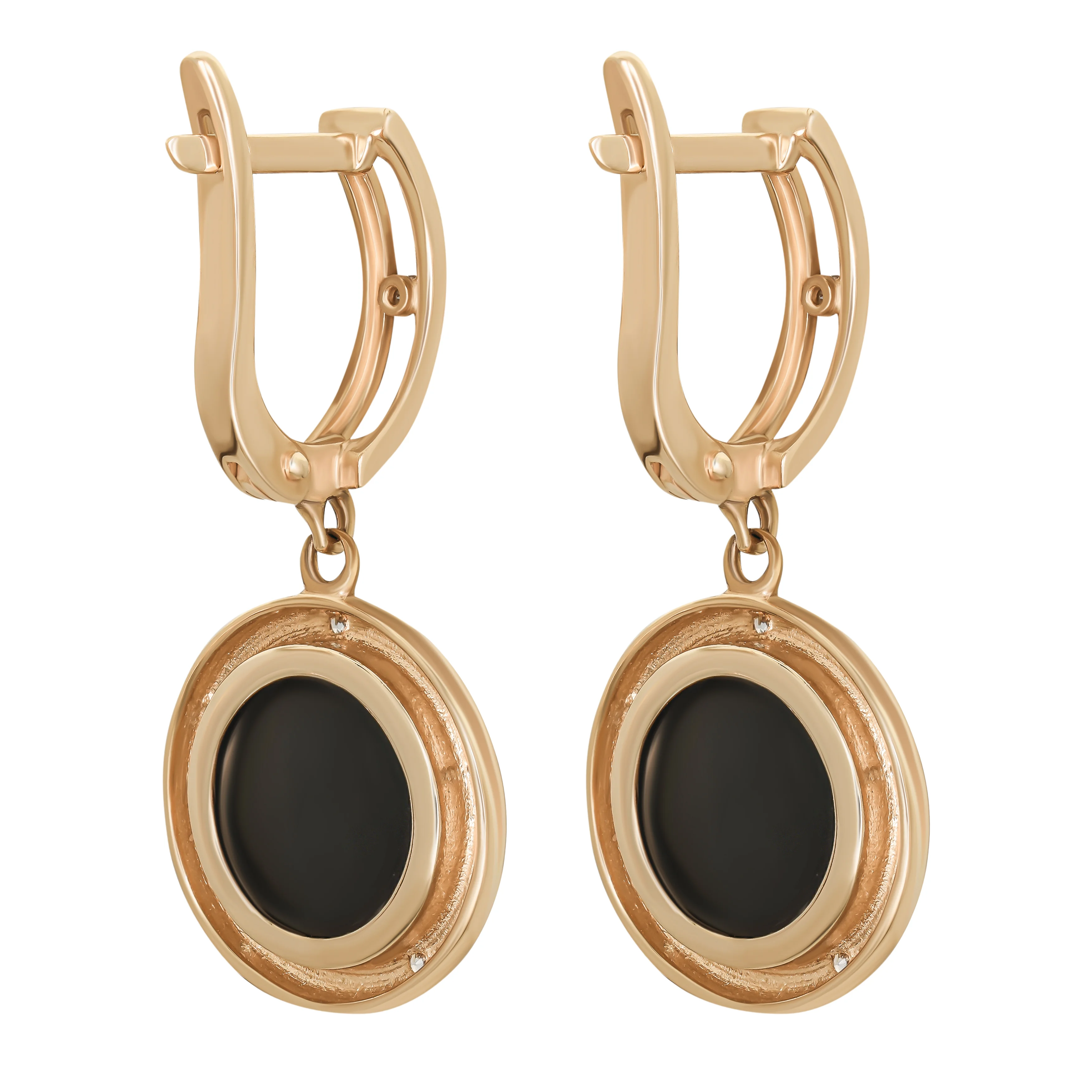 Сережки з підвісом "Кулі" з червоного золота з алмазною гранню та оніксом - 1872773