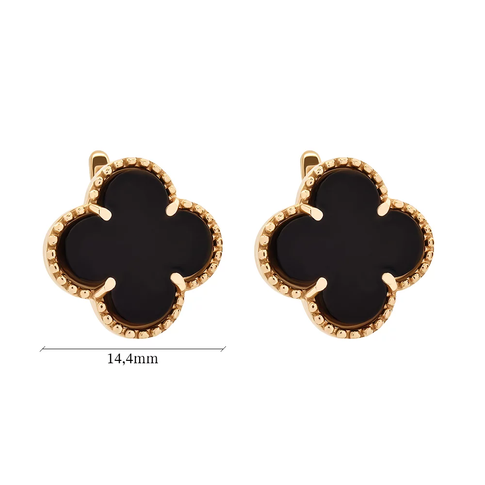 Сережки з підвісками з оніксом з червоного золота "Конюшина" - 1747532