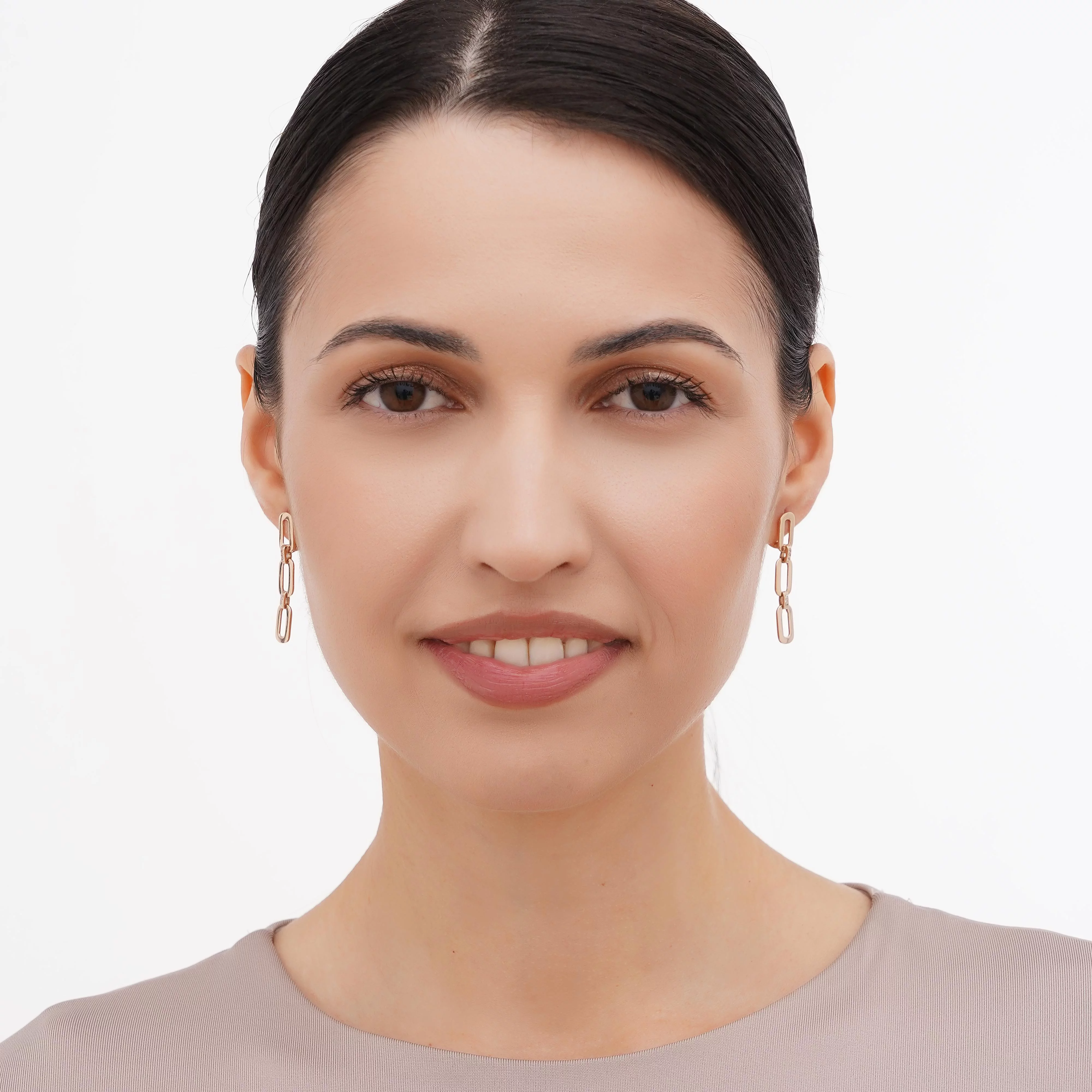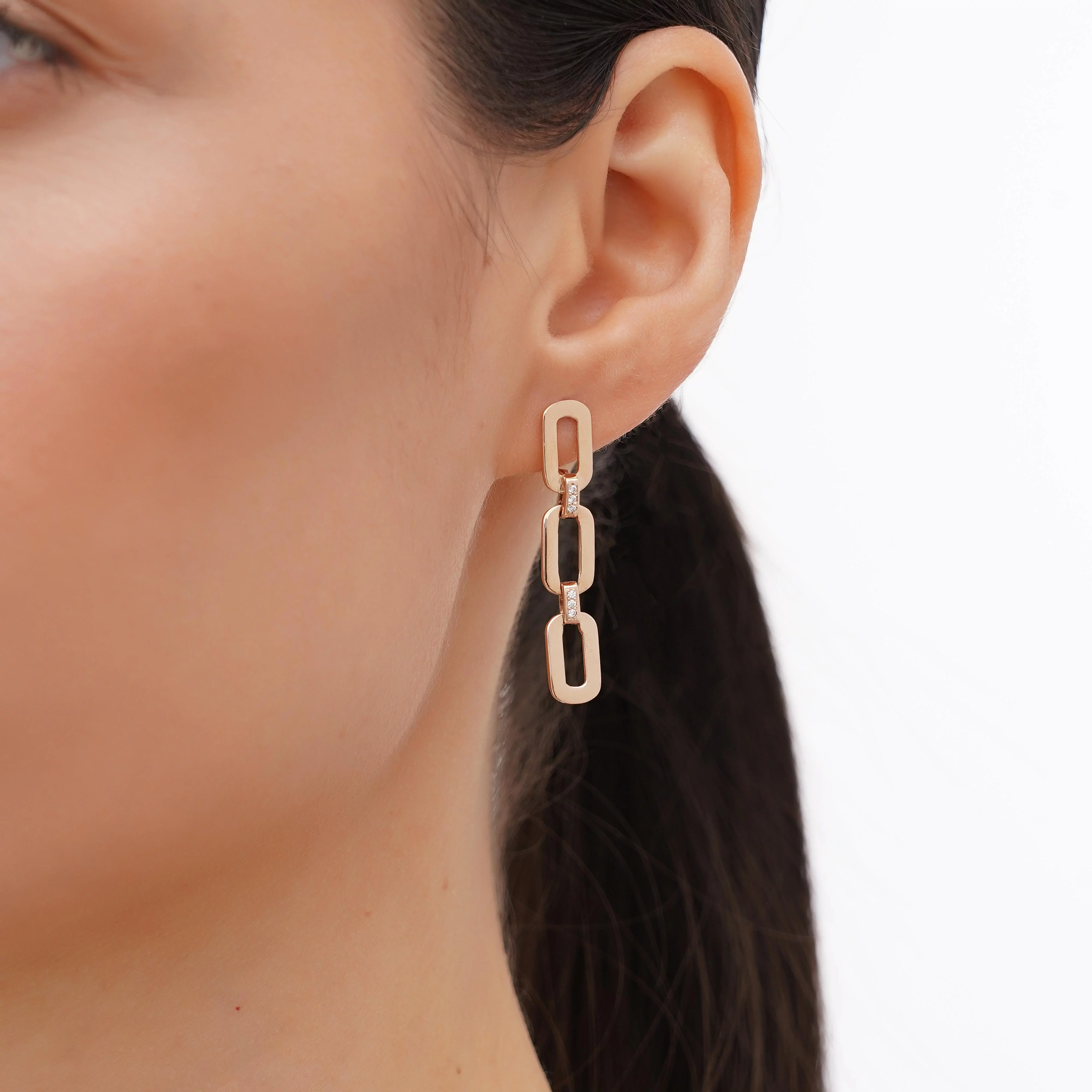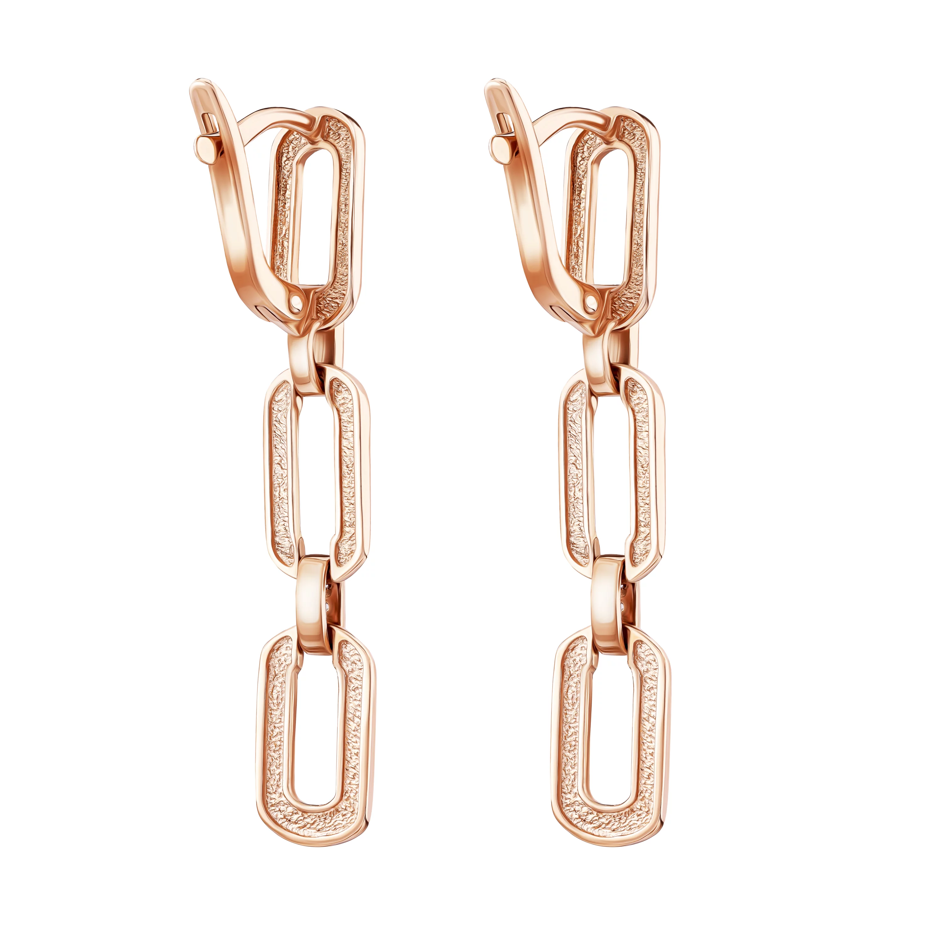 Стильні сережки з підвісами у червоному золоті з емаллю та фіанітом - 1928138