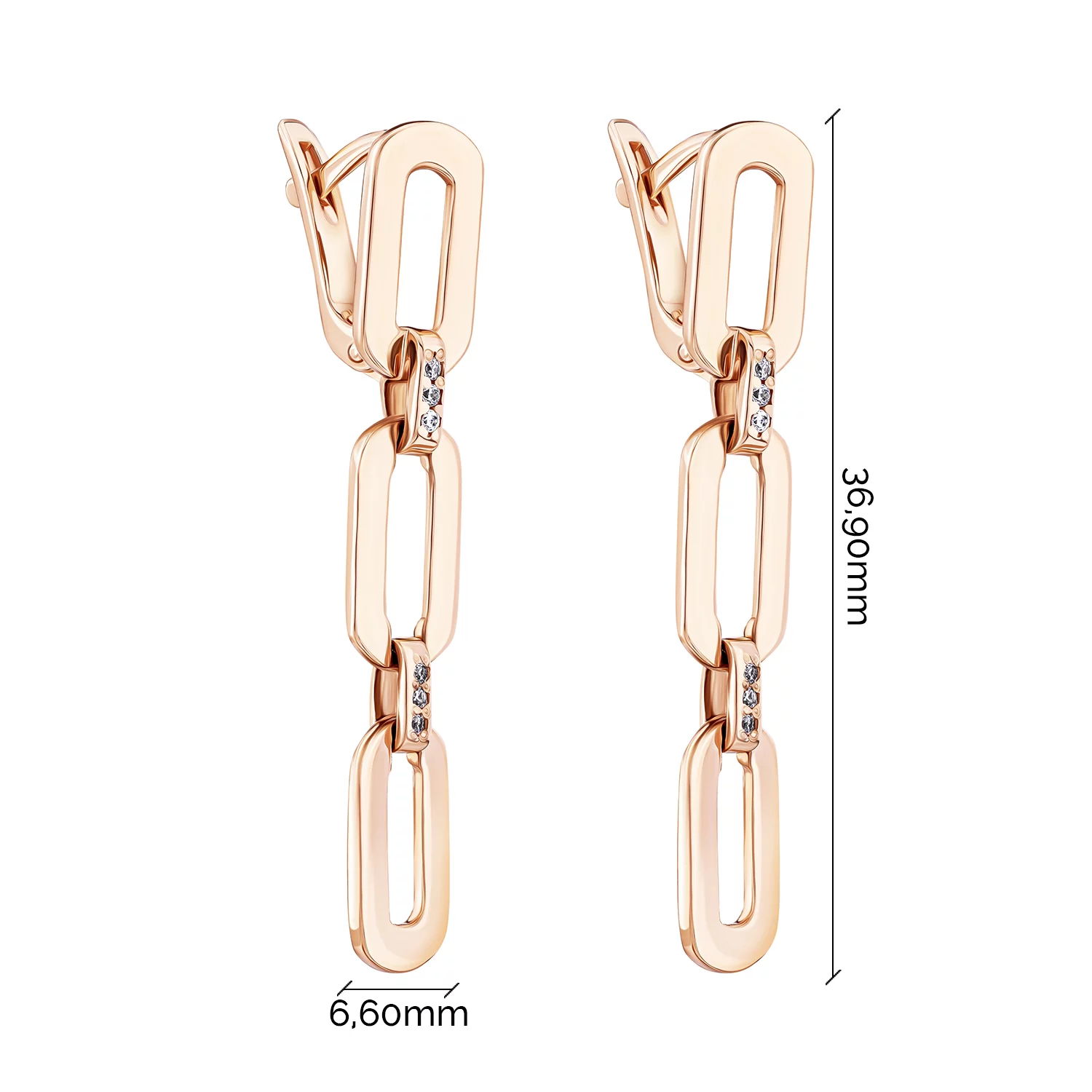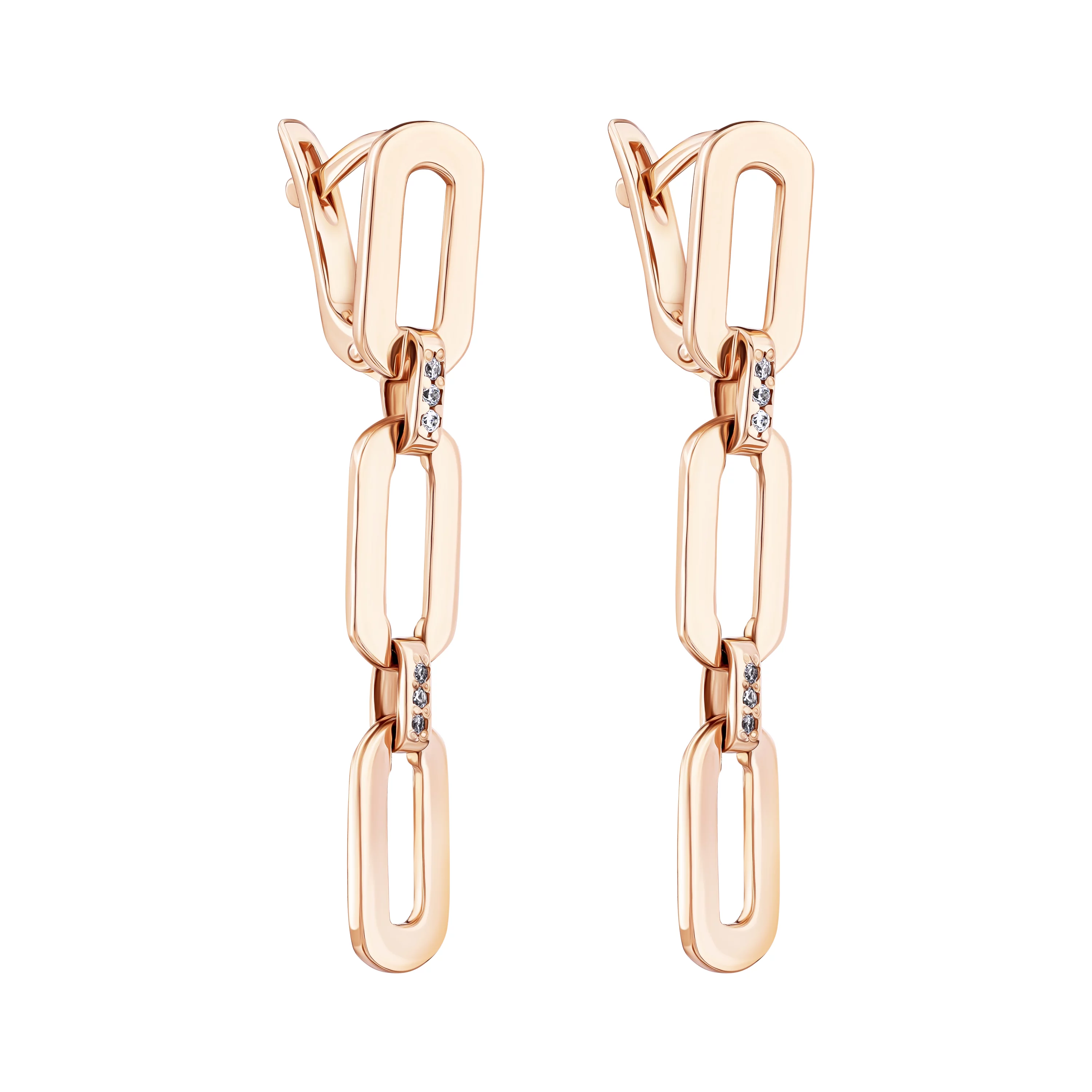 Сережки з червоного золота в геометричному стилі з фіанітами - 1877892
