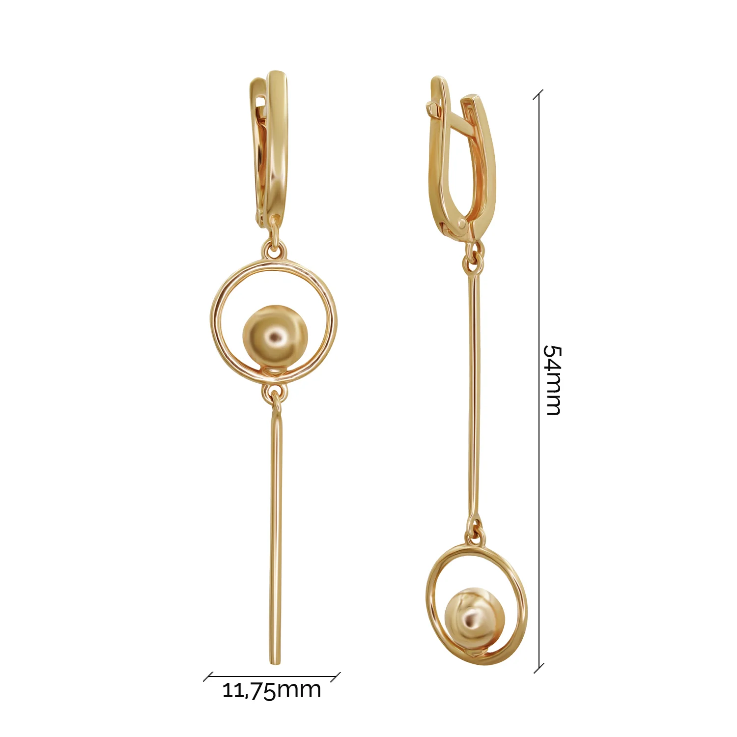 Сережки "Геометрія" з підвісами та алмазною гранню з червоного золота - 1514957