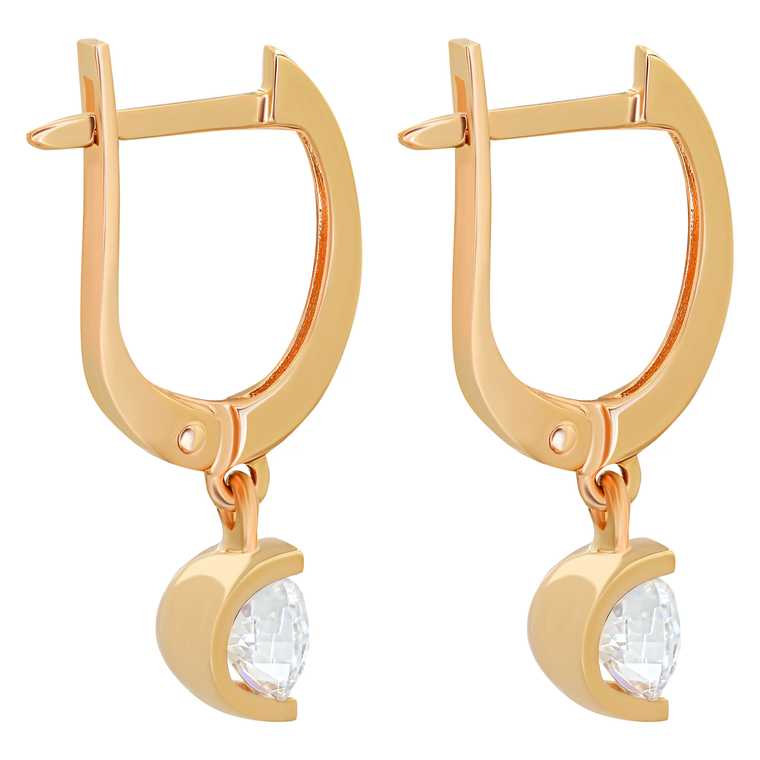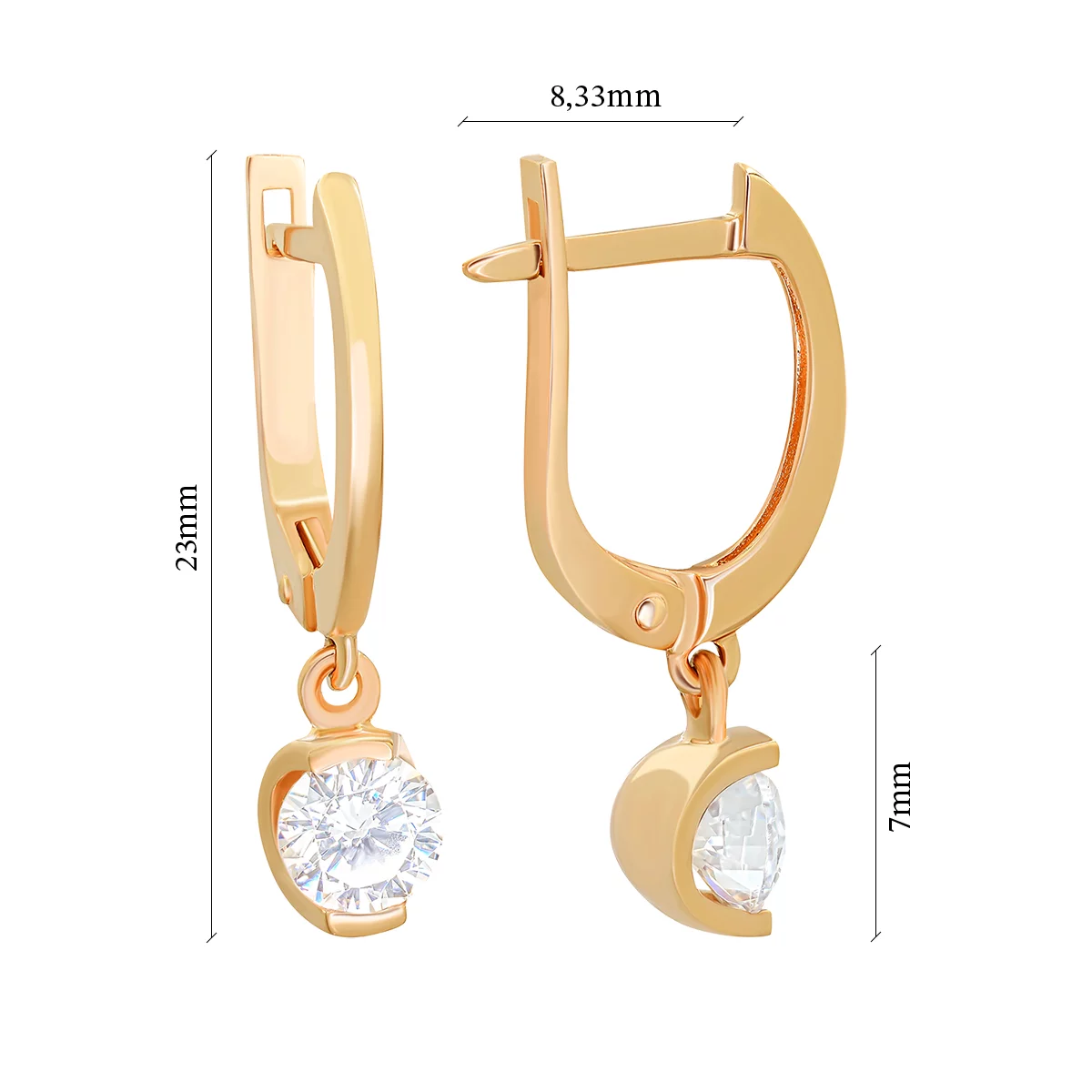 Стильні сережки з підвісами з червоного золота з шпинеллю та фіанітами - 1919552