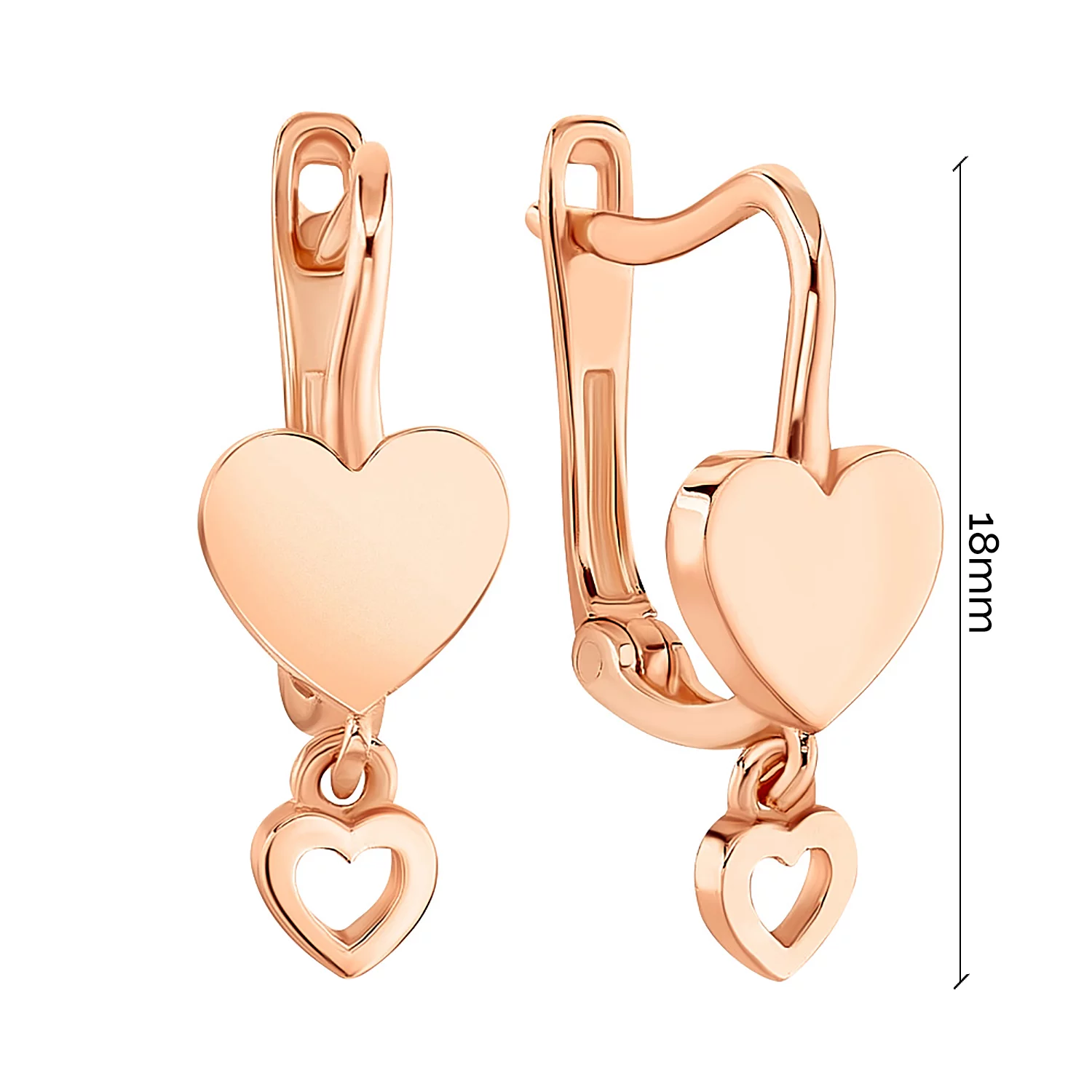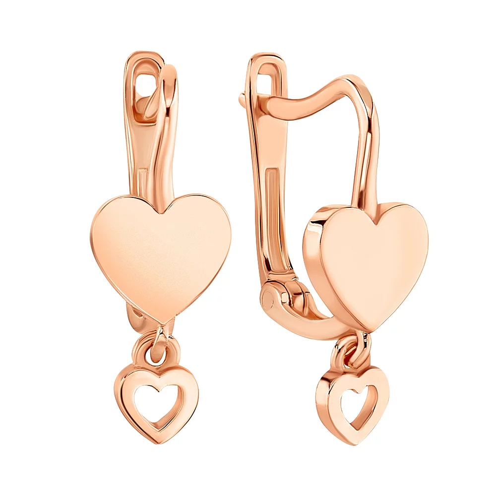 Сережки-кільця з підвісами з червоного золота в мінімалістичному стилі - 1690471