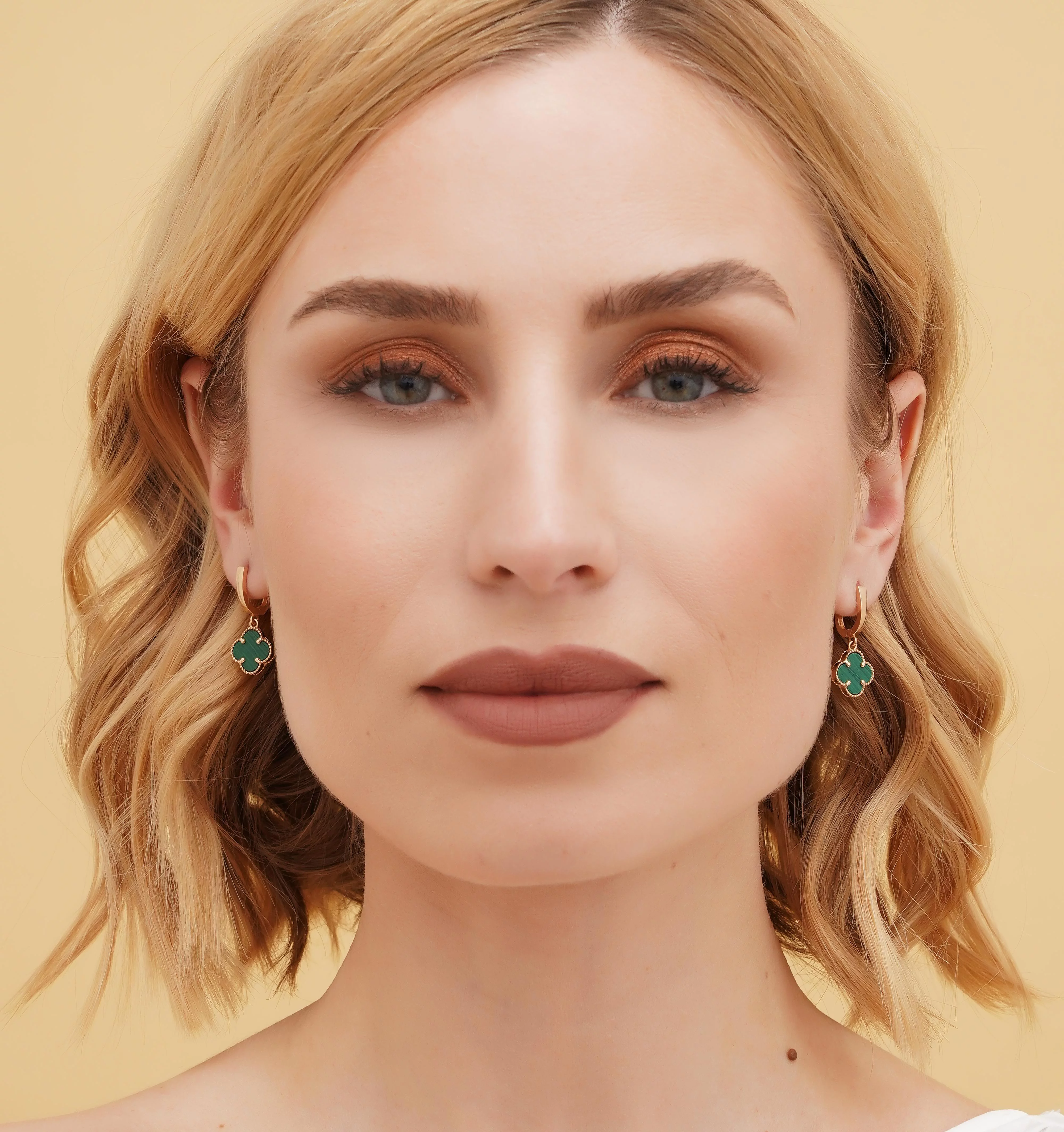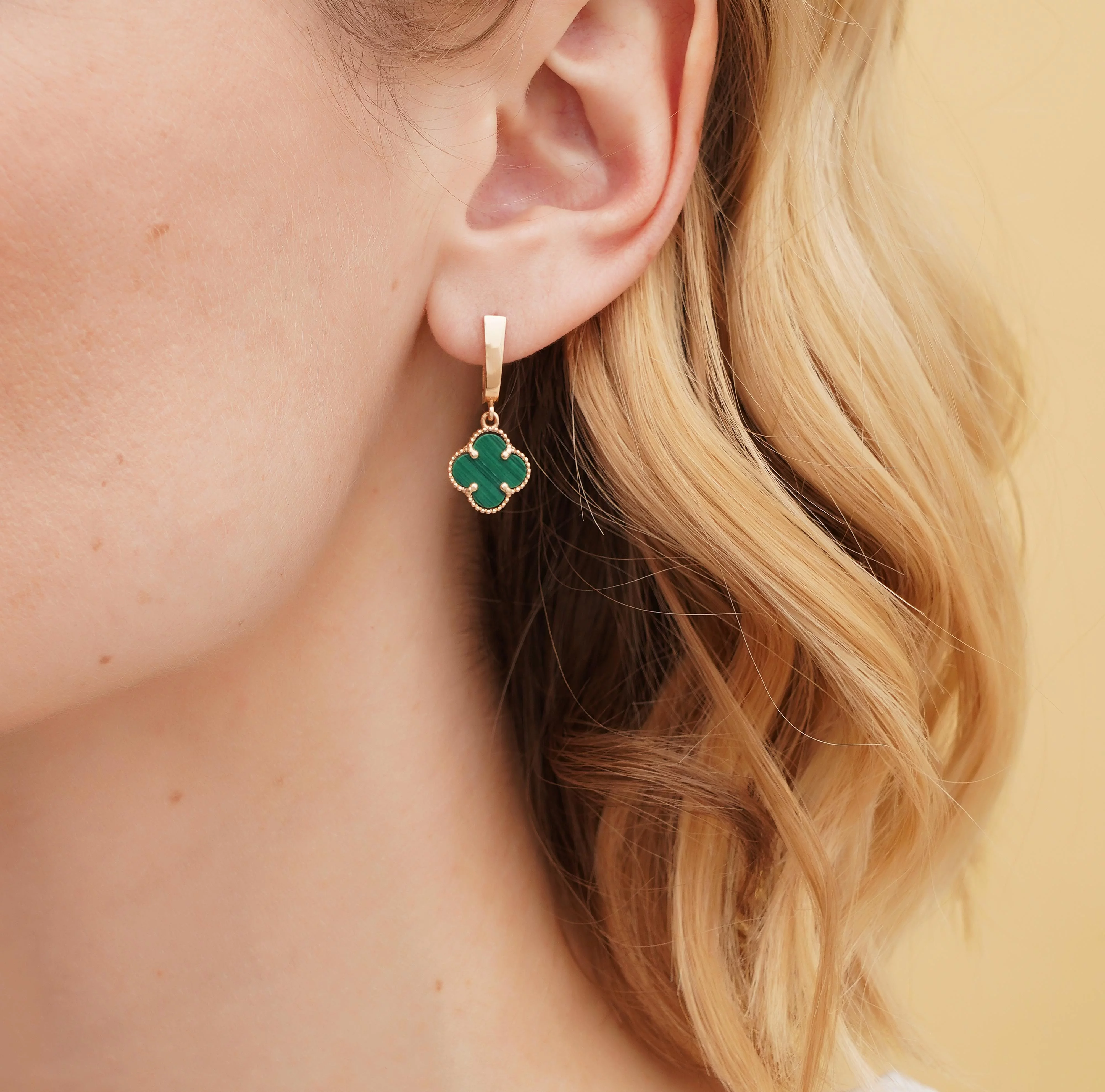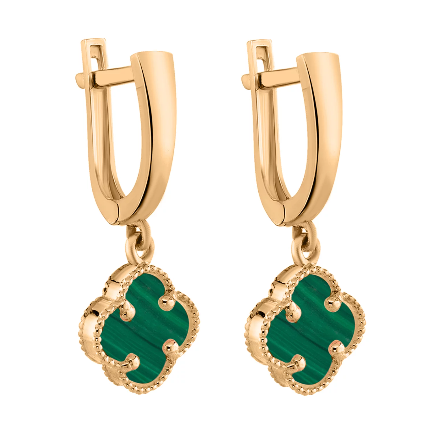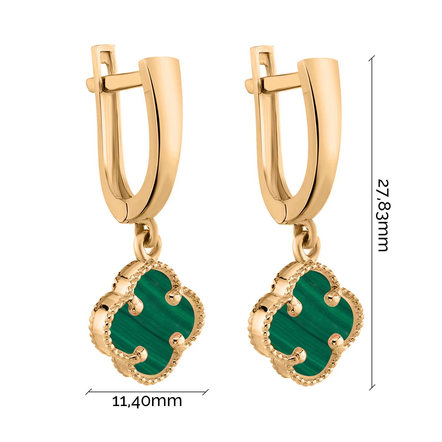 Сережки з жовтого золота з підвісами "Конюшина" з перламутром - 1866488