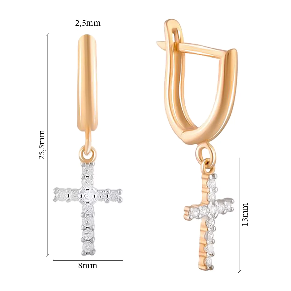Сережки з підвісками "Ланцюги" з червоного золота з фіанітами - 1731703