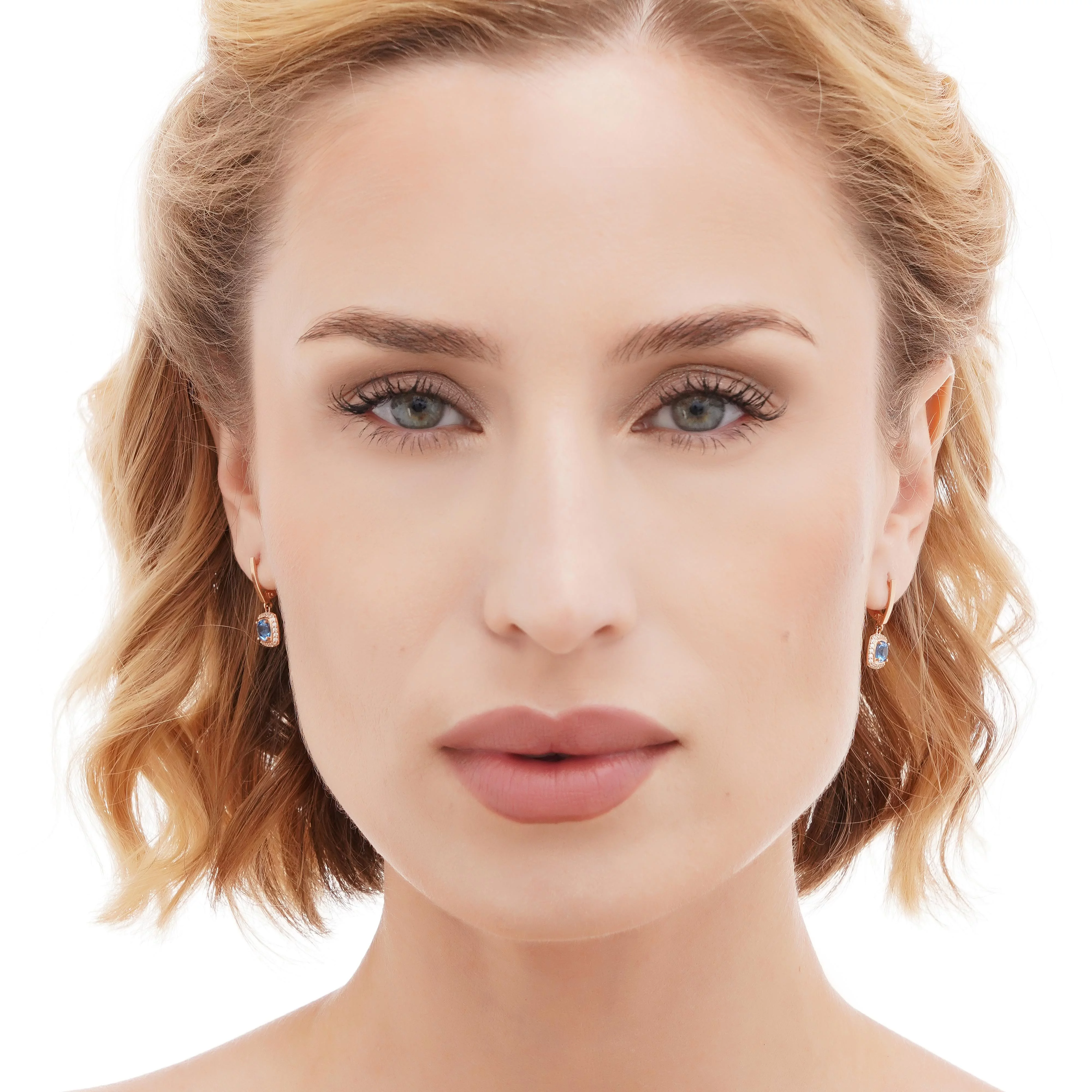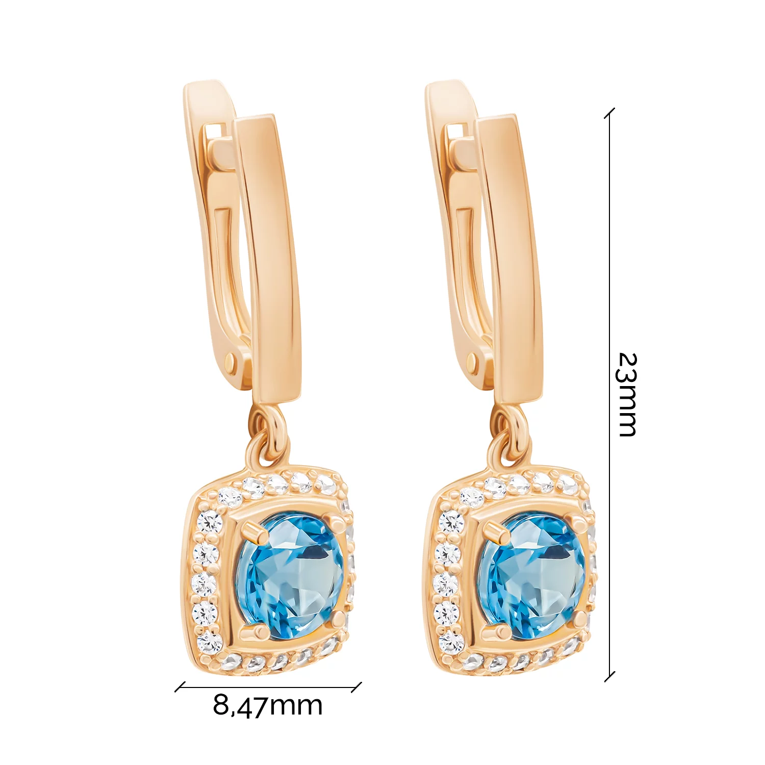 Сережки з червоного золота з підвісним топазом лондон та фіанітом - 1834025