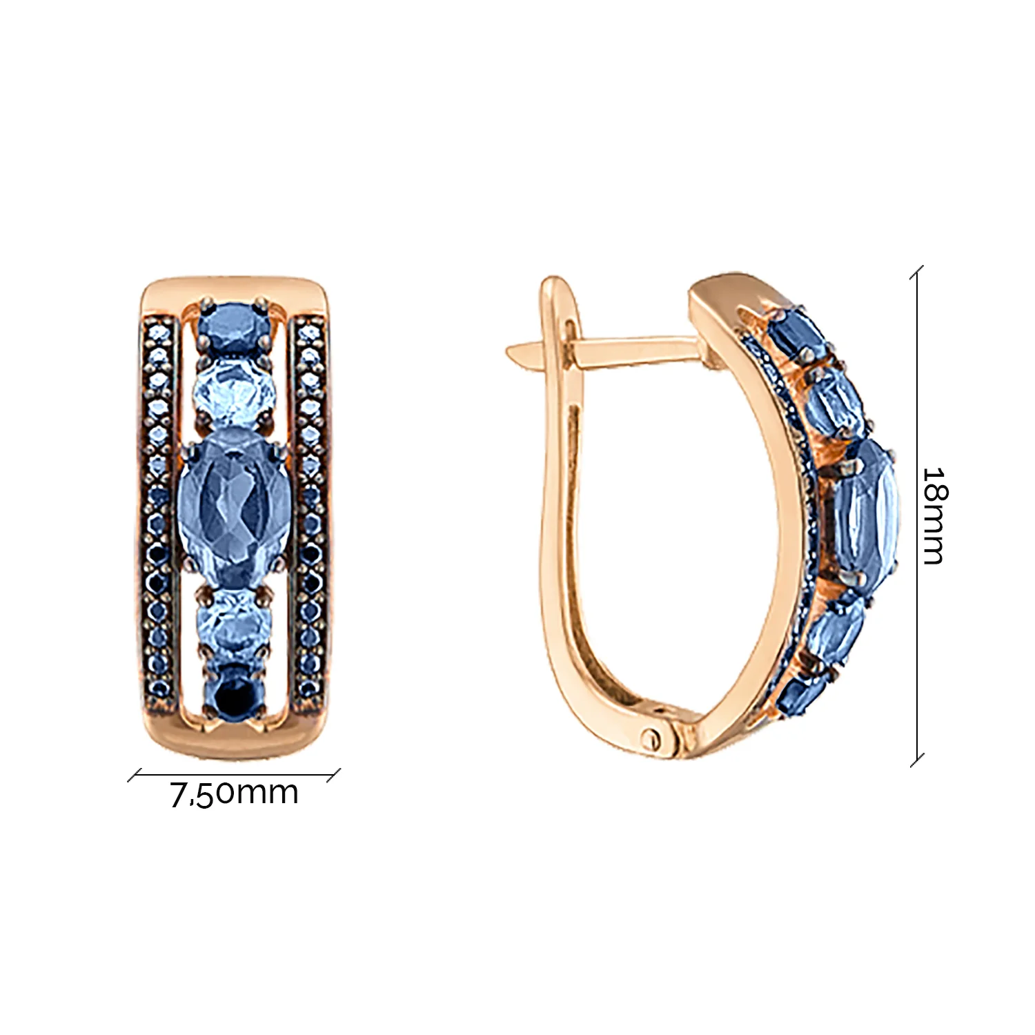 Сережки з підвісами з червоного золота з топазом лондон і фіанітами - 1919551