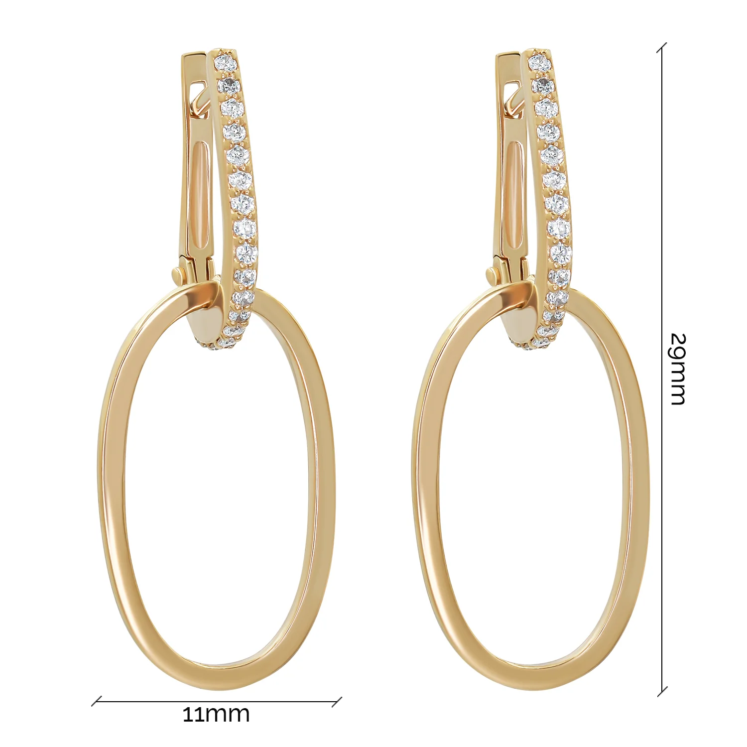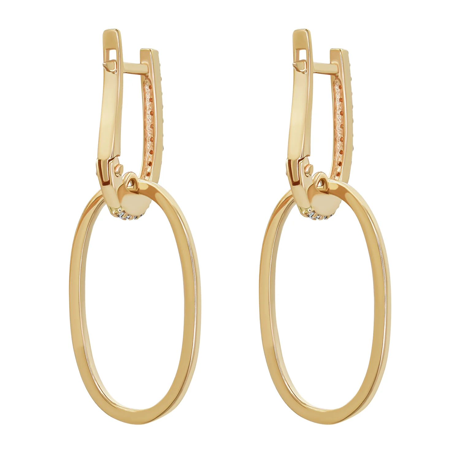 Стильні сережки з підвісом із комбінованого золота з фіанітами - 1877893