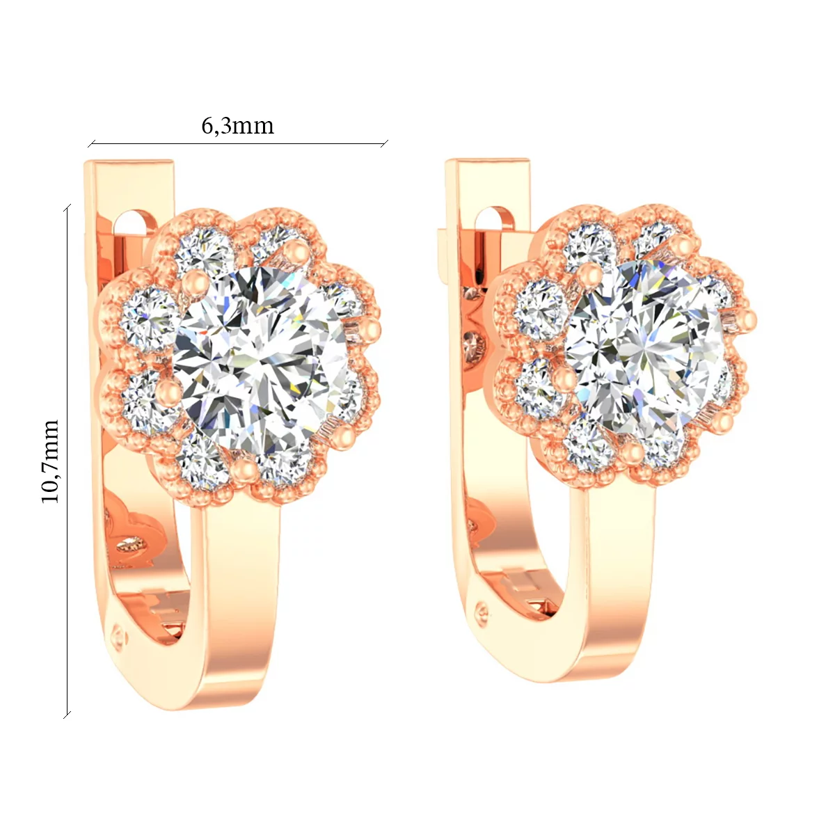Стильні сережки-гвоздики "Флора" з червоного золота з емаллю та фіанітом - 1927691