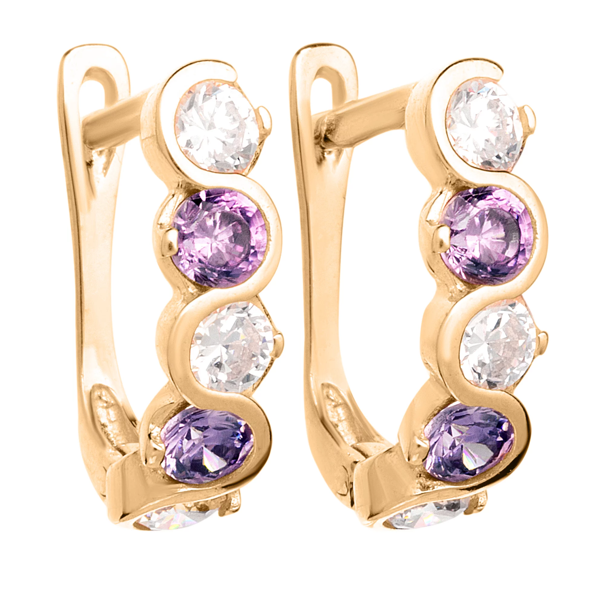 Сережки "Квадрат" у червоному золоті з гранатом та фіанітами - 1925554