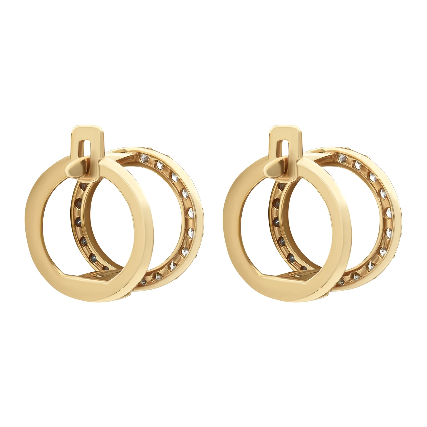 Стильні сережки "Коло" у лимонному золоті з розсипом фіанітів - 1958622