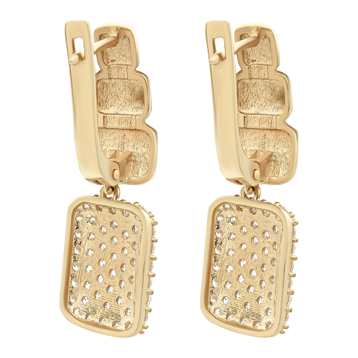 Стильні сережки з підвісом із комбінованого золота з фіанітами - 1877893