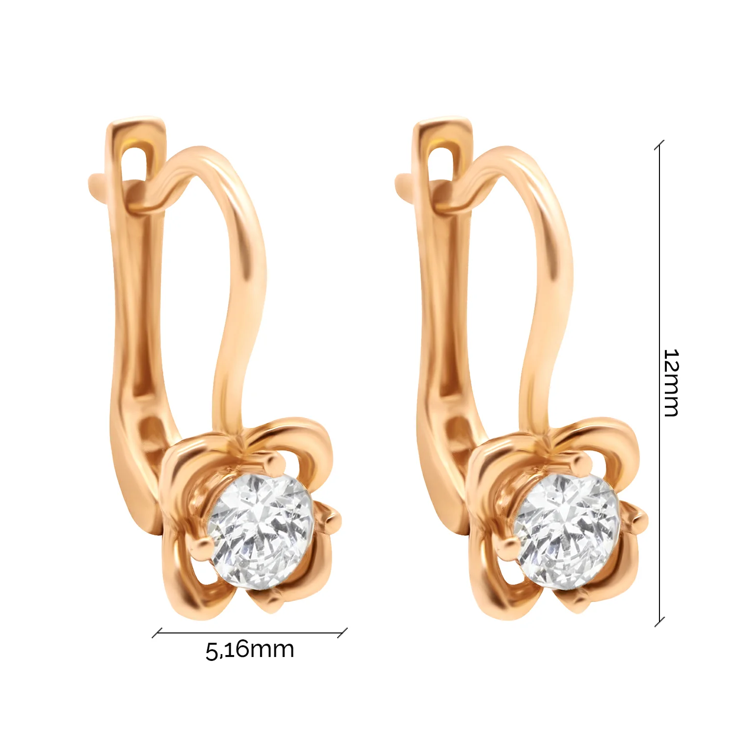 Сережки-протяжки "Квіти" у червоному золоті з фіанітами та підвісами - 1928097