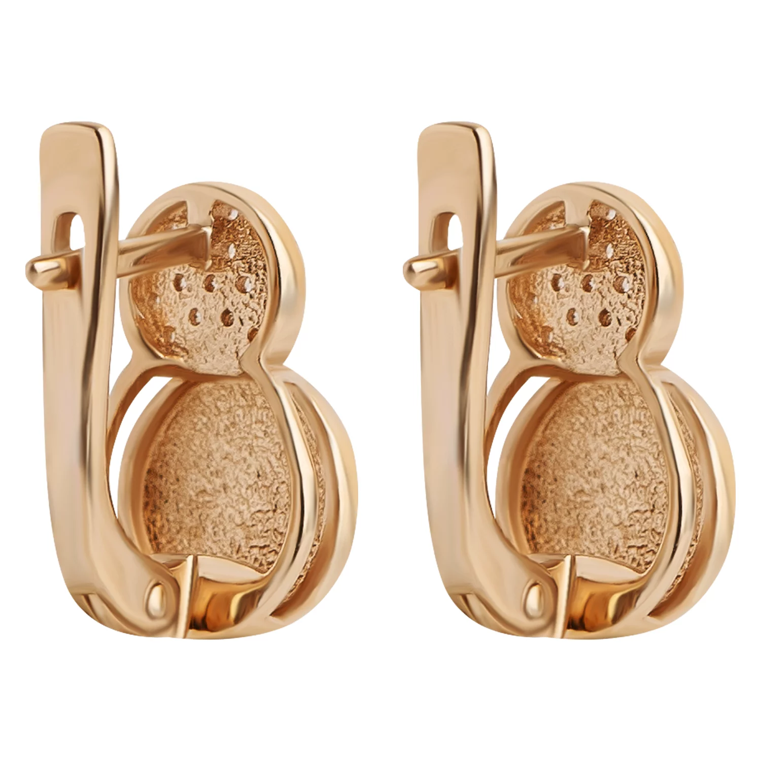 Стильні сережки з підвісами у червоному золоті з емаллю та фіанітом - 1928138