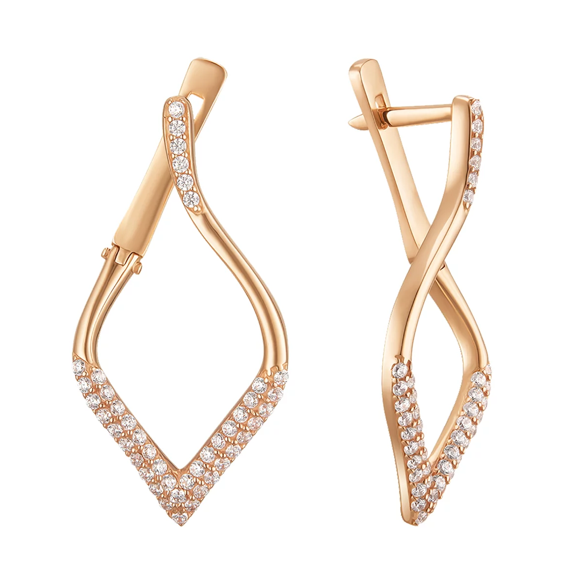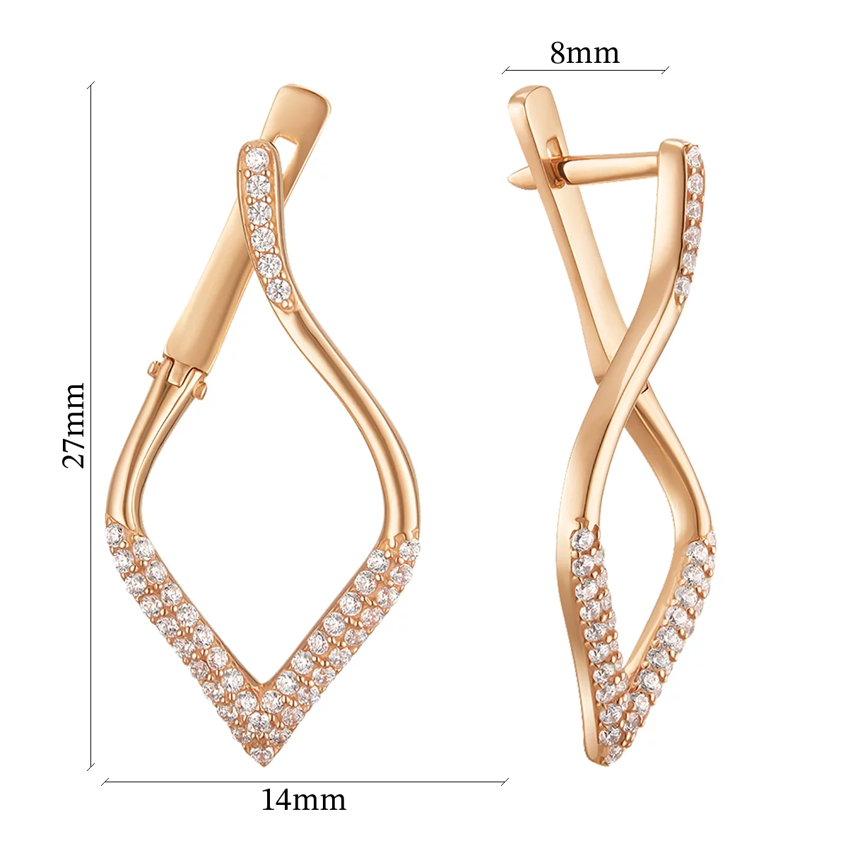 Сережки "Квадрат" у червоному золоті з гранатом та фіанітами - 1925554