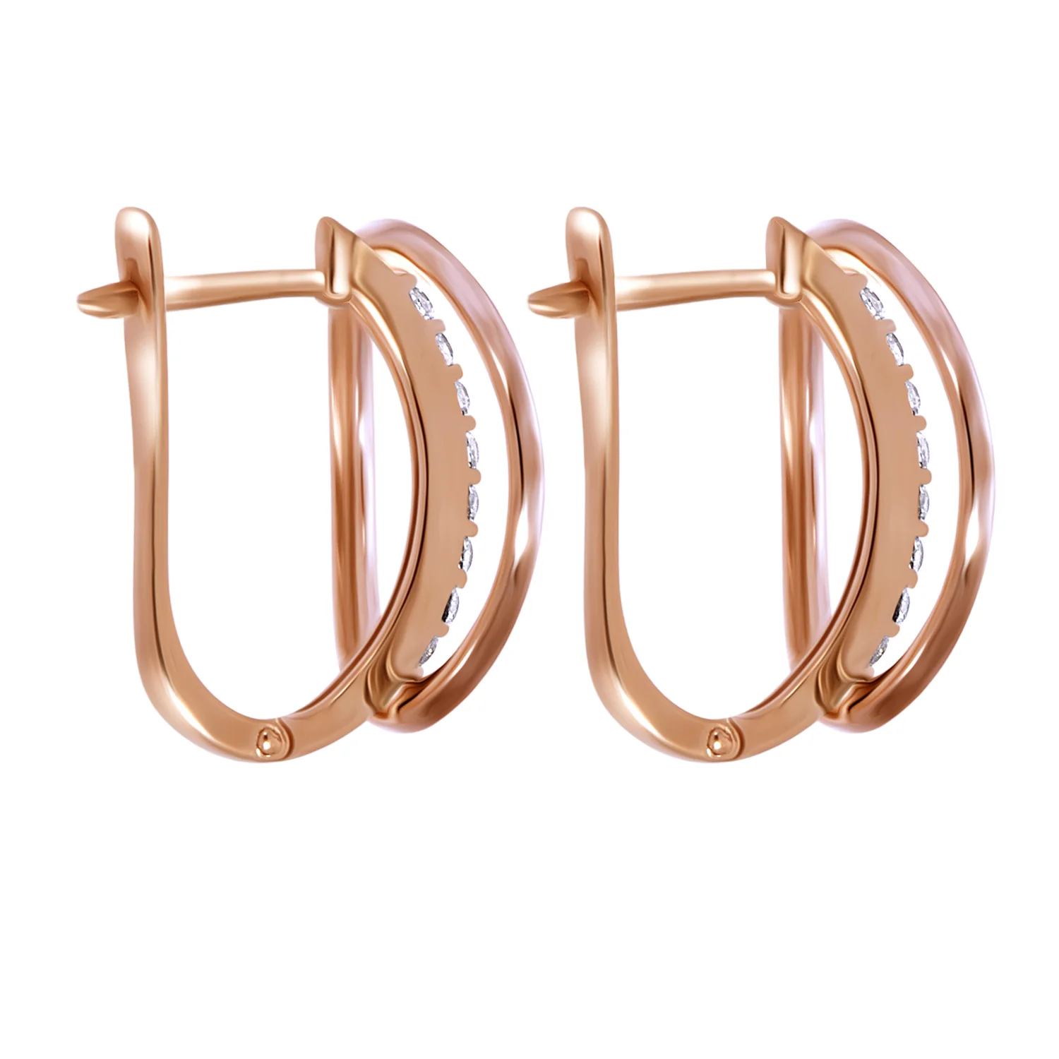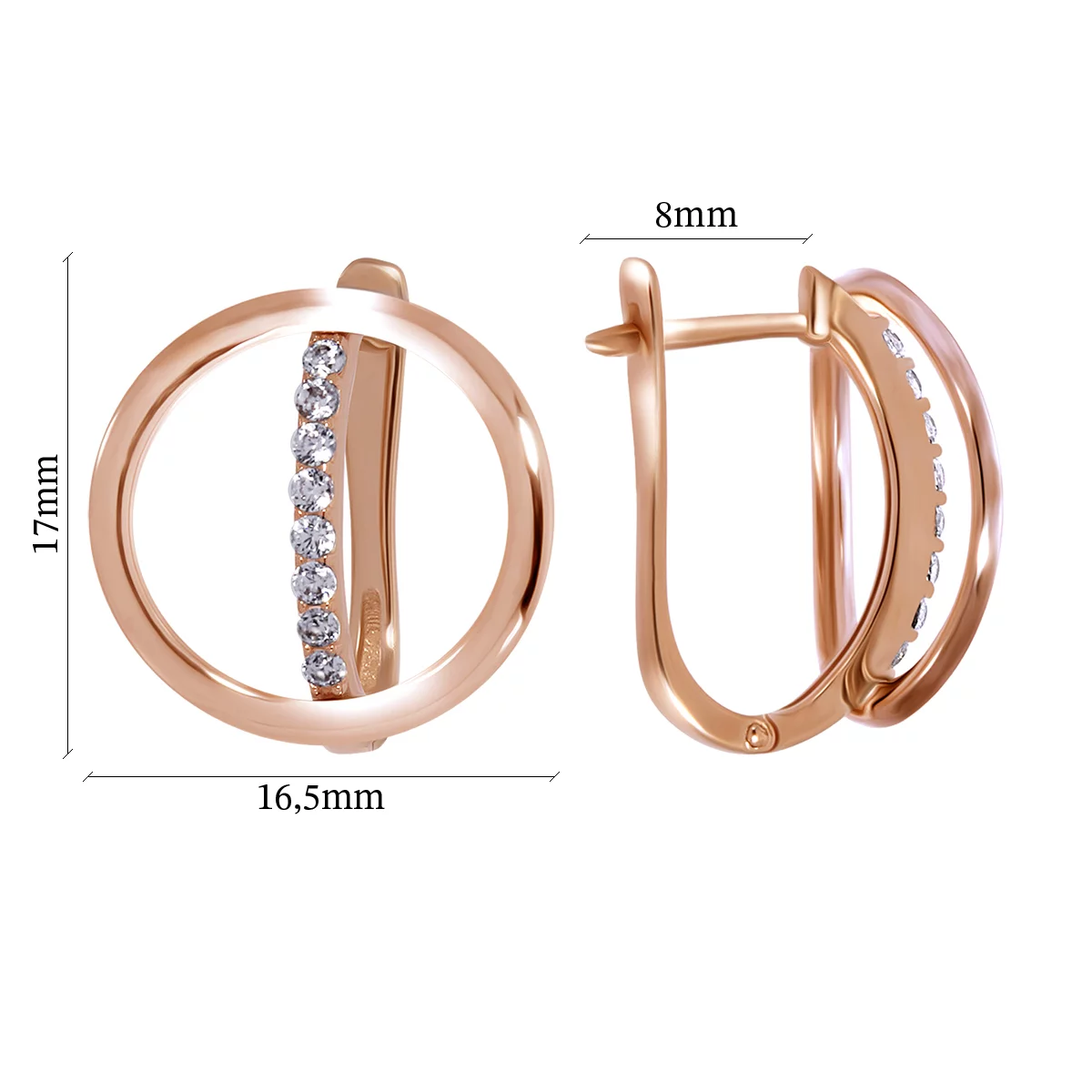 Сережки з червоного золота в геометричному стилі з фіанітами - 1877892