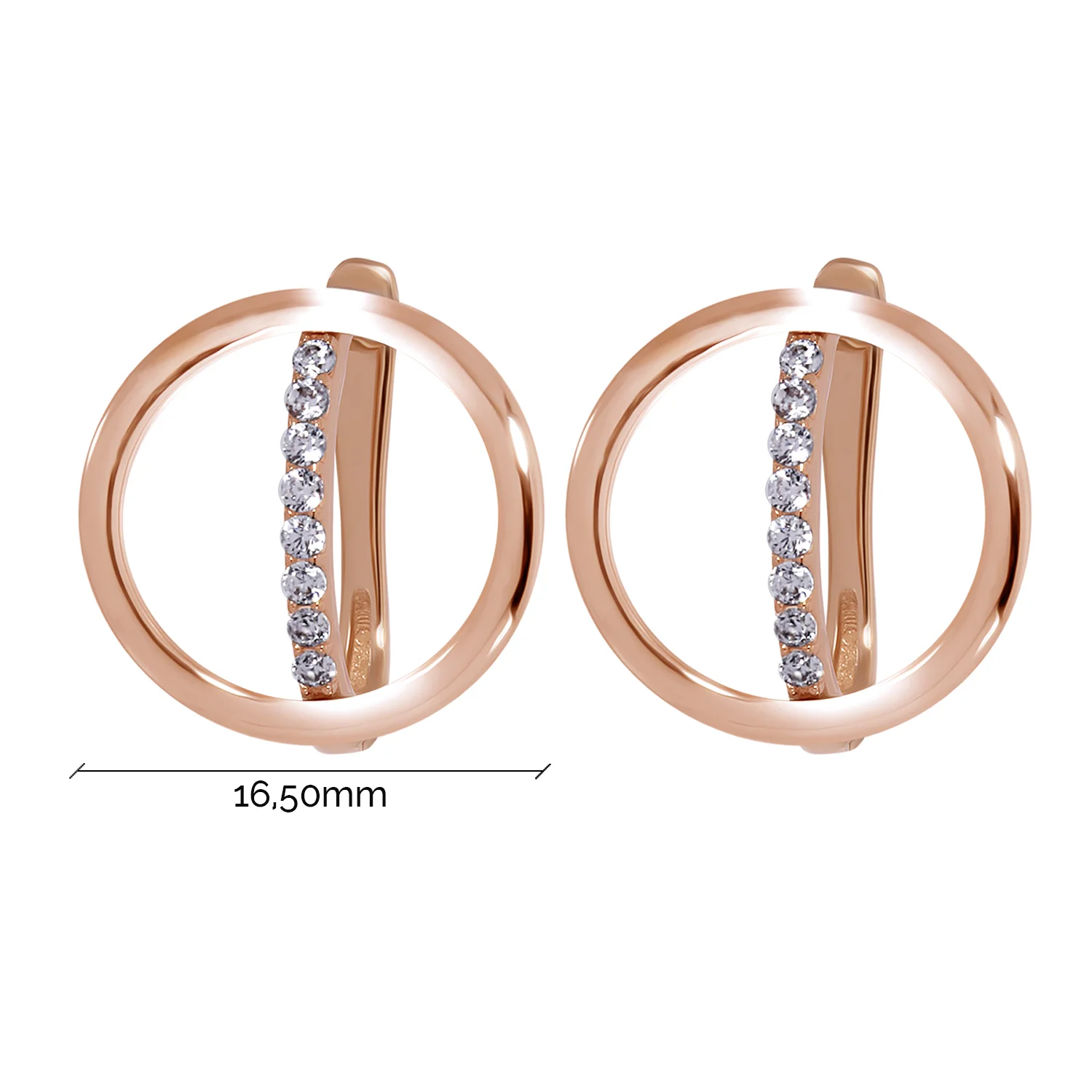Стильні сережки-пусети "Коло" у червоному золоті з емаллю та фіанітами - 1958570