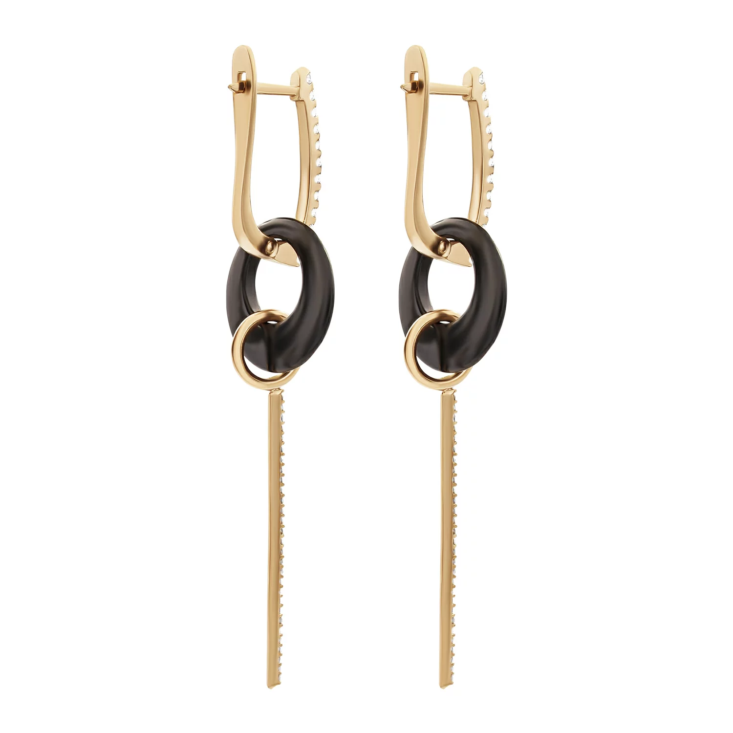 Золоті сережки з підвісками "Палички" з фіанітом та алмазною гранню - 1530961