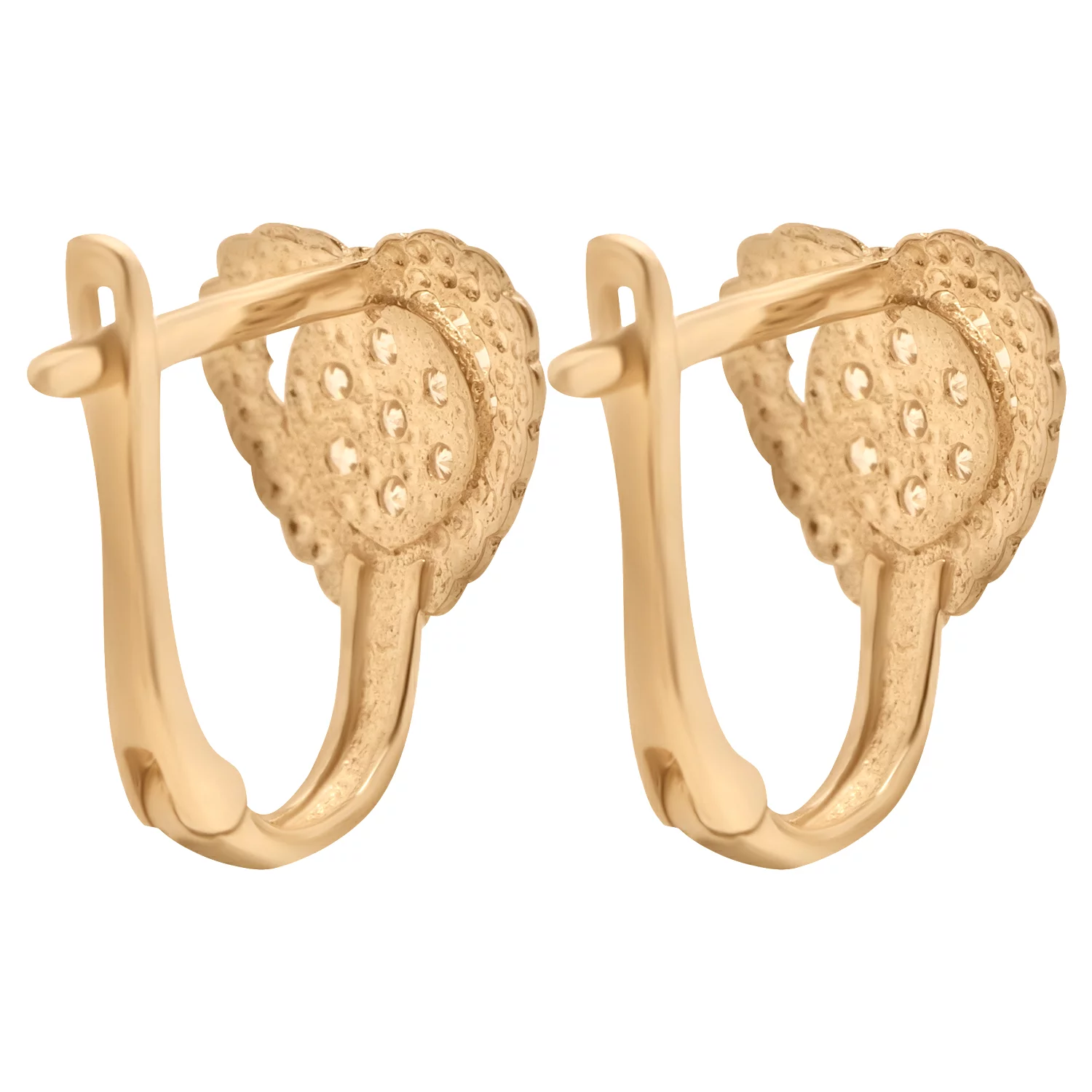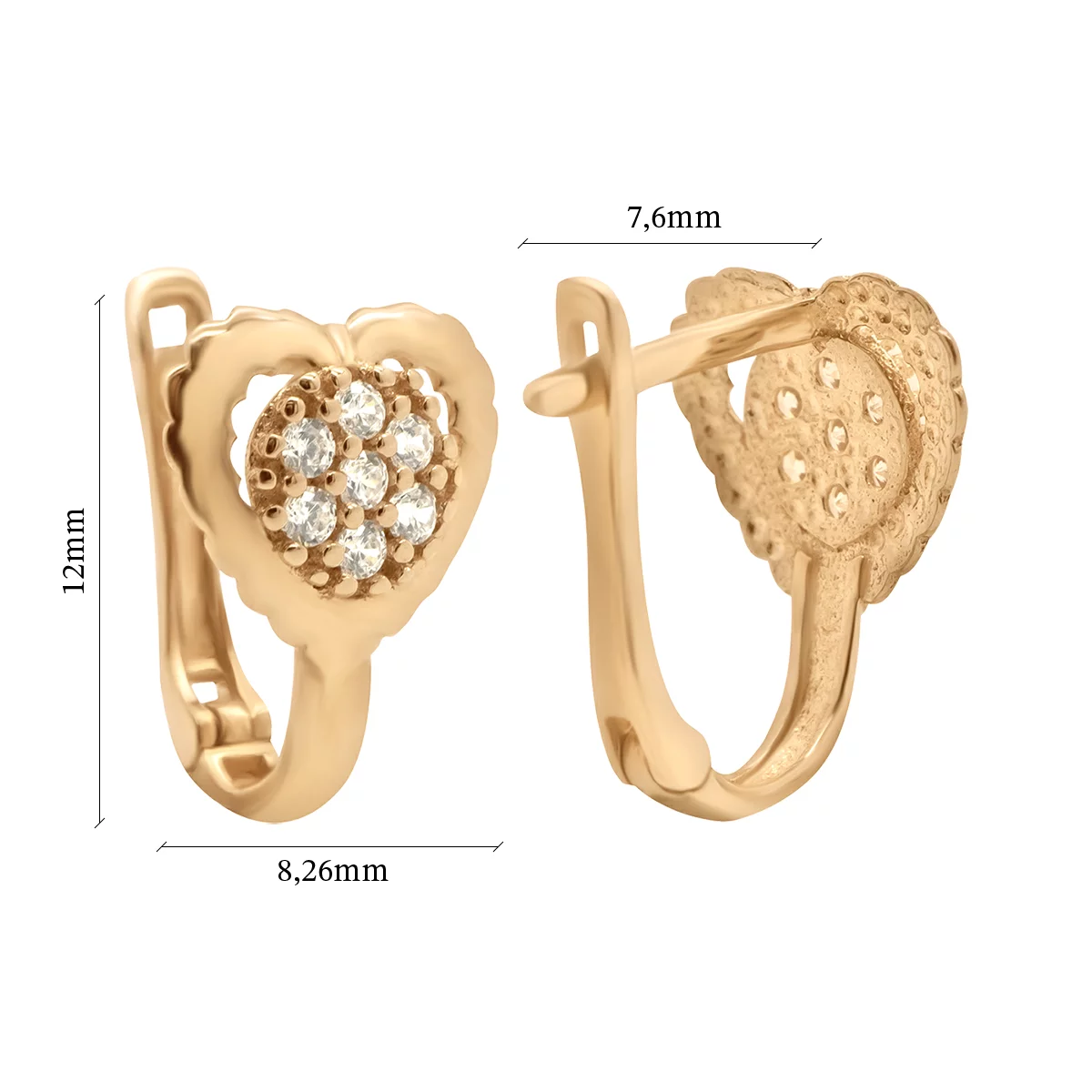 Елегантні сережки-гвоздики у формі серця з червоного золота з фіанітами - 1877491