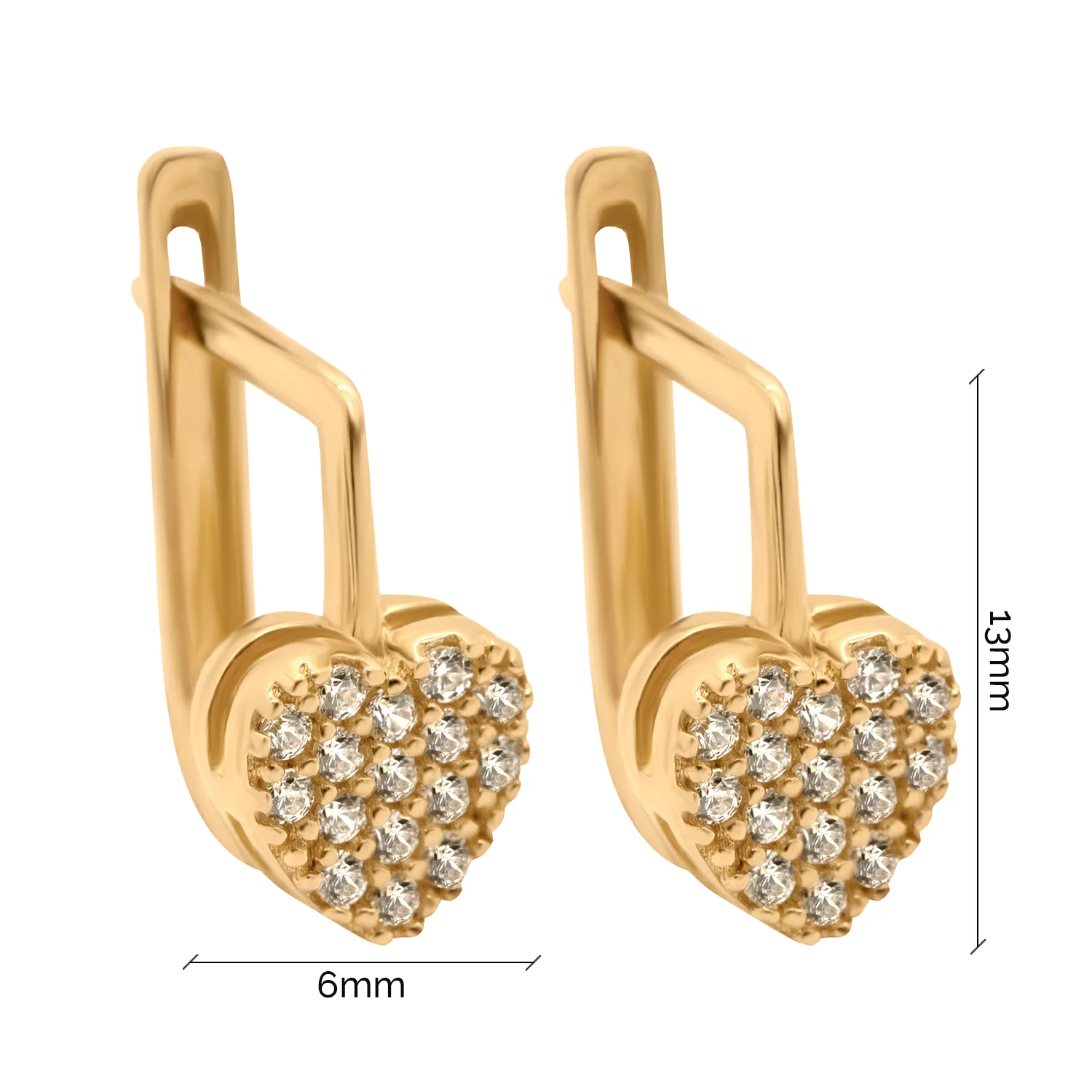 Елегантні сережки-пусети у формі серця з червоного золота з фіанітами - 1877491