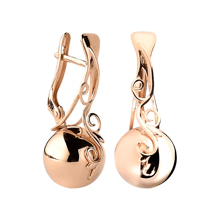 Сережки-гвоздики з червоного золота "Коло" зі знімною частиною - 1617442
