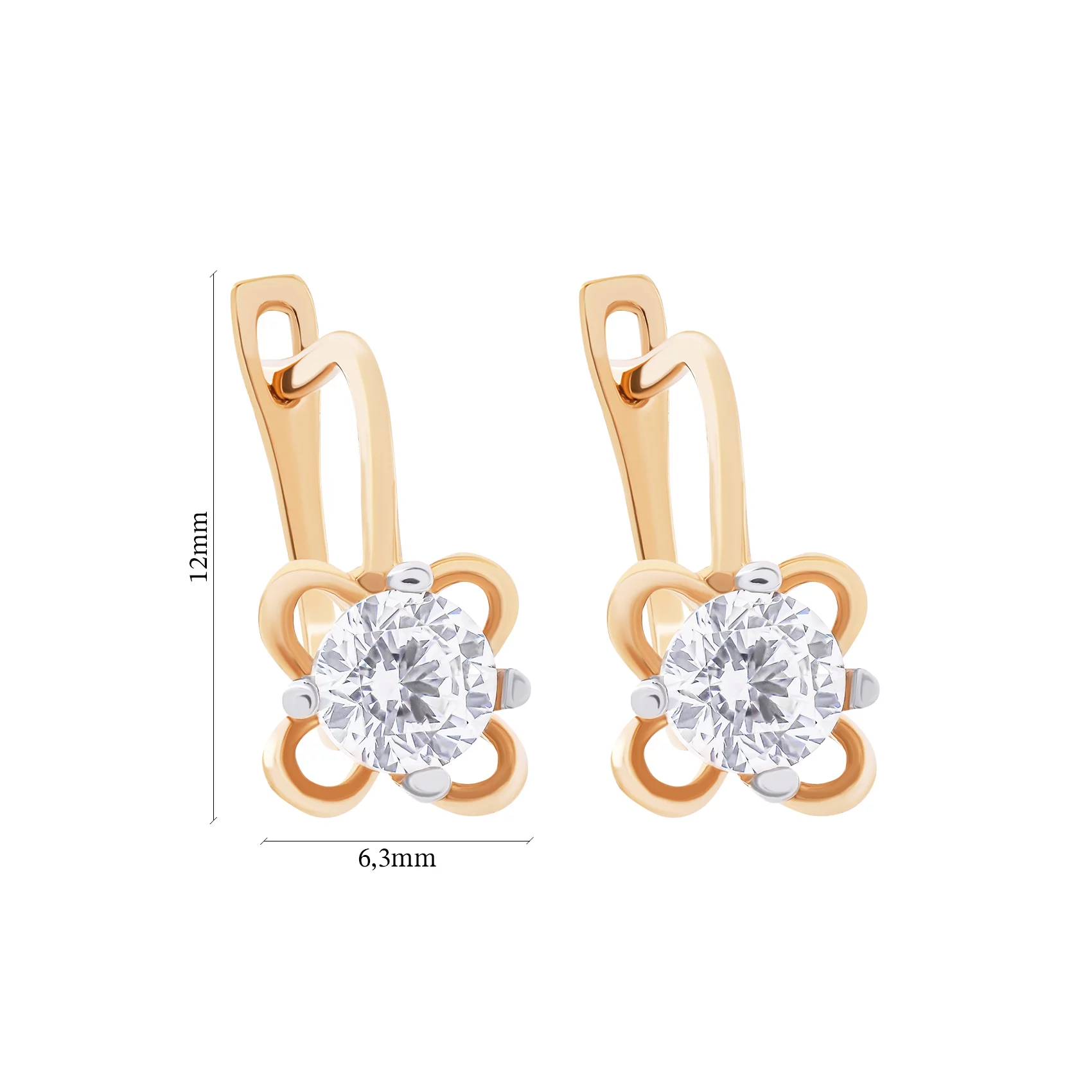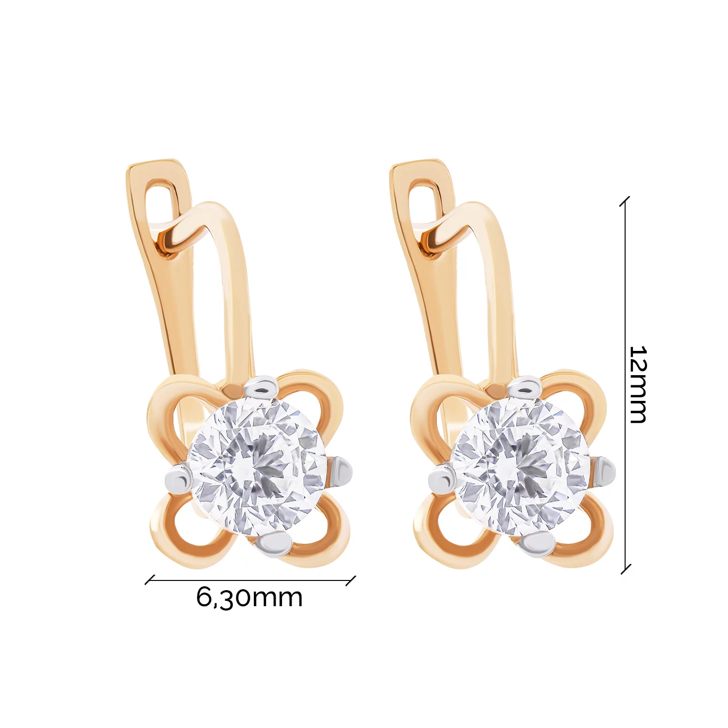 Сережки з червоного золота "Квітка" з фіанітом - 1500621