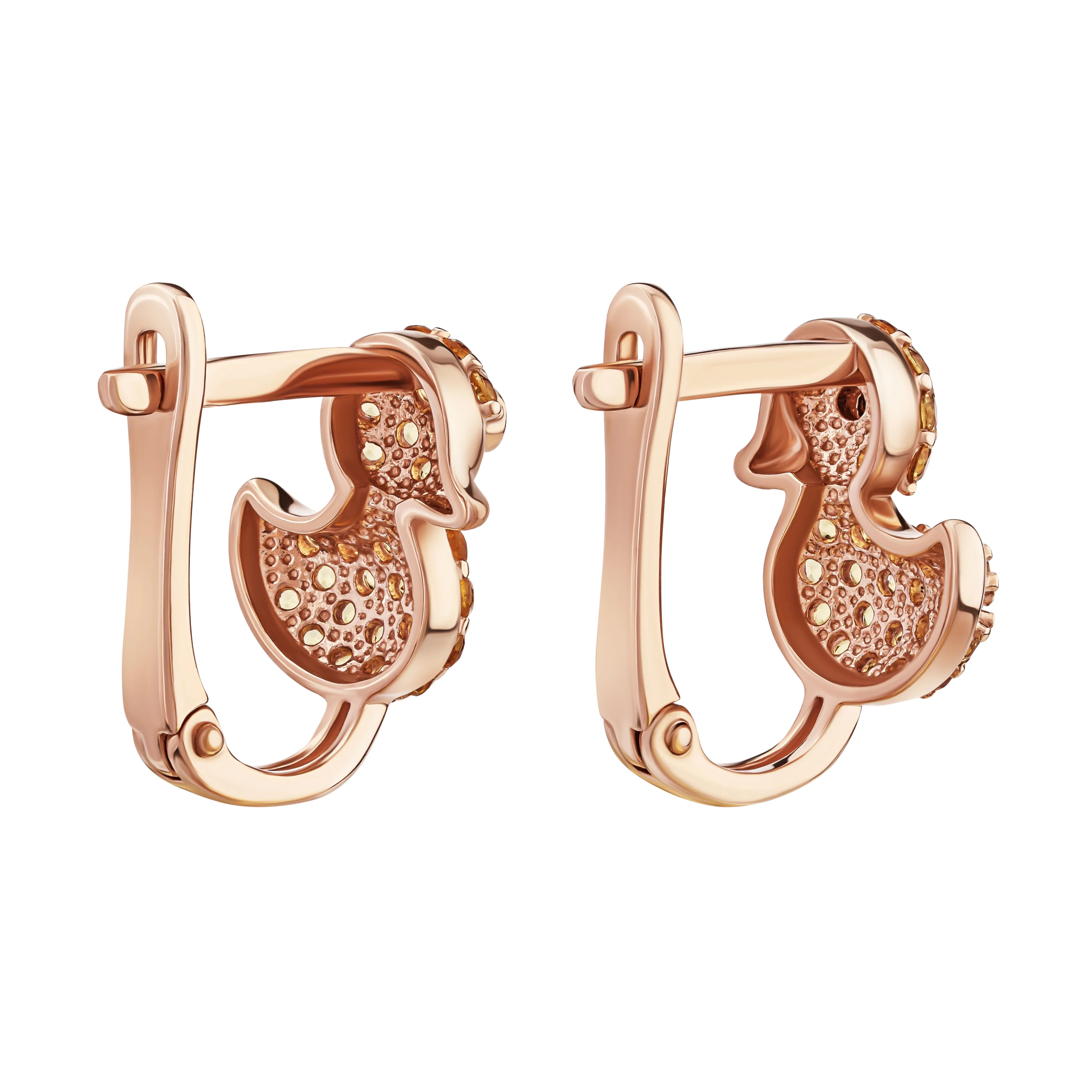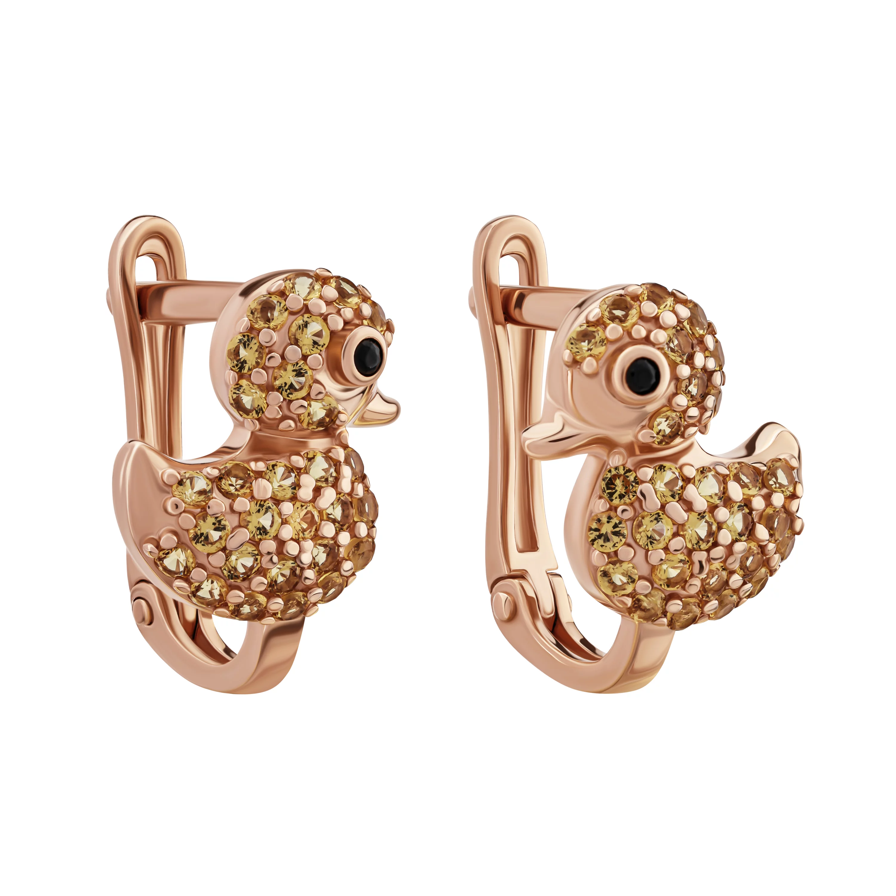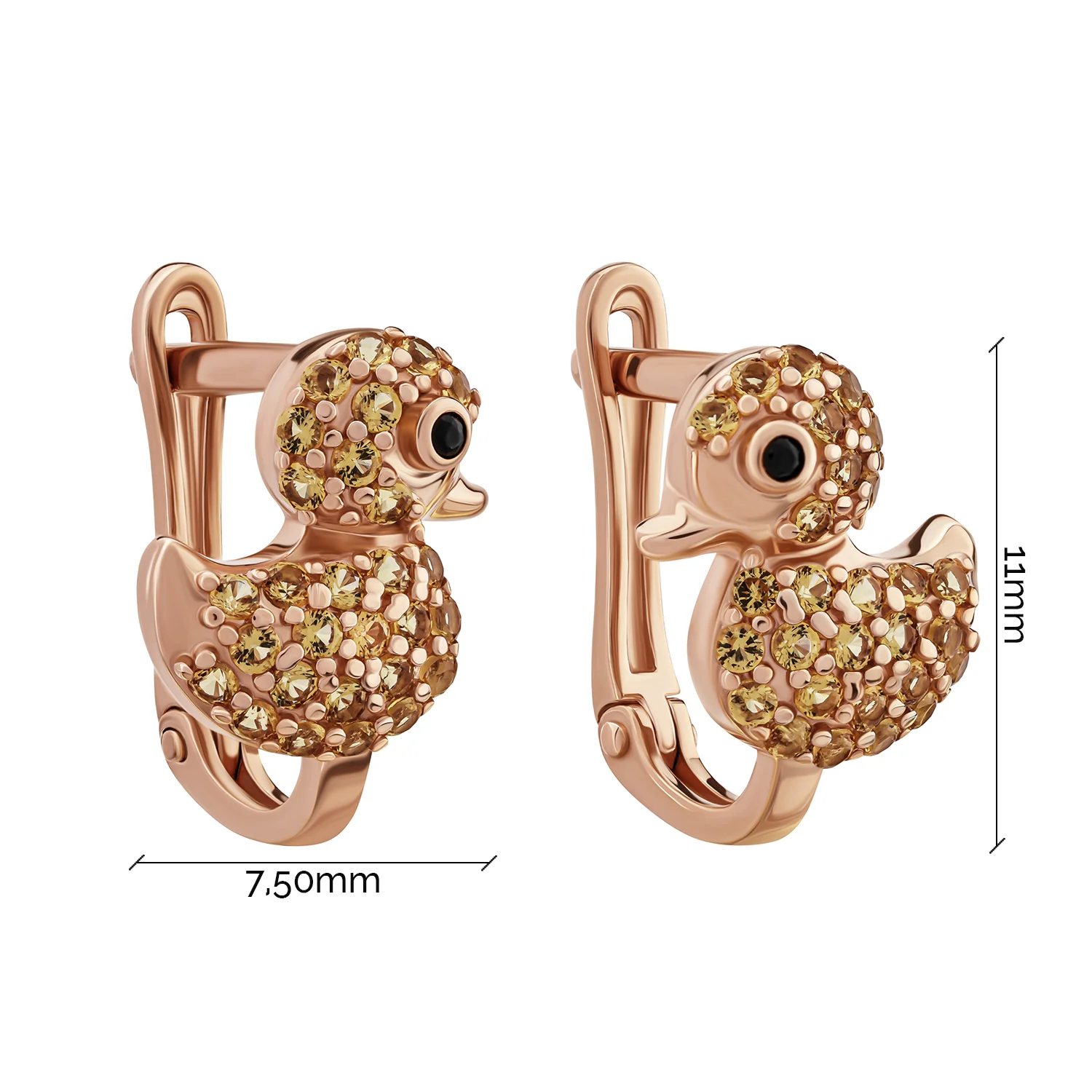 Дитячі сережки із червоного золота "Качечка" з фіанітами - 1846006