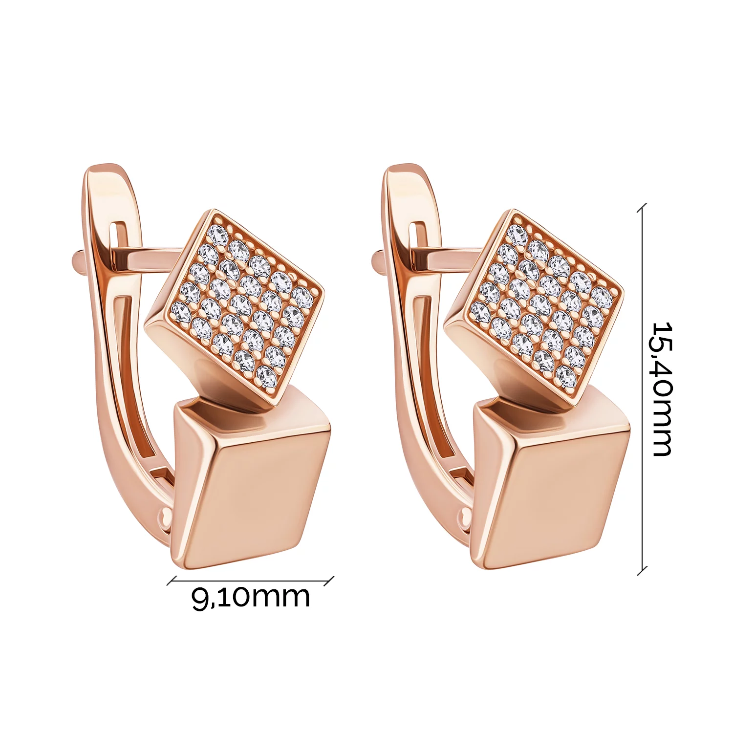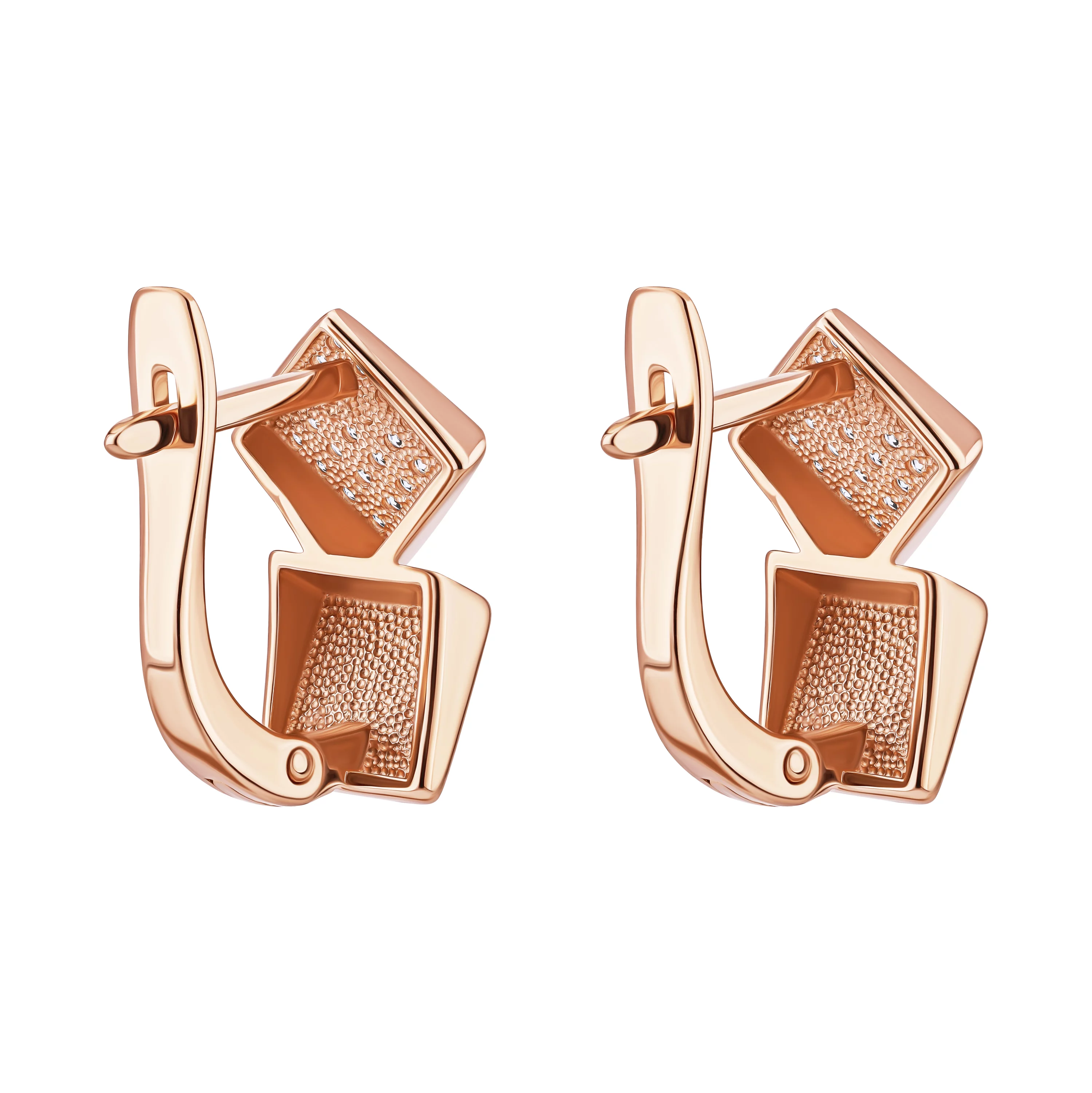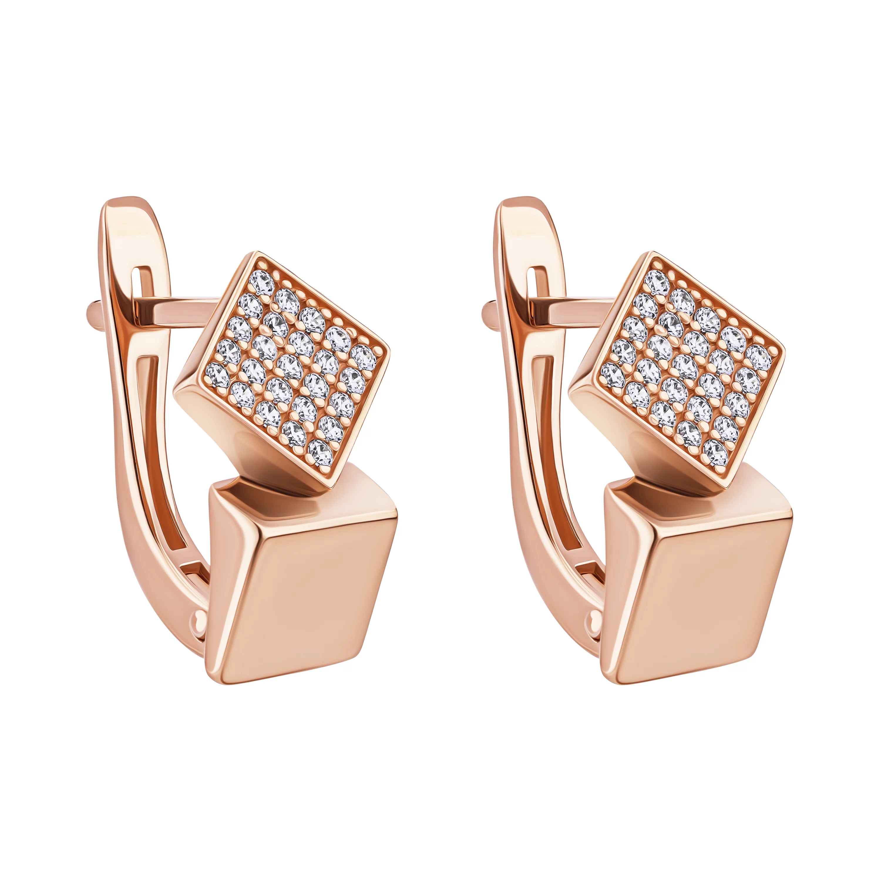 Стильні сережки "Квадрати" із червоного золота з доріжкою з фіанітів - 1876985