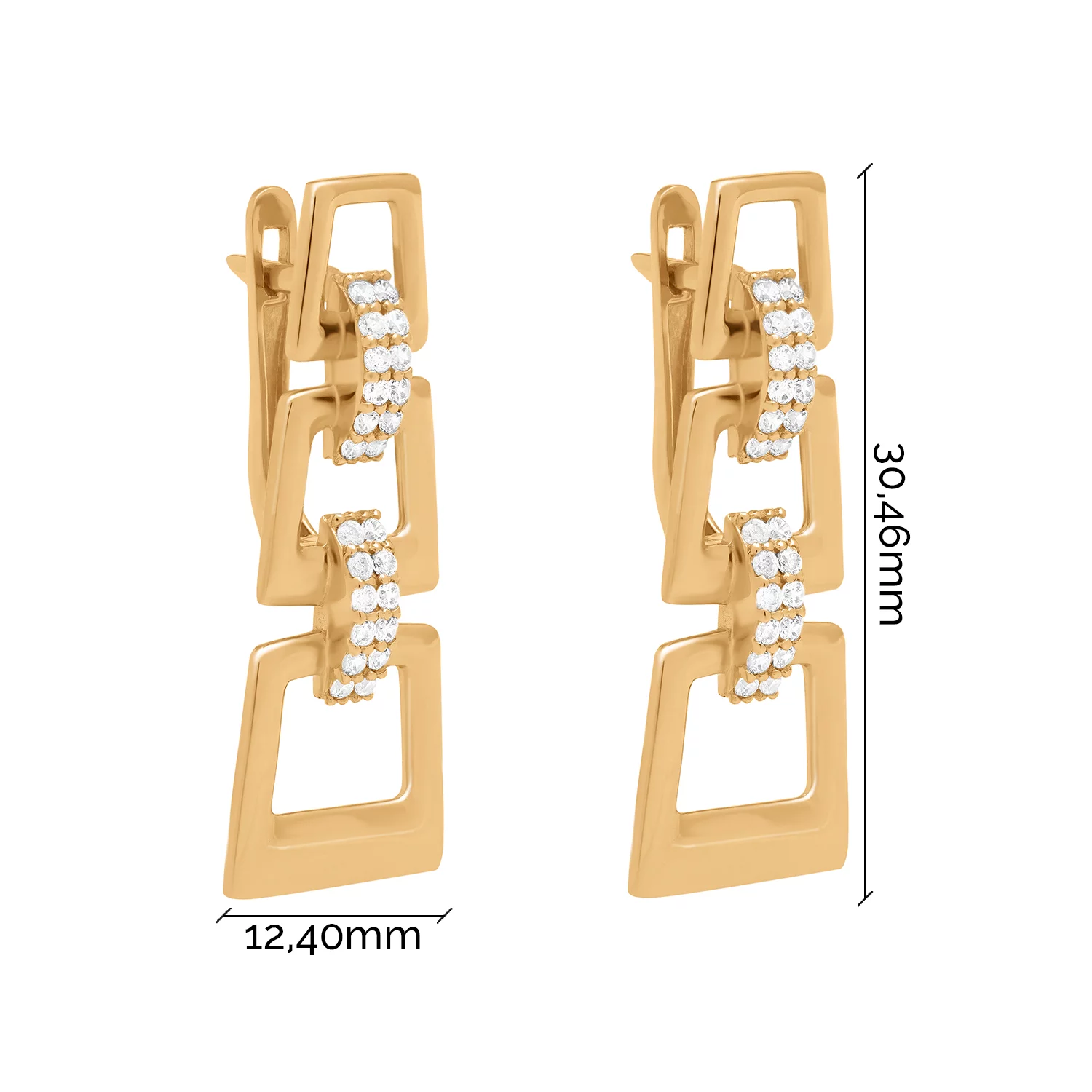 Золоті сережки з підвісками "Палички" з фіанітом та алмазною гранню - 1530961