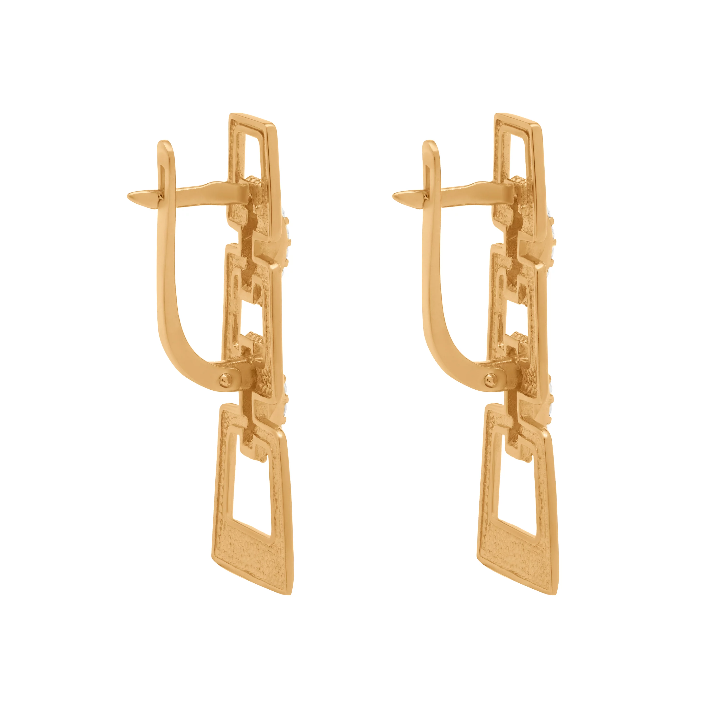 Сережки в червоному золоті з фіанітом і підвісками спіральної форми - 1589621