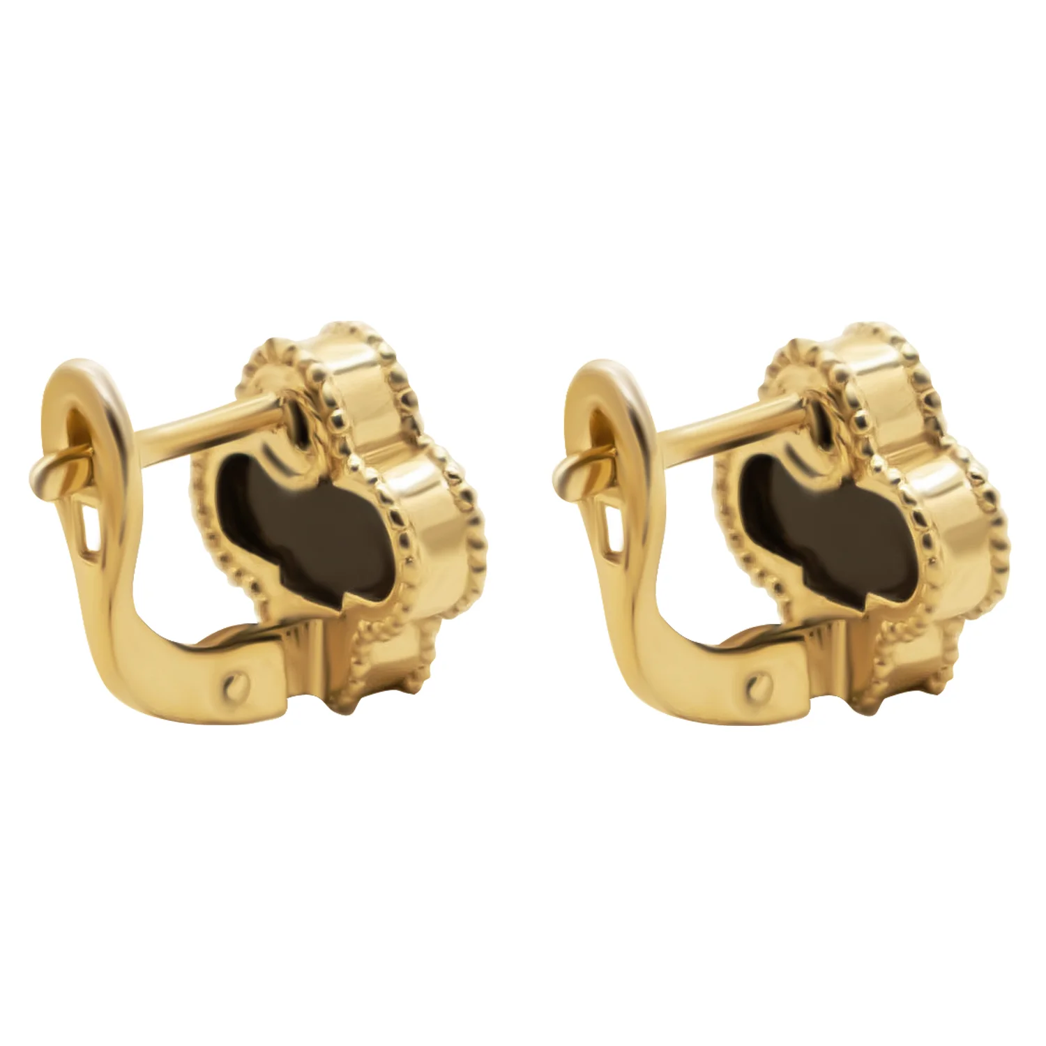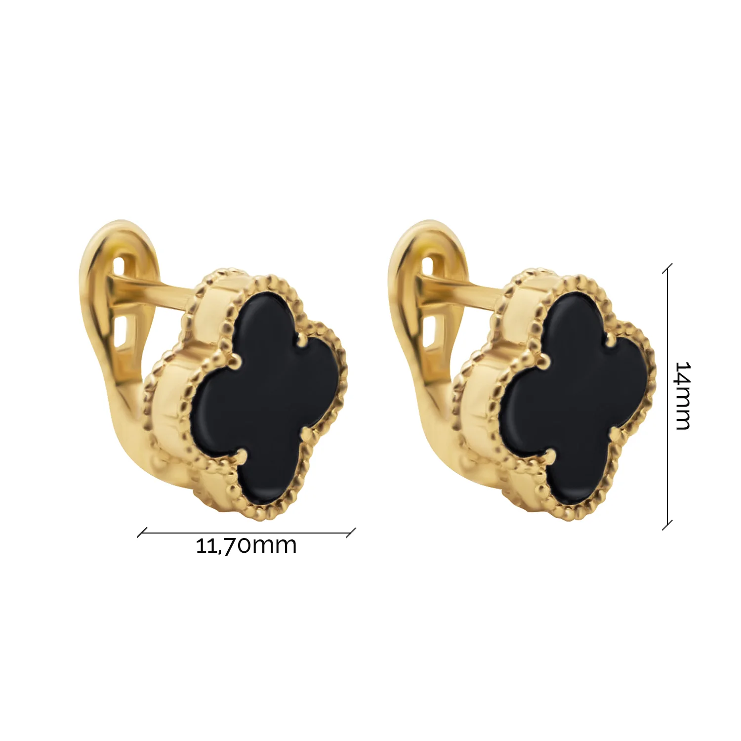 Стильні сережки-гвоздики "Конюшина" з червоного золота з оніксом - 1878296