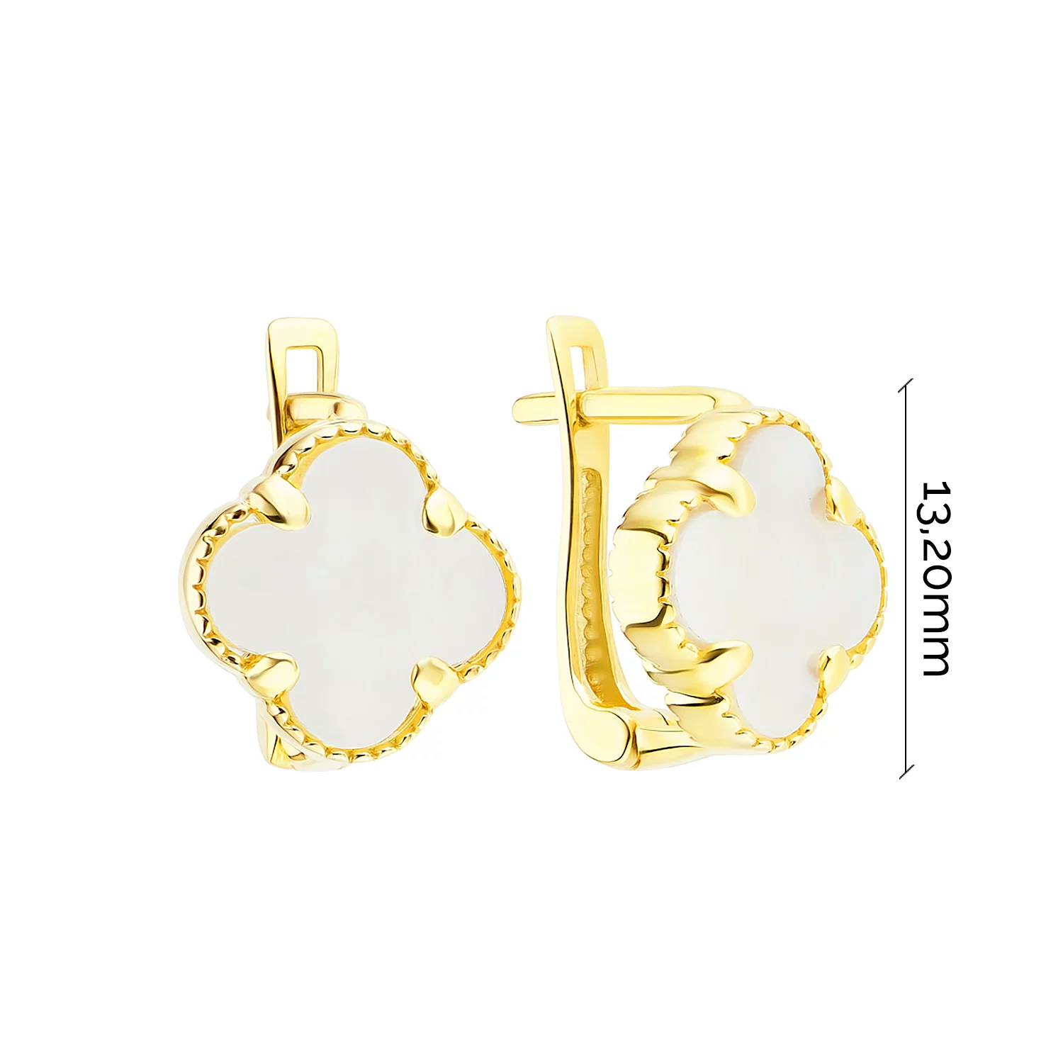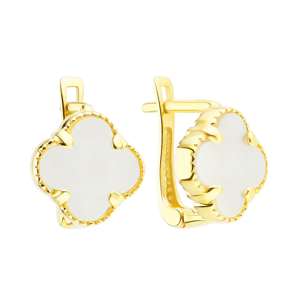 Сережки з підвісом "Конюшина" з перламутром у жовтому золоті - 1856218