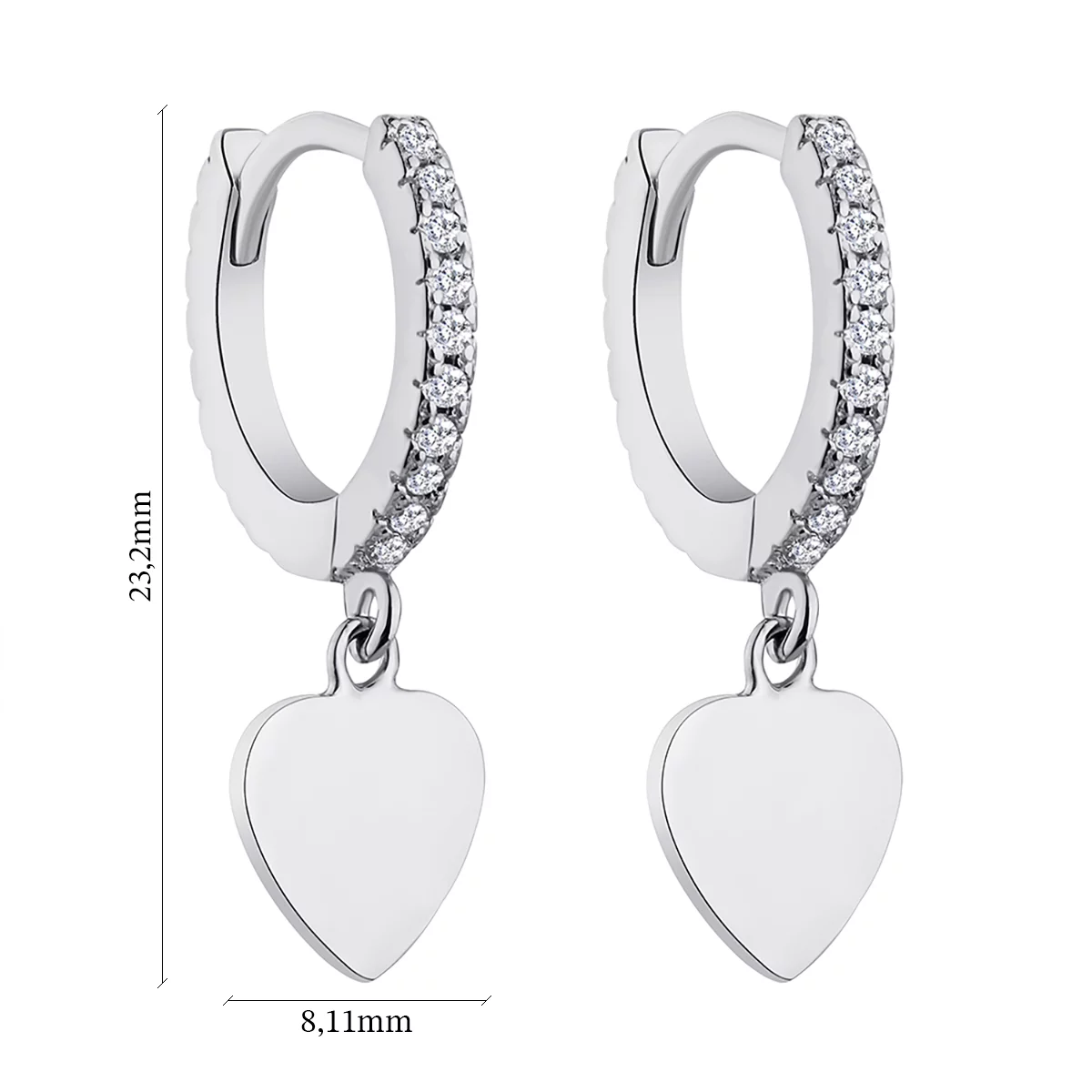 Сережки-кільця з фіанітом і підвісами Серце - 1303136