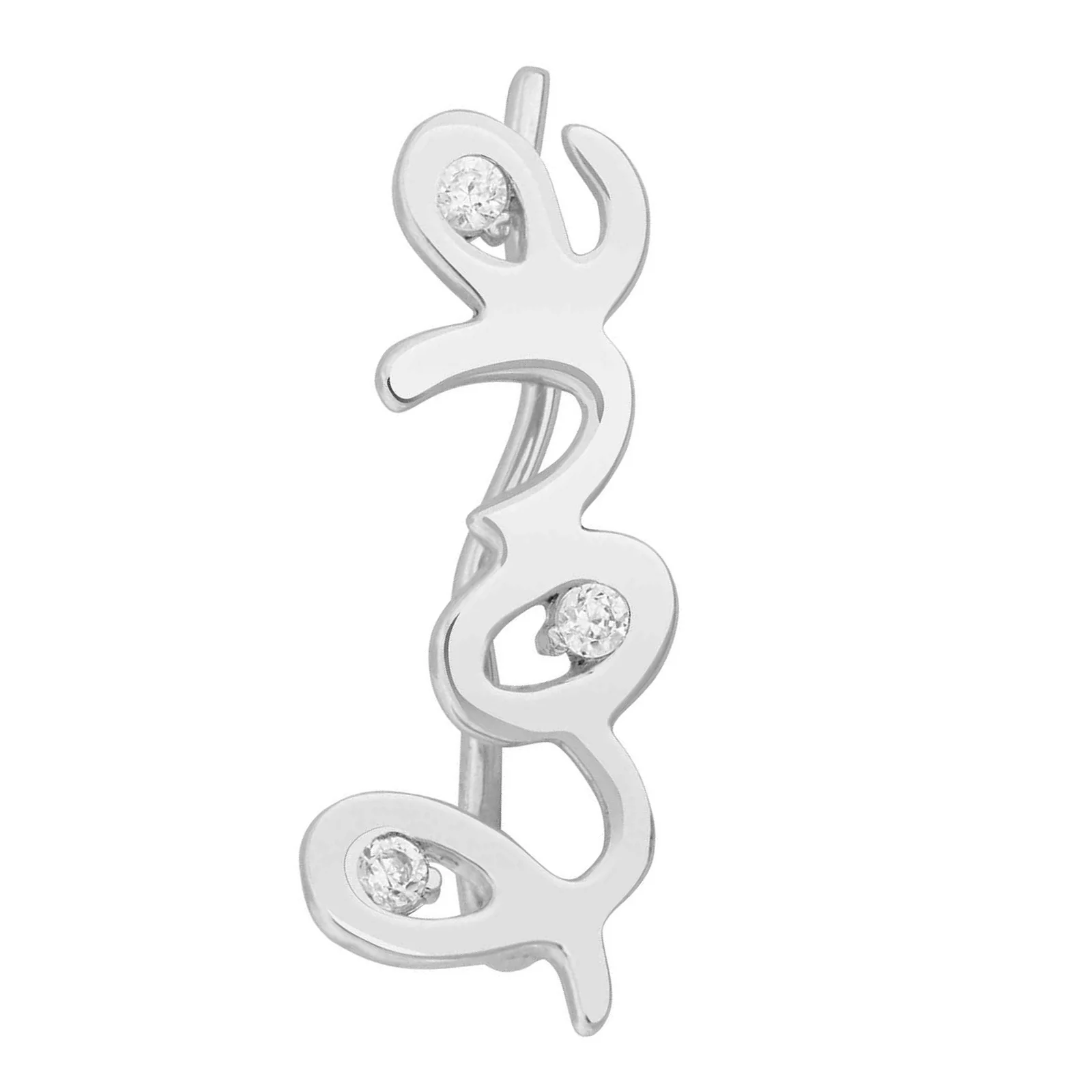 Сережки-кафи "Love" з білого золота з фіанітами - 2098265