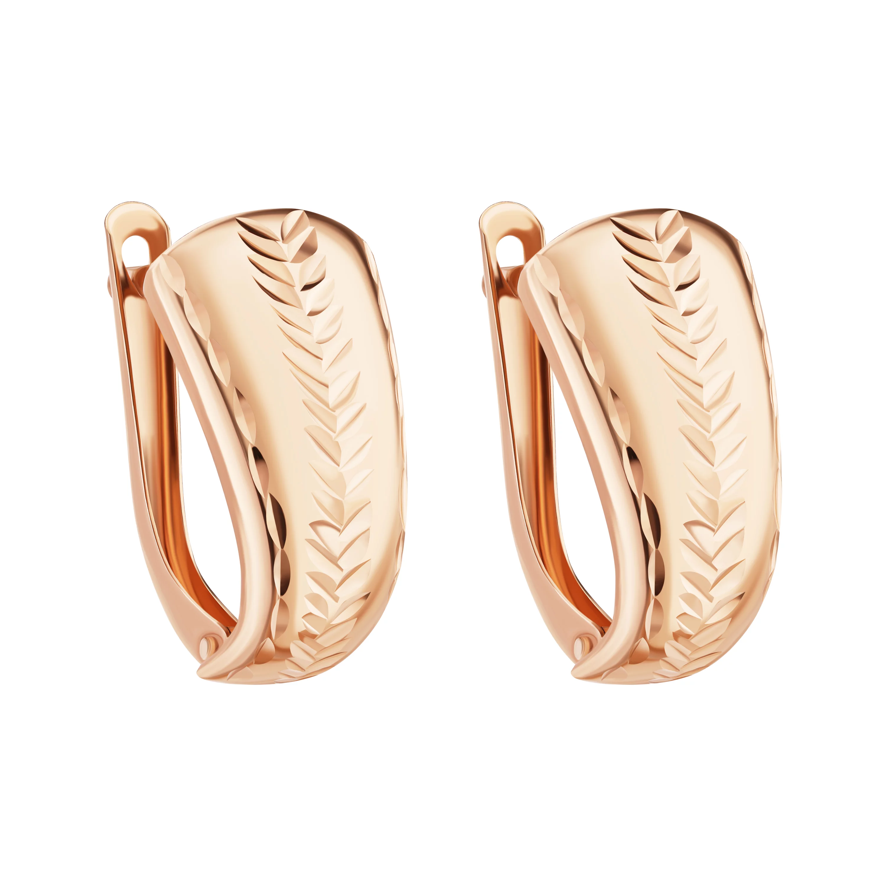 Елегантні сережки-конго з червоного золота з алмазною гранню - 1877738