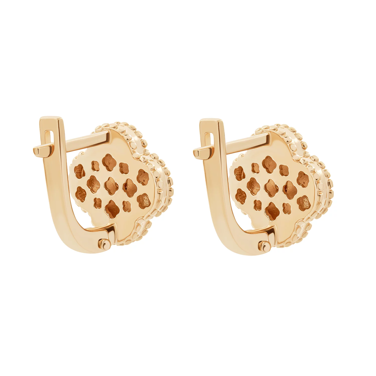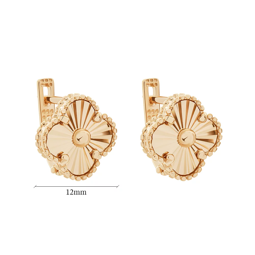 Сережки-пусети "Конюшина" з червоного золота з алмазною гранню - 1748319