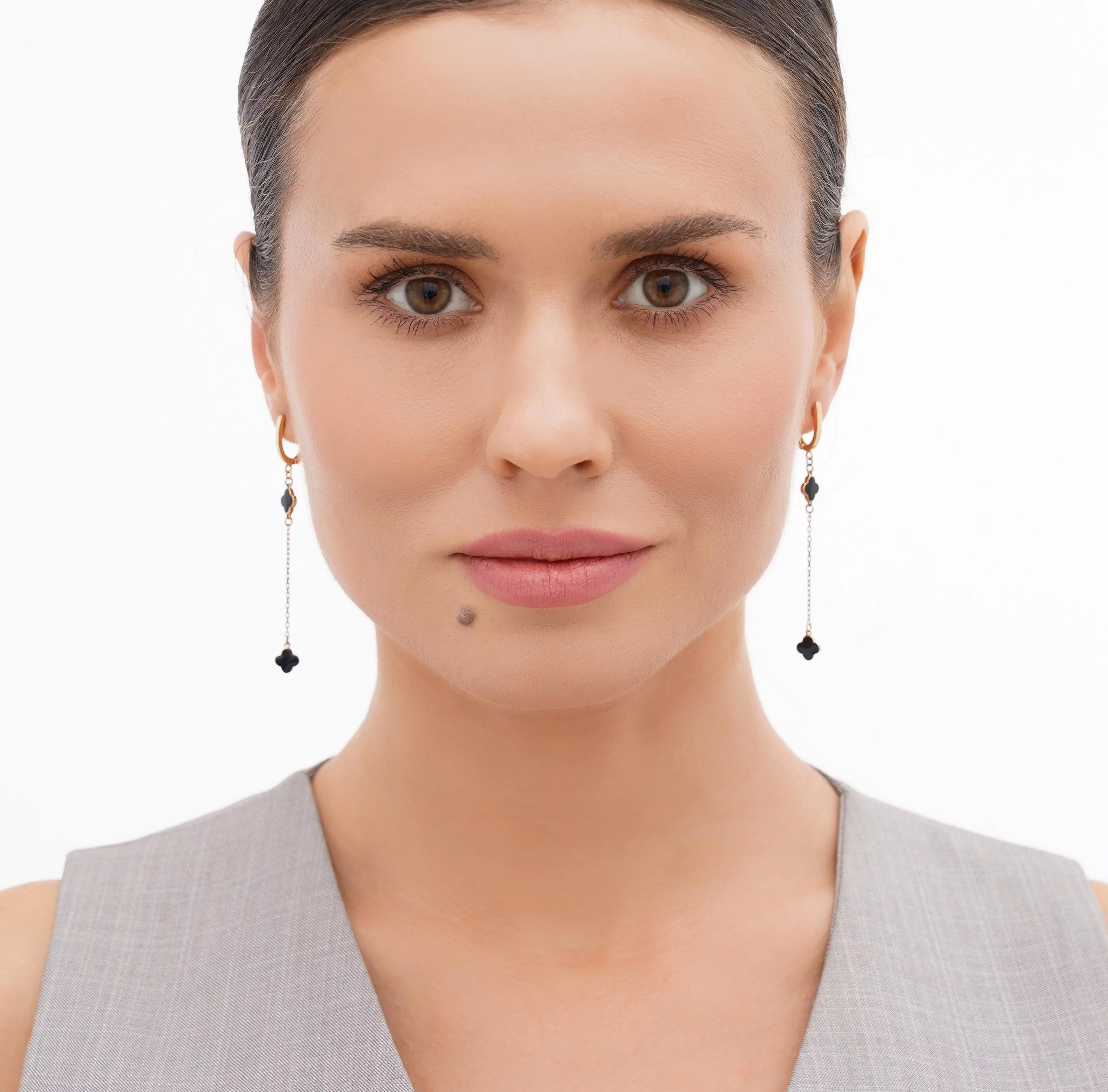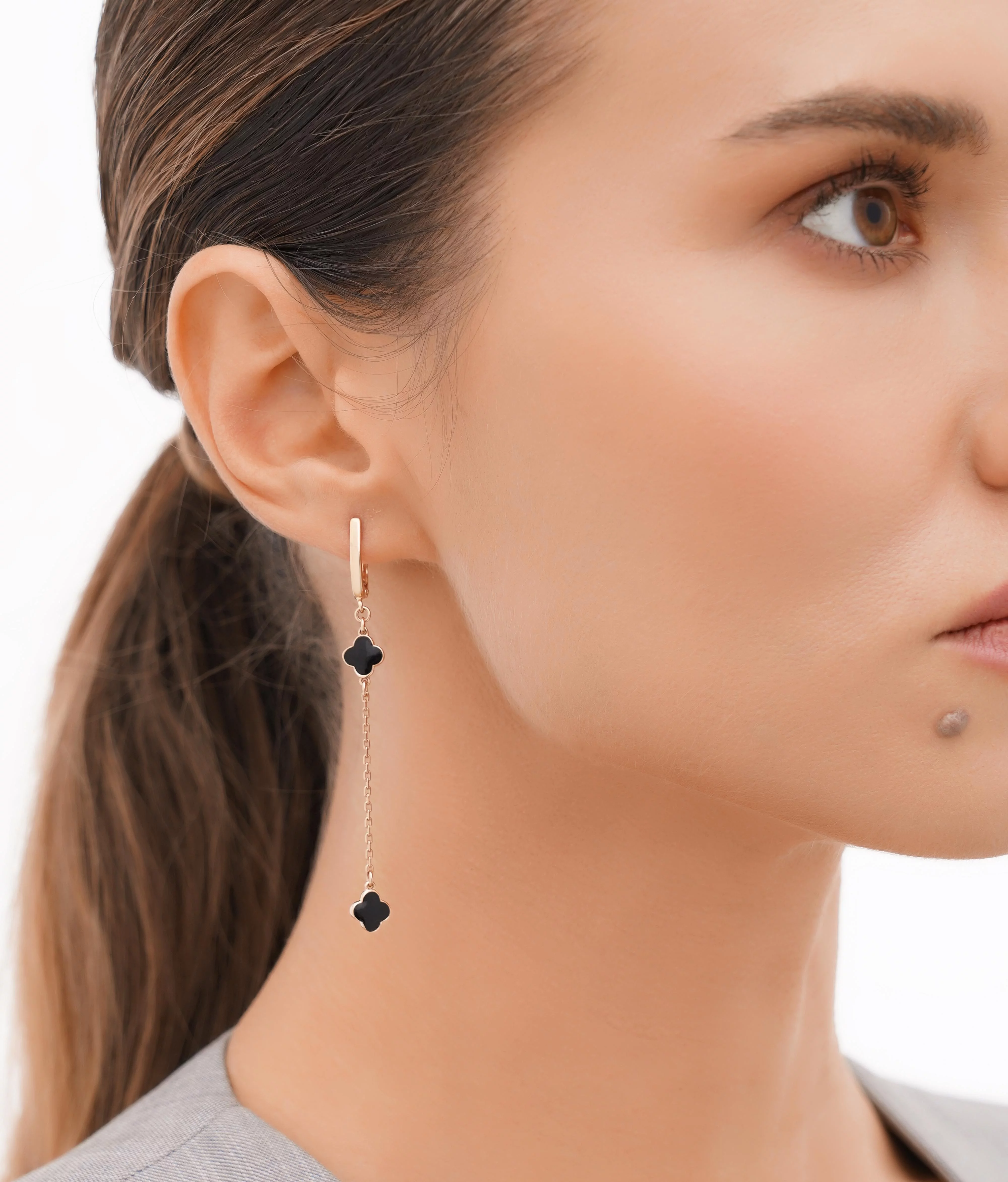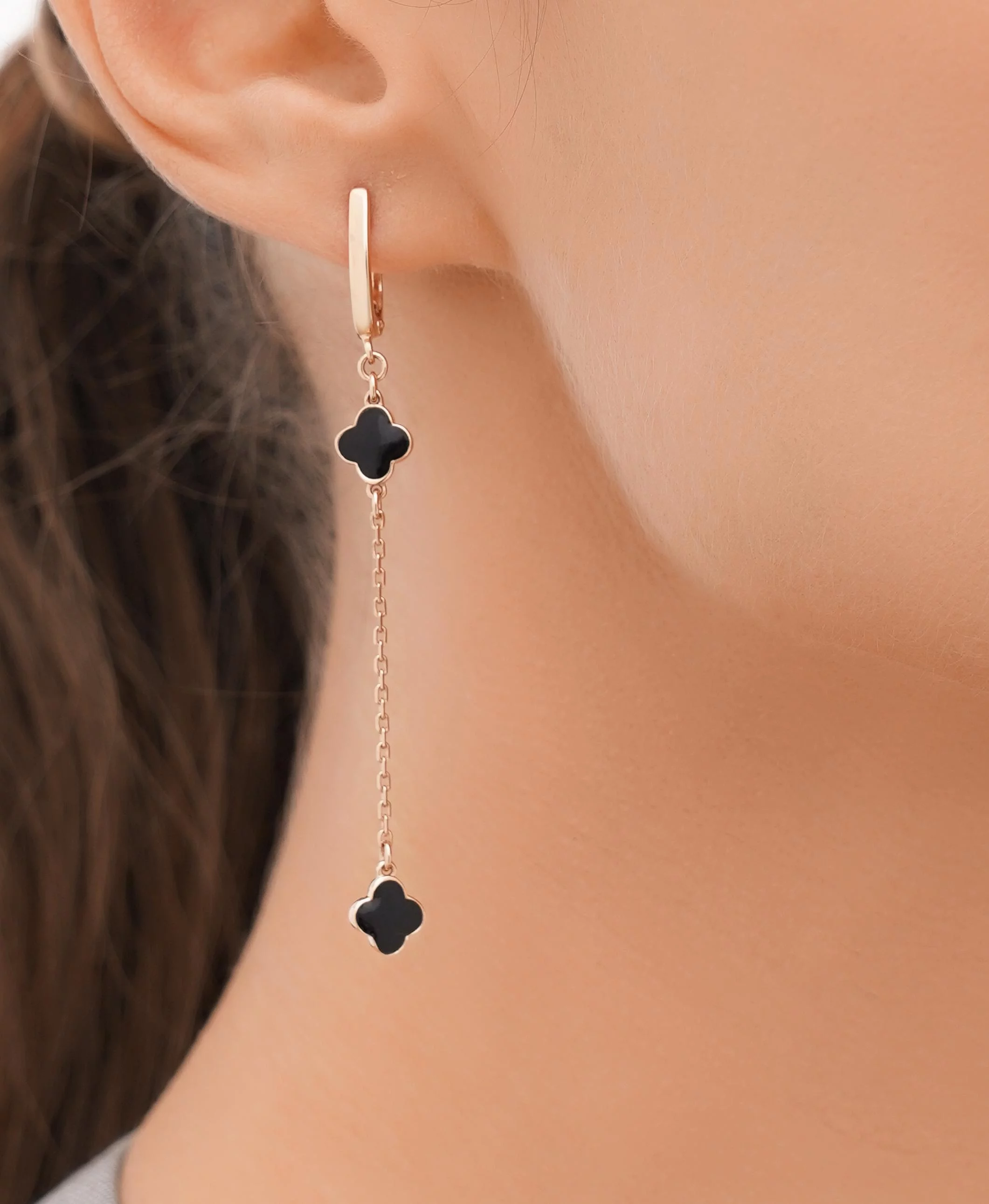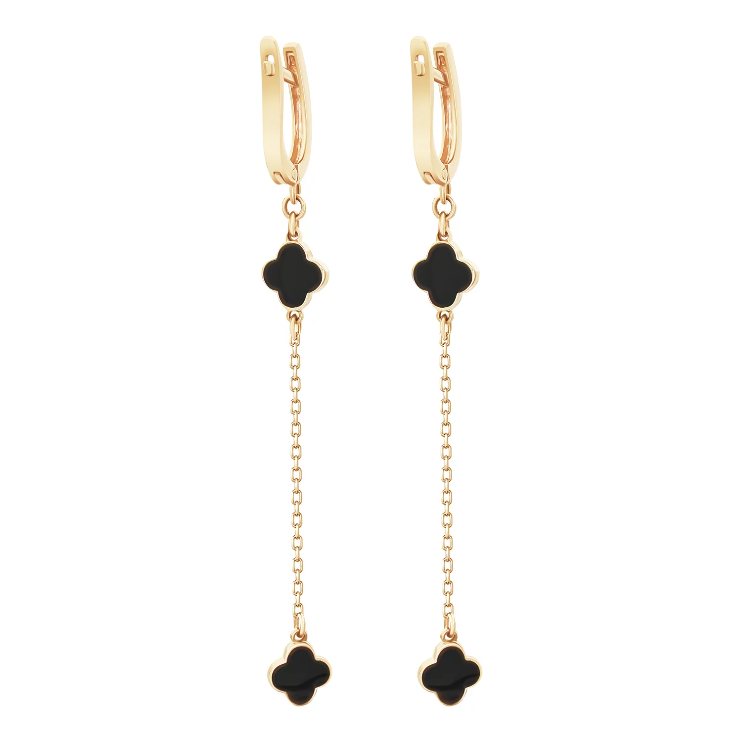 Сережки "Конюшина" з червоного золота з емаллю - 1613445
