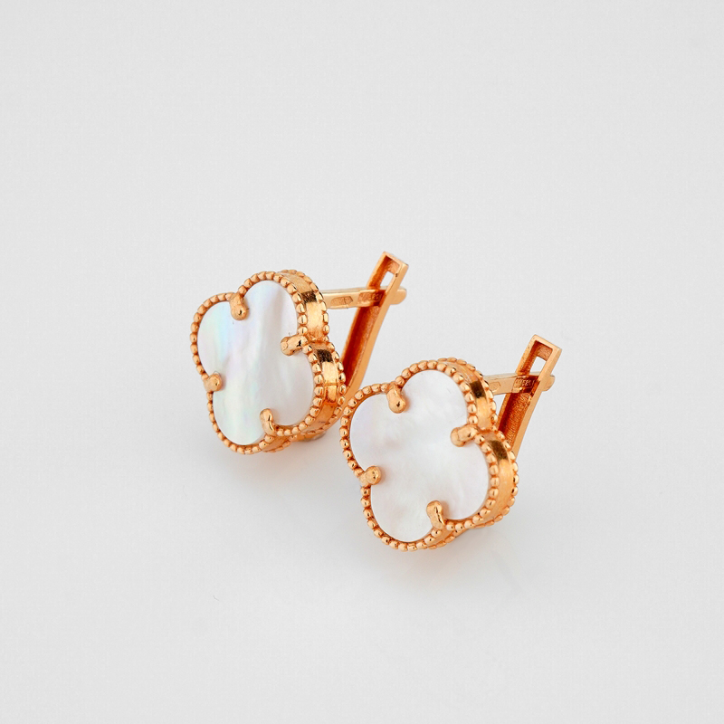 Сережки з жовтого золота з підвісами "Конюшина" з перламутром - 1866488