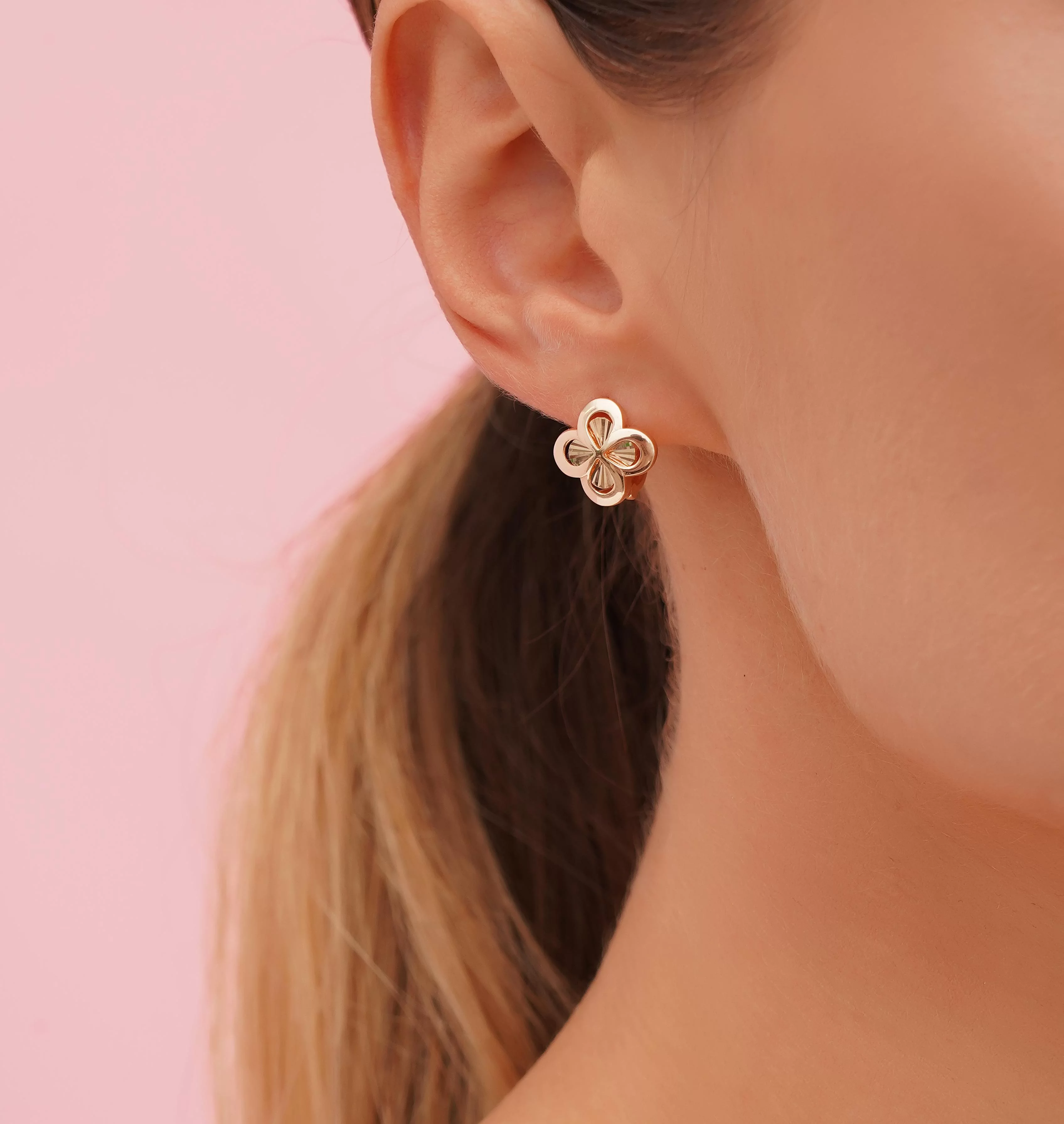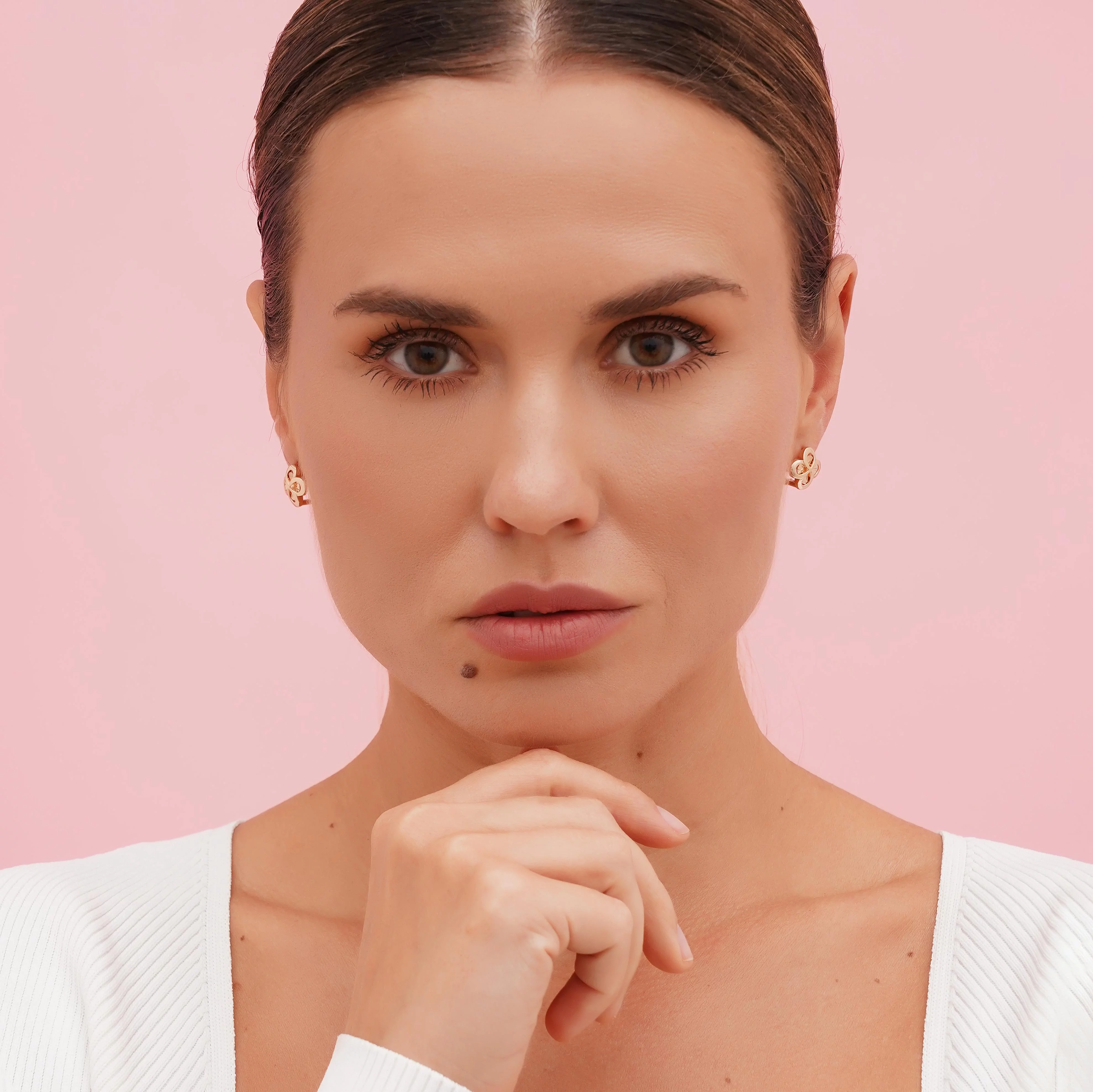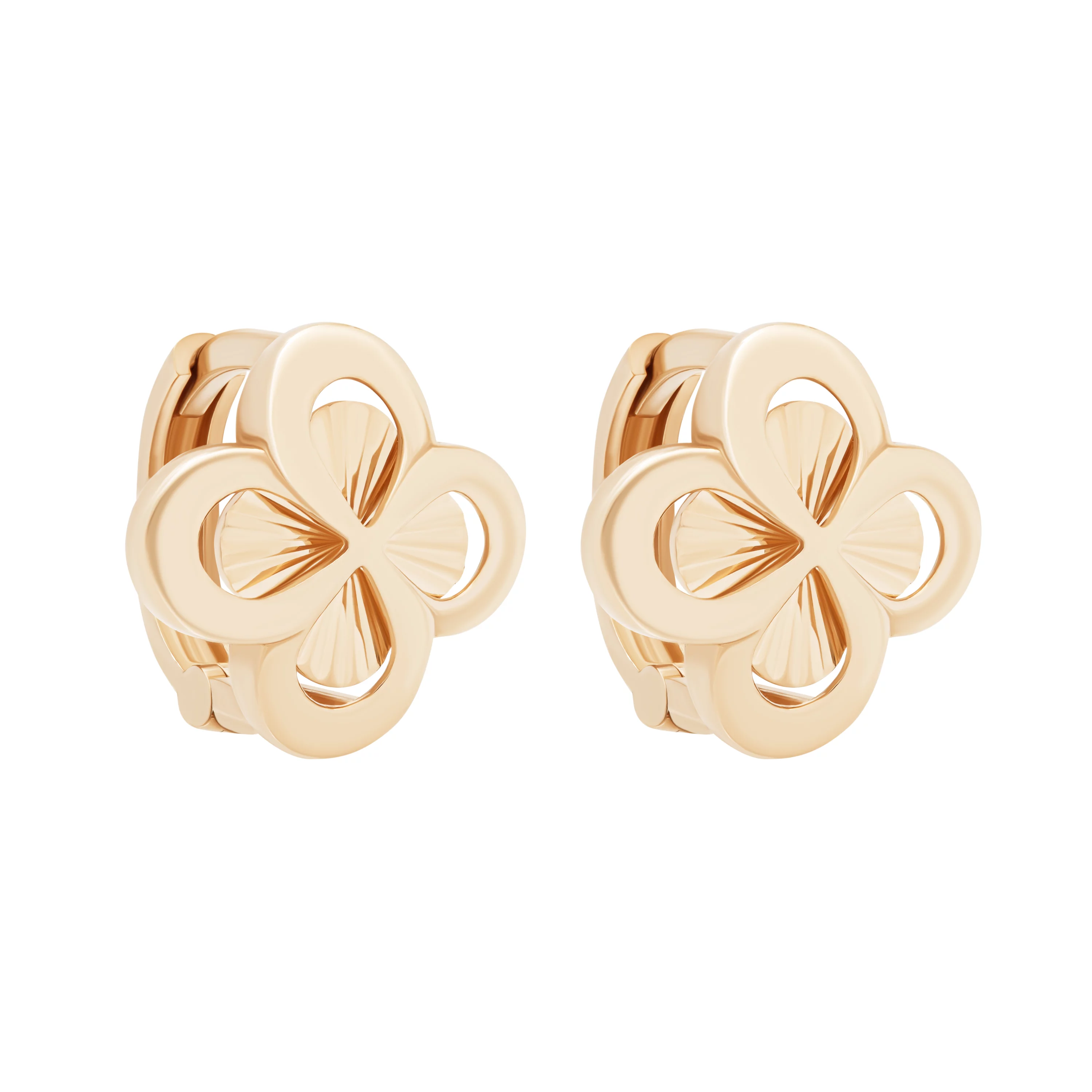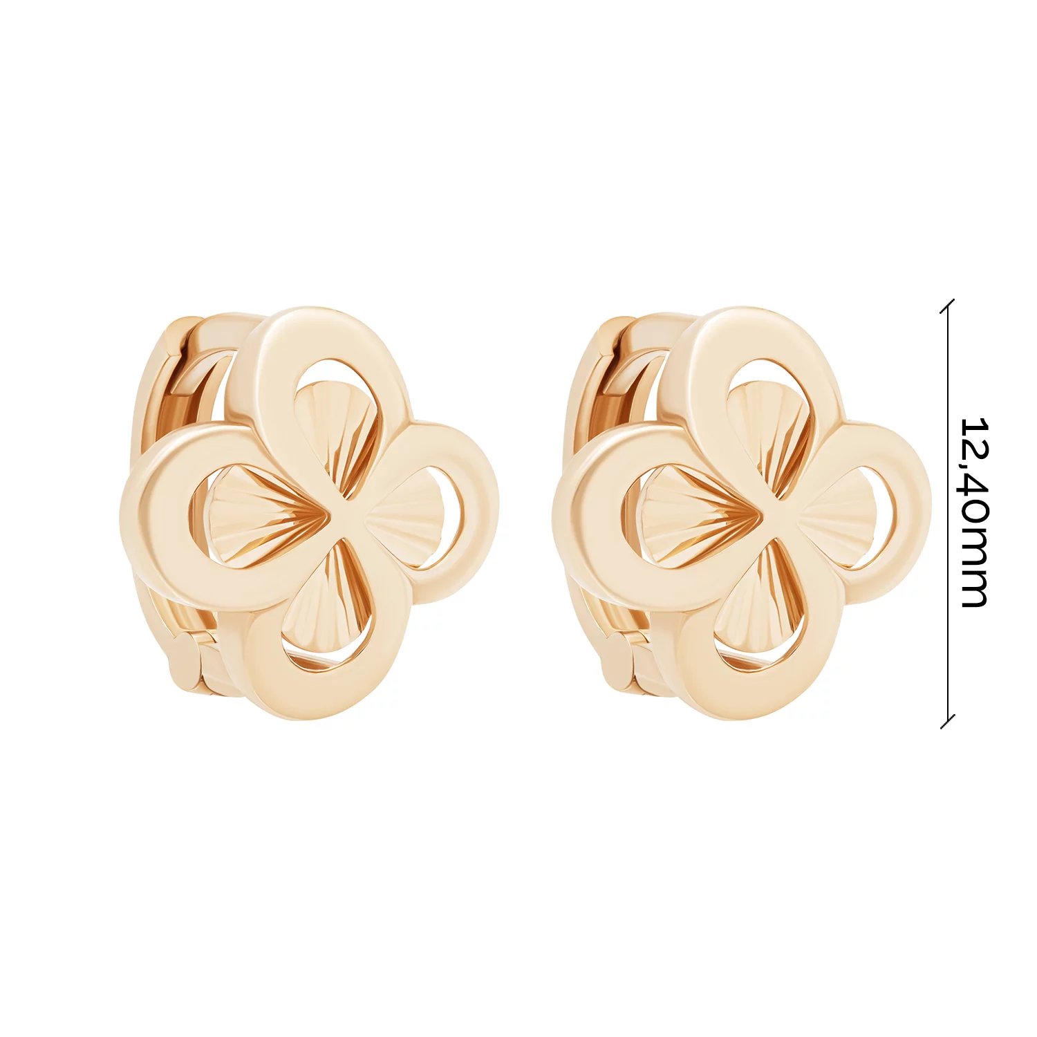 Стильні сережки "Конюшина" з алмазною гранню в червоному золоті - 1858784
