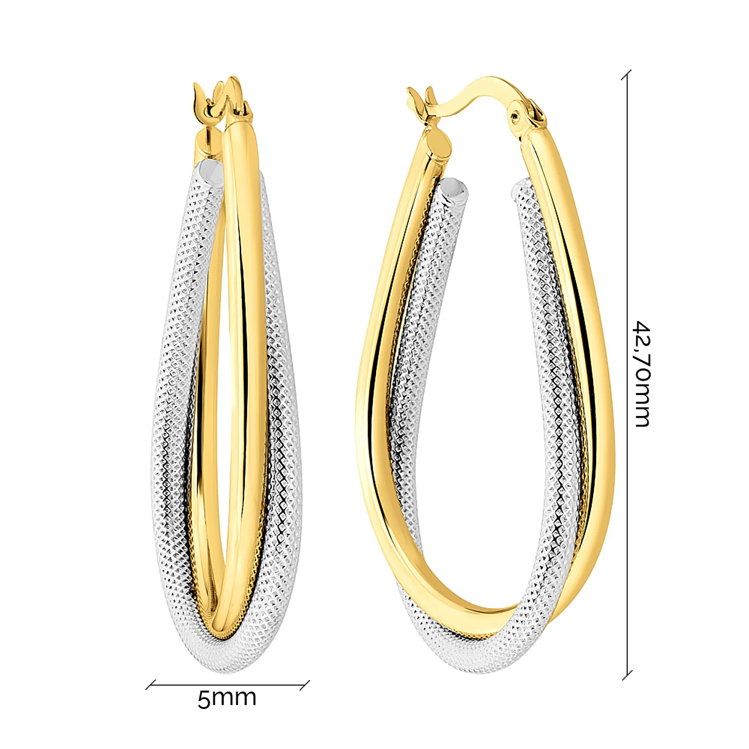 Сережки-кільця з комбінованого золота з алмазною гранню "Трініті" - 1350426