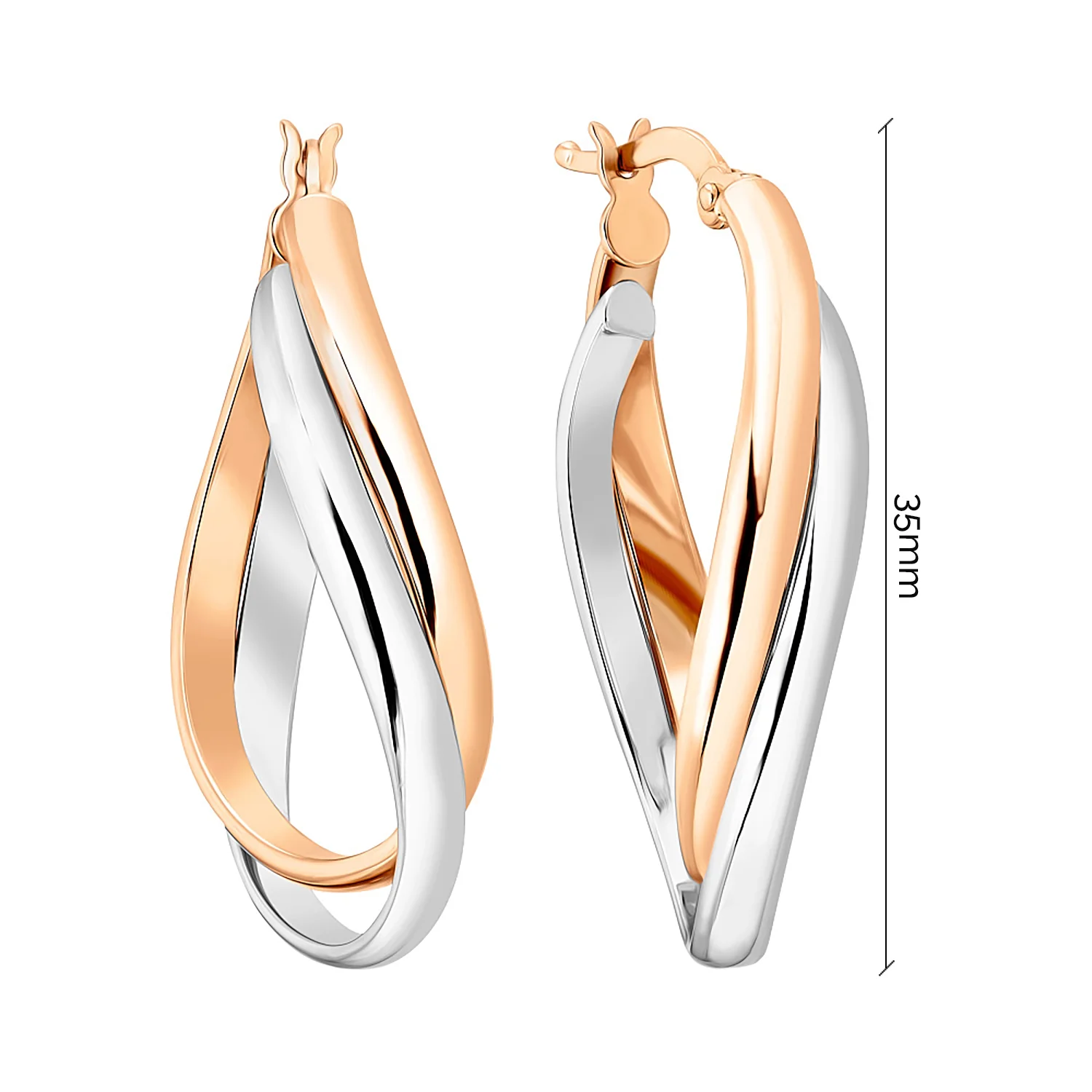Сережки-кільця з комбінованого золота з алмазною гранню "Трініті" - 1350426