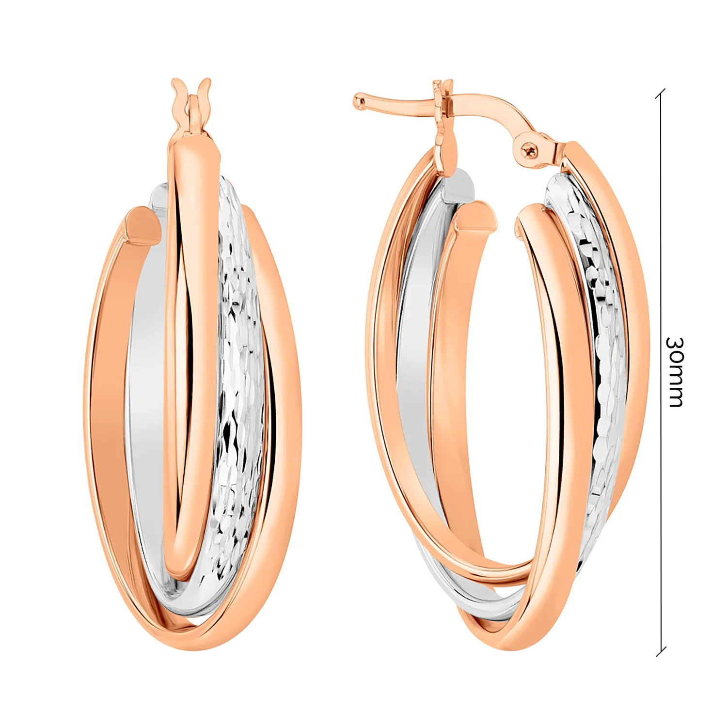 Стильні сережки-кільця в комбінованому золоті з алмазною гранню - 1877791