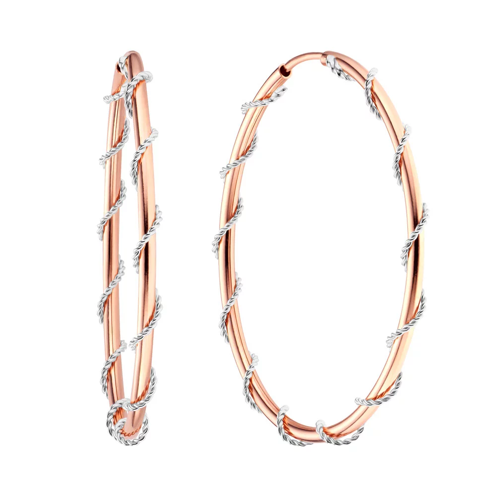 Стильні сережки-кільця в комбінованому золоті з алмазною гранню - 1877791