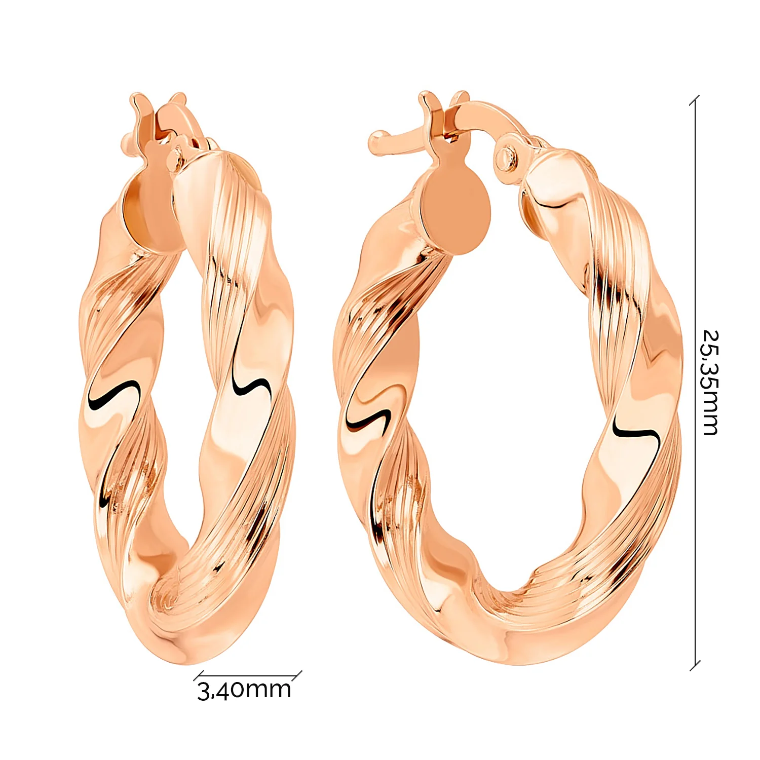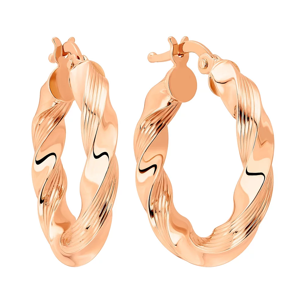Стильні сережки-кільця в комбінованому золоті з алмазною гранню - 1877791